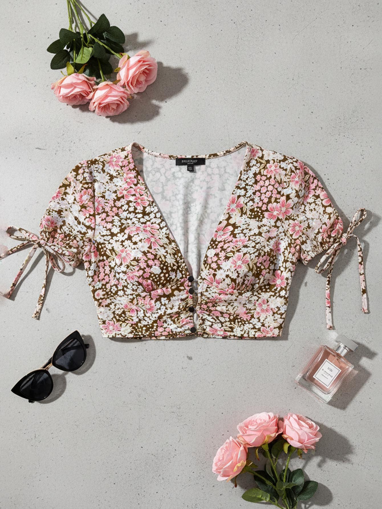 Plunging Neck Floral Print Crop Top