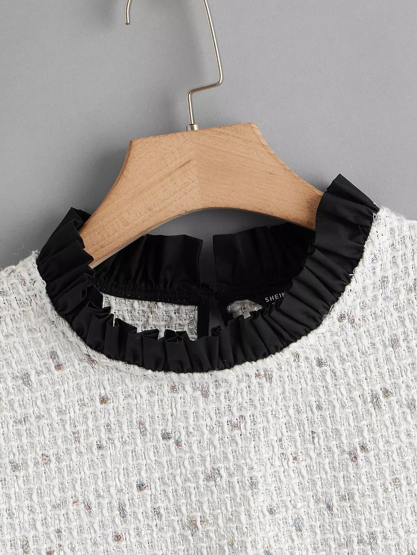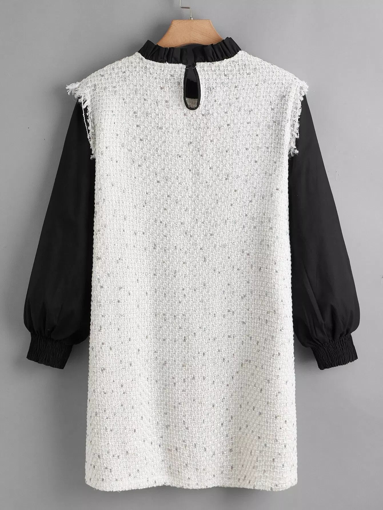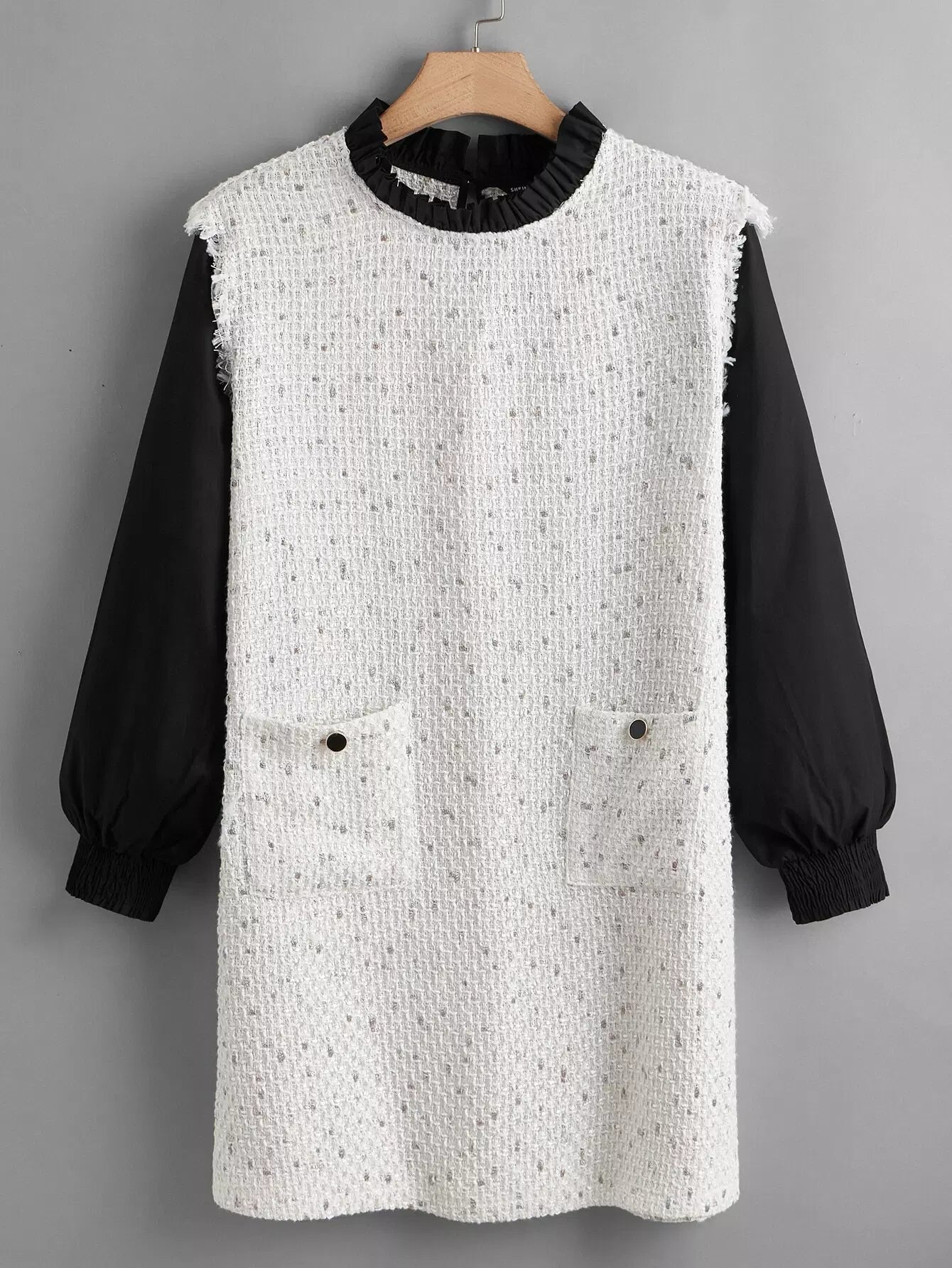 Plus 2 In 1 Colorblock Frill Neck Dual Pockets Tweed Dress