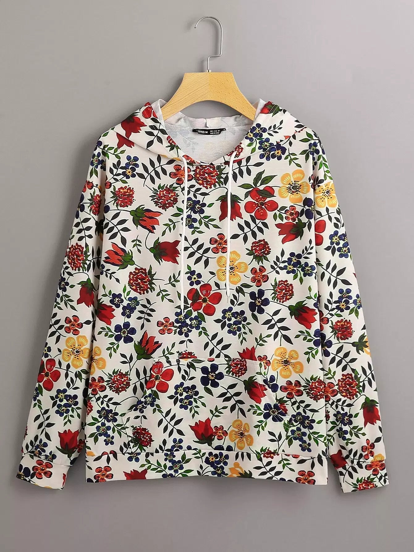 Plus Allover Floral Kangaroo Pocket Hoodie