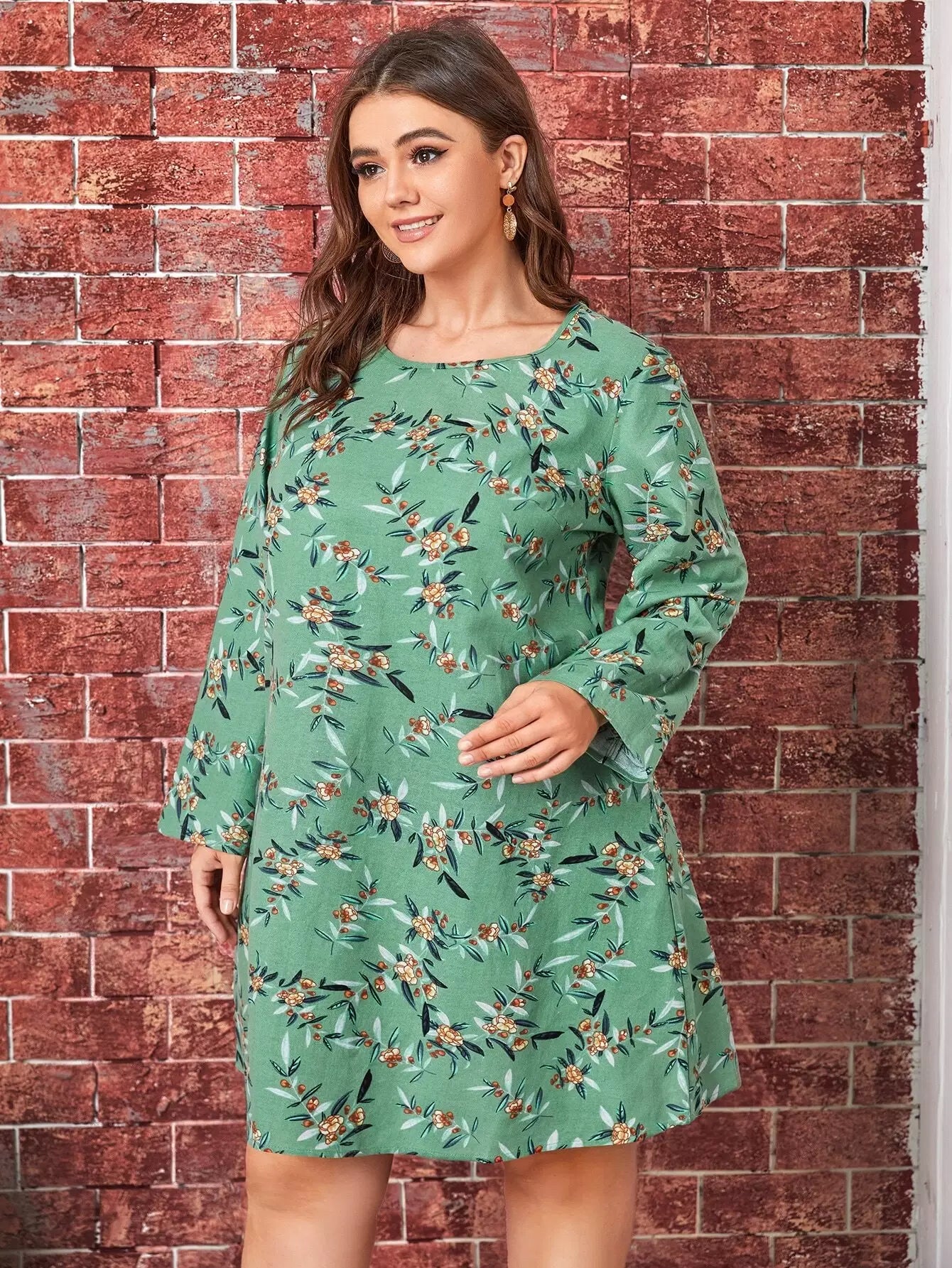 Plus Allover Floral Print Tunic Dress