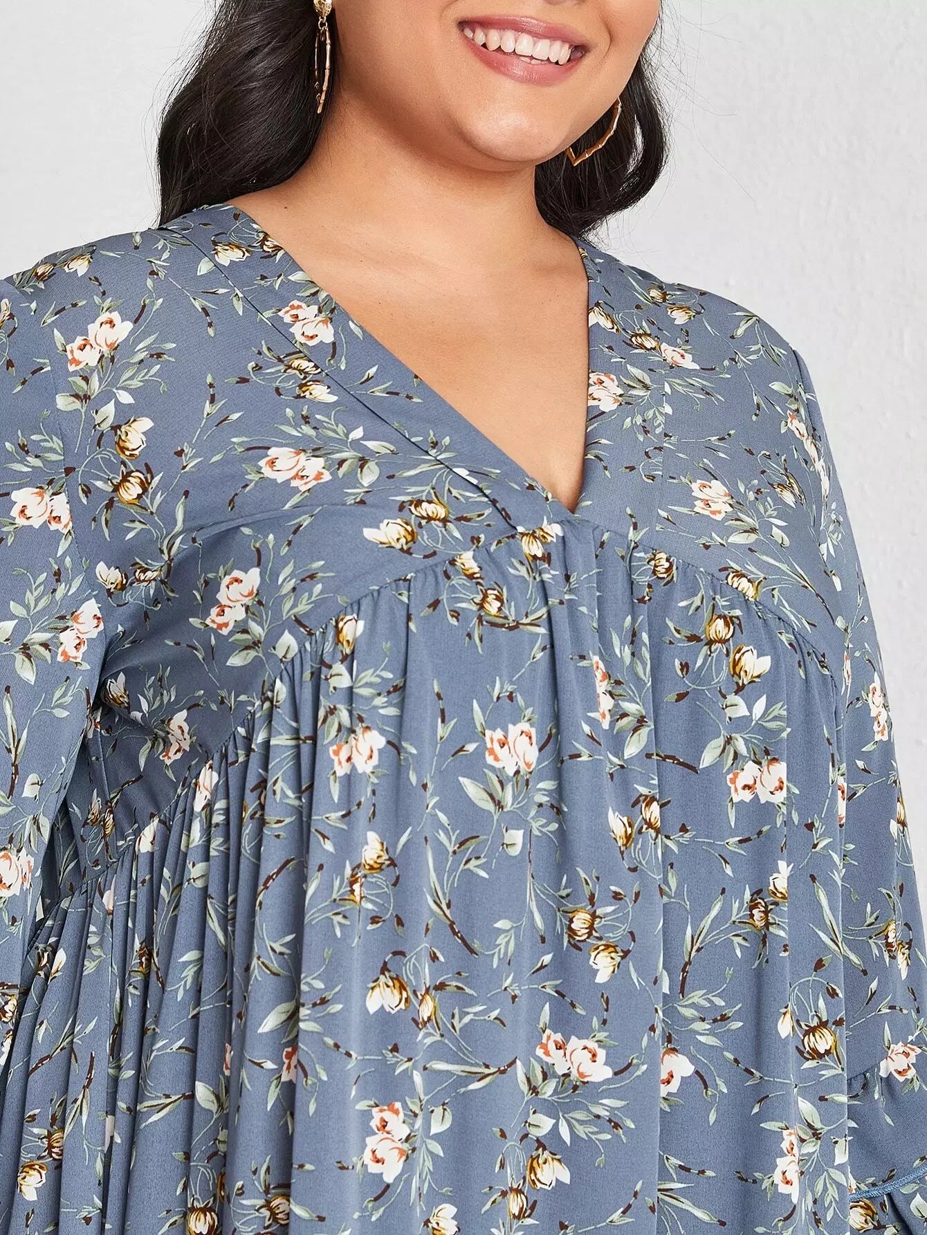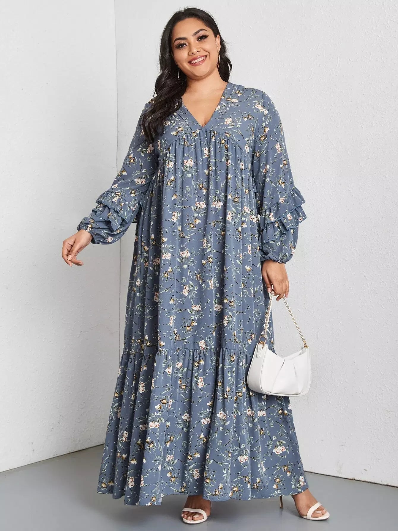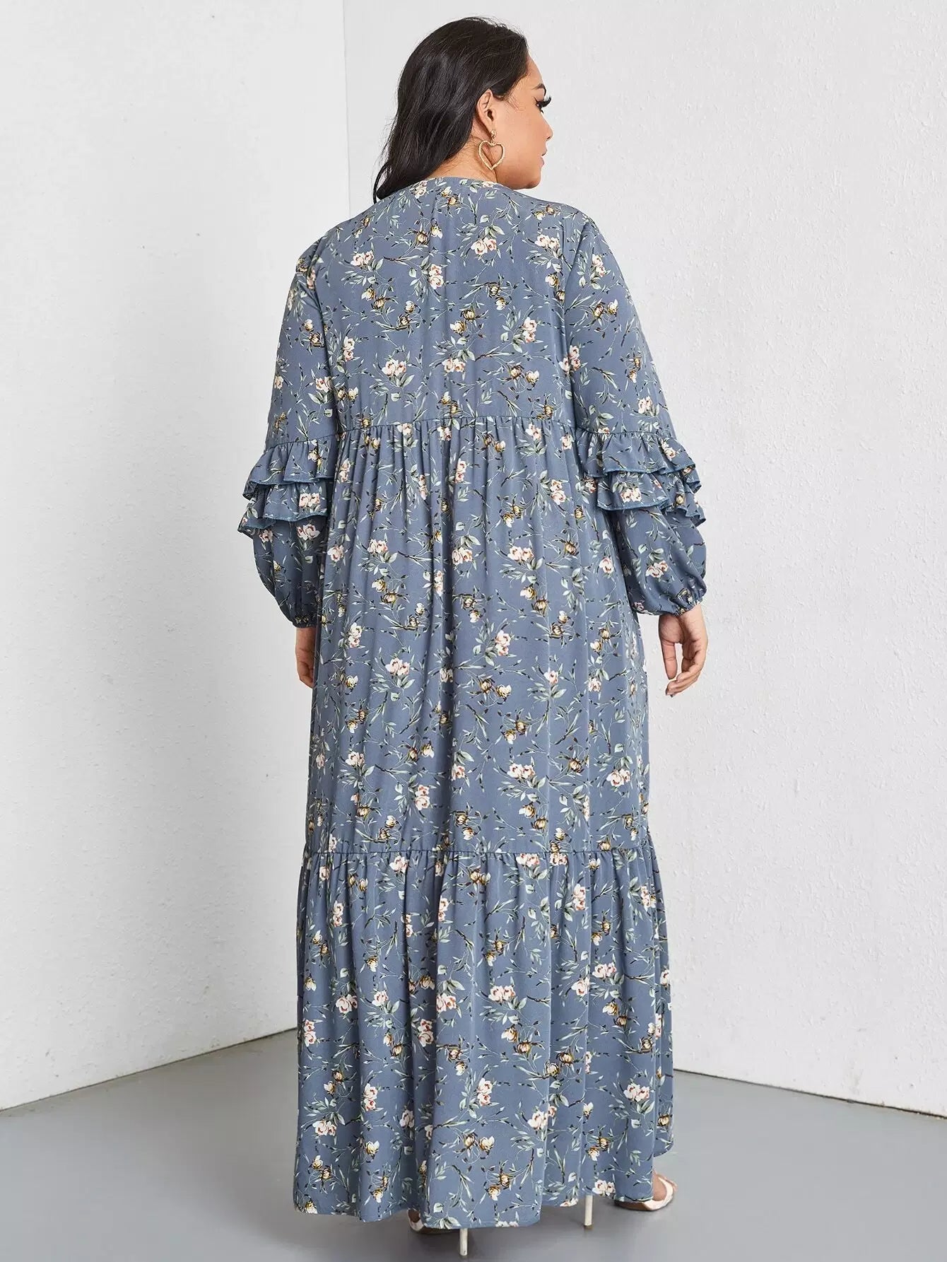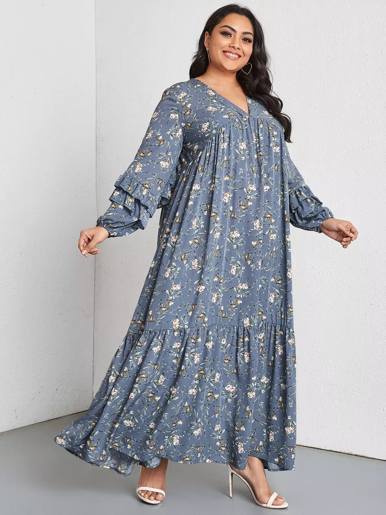 Plus Allover Floral Ruffle Trim Dress