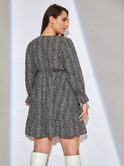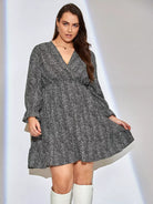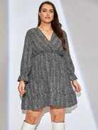 Plus Allover Print Flounce Sleeve Dress