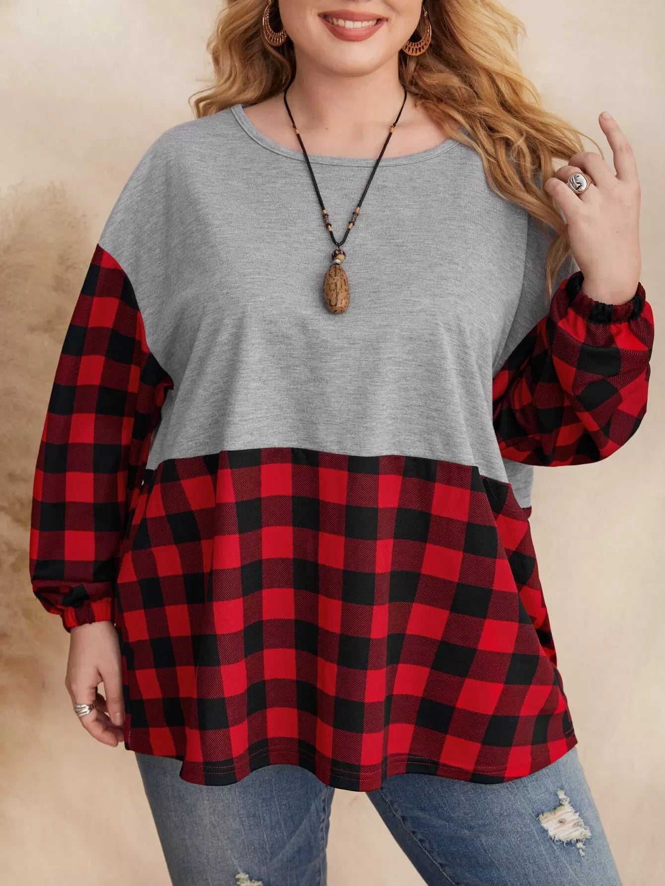 Plus Buffalo Plaid Lantern Sleeve Tee