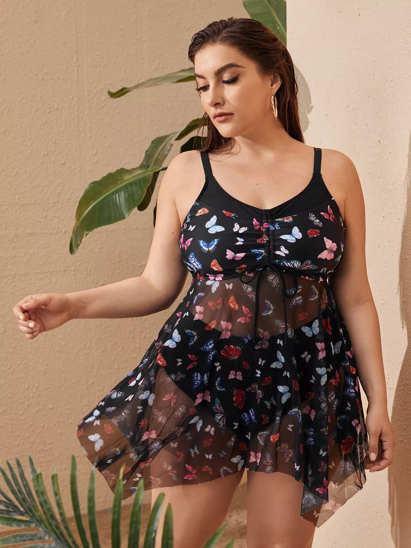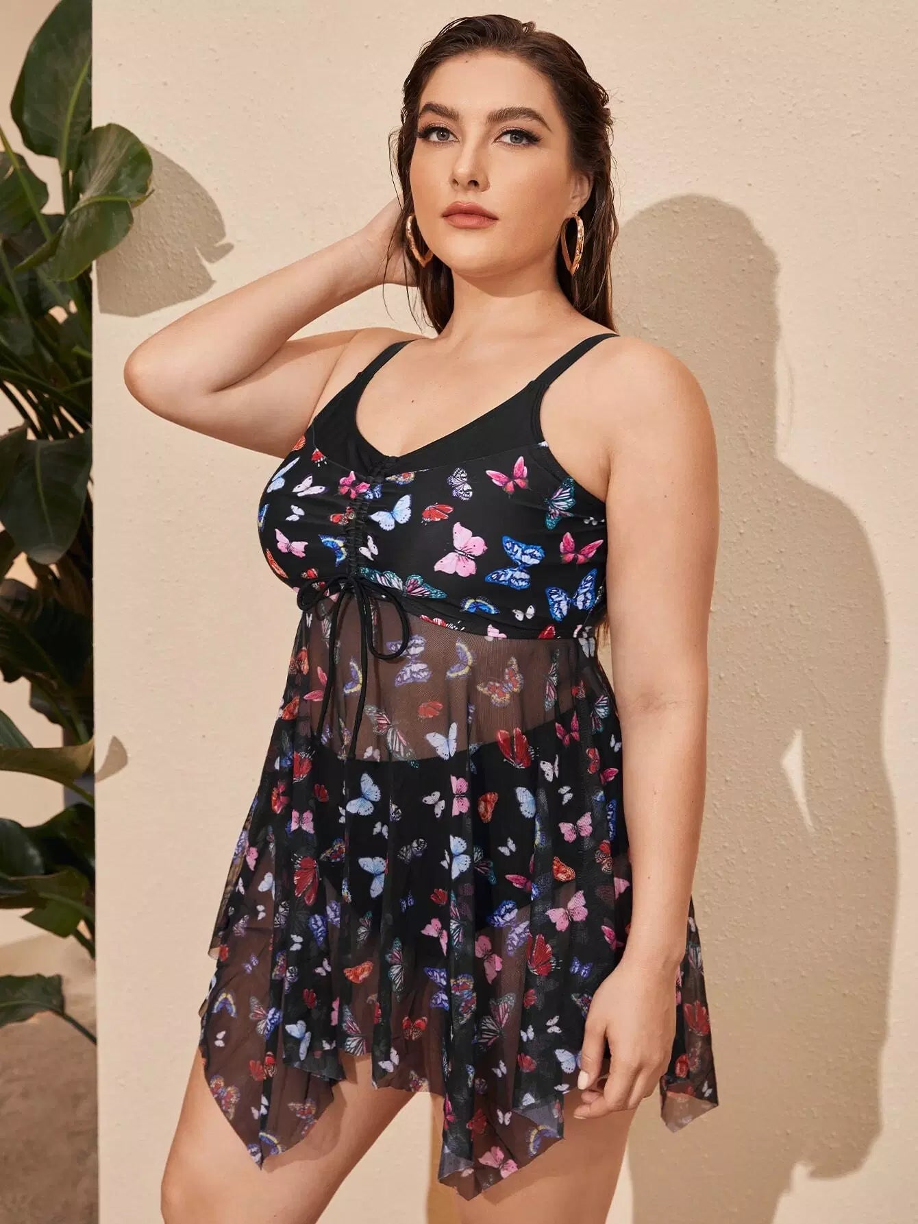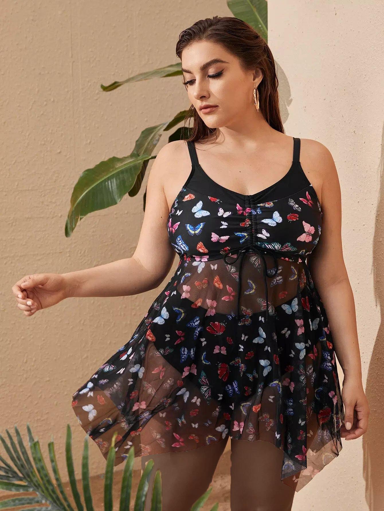 Plus Butterfly Print Asymmetrical Hem Bikini Swimsuit