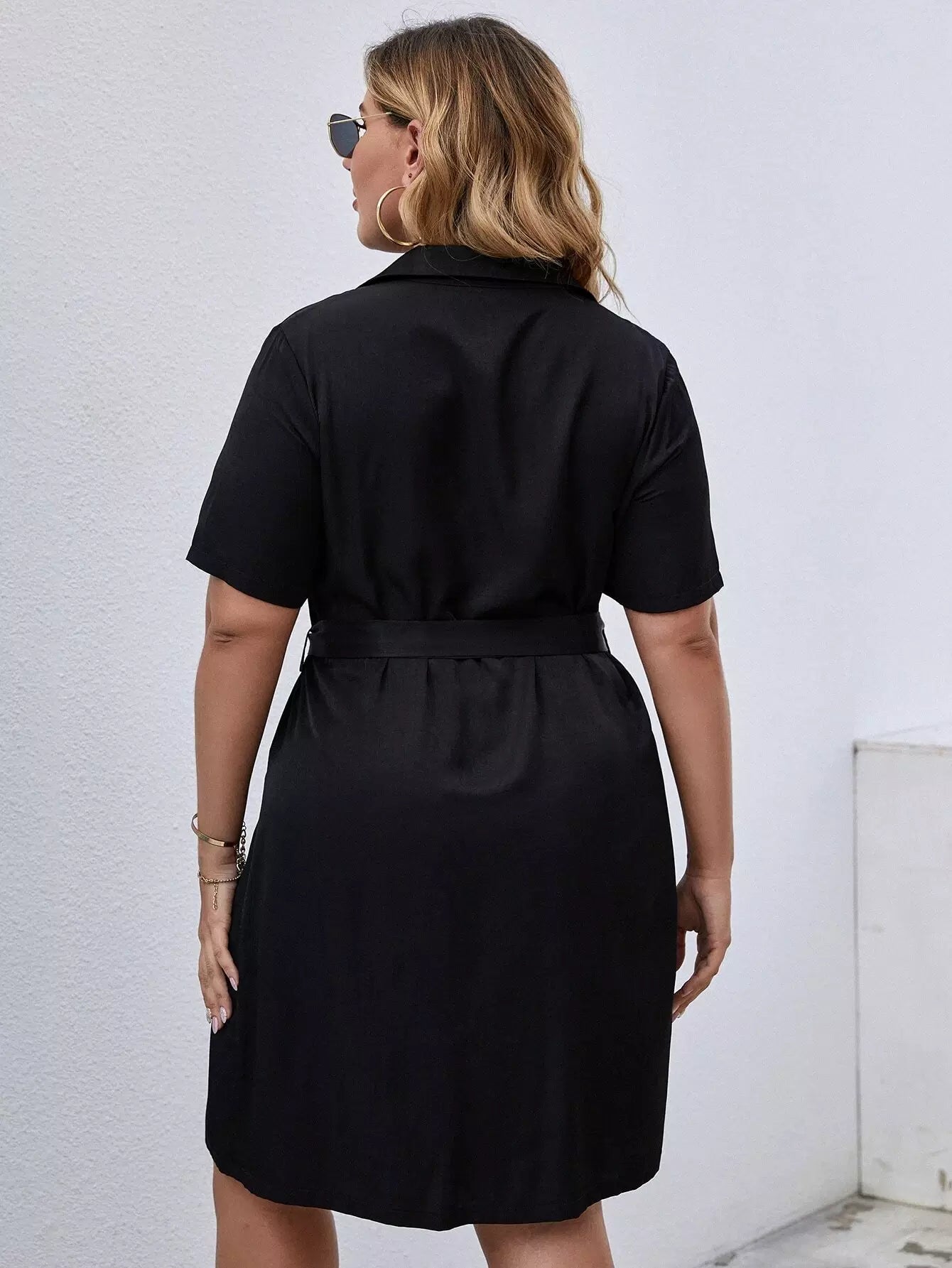 Women - Plus Button Front Belted Shirt Dress