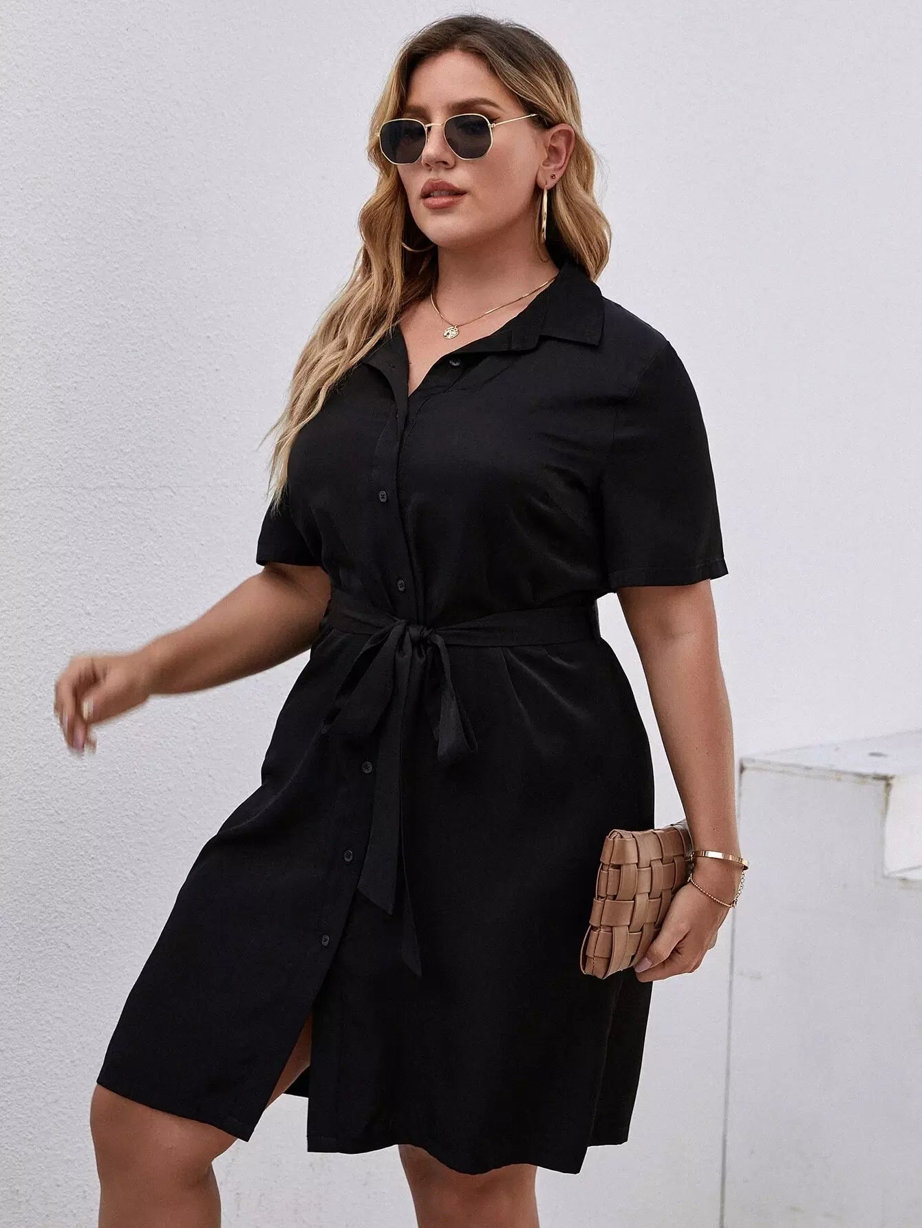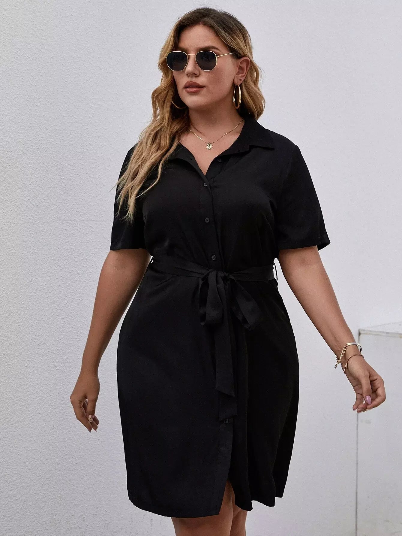 Plus Button Front Shirt Dress Without Belt