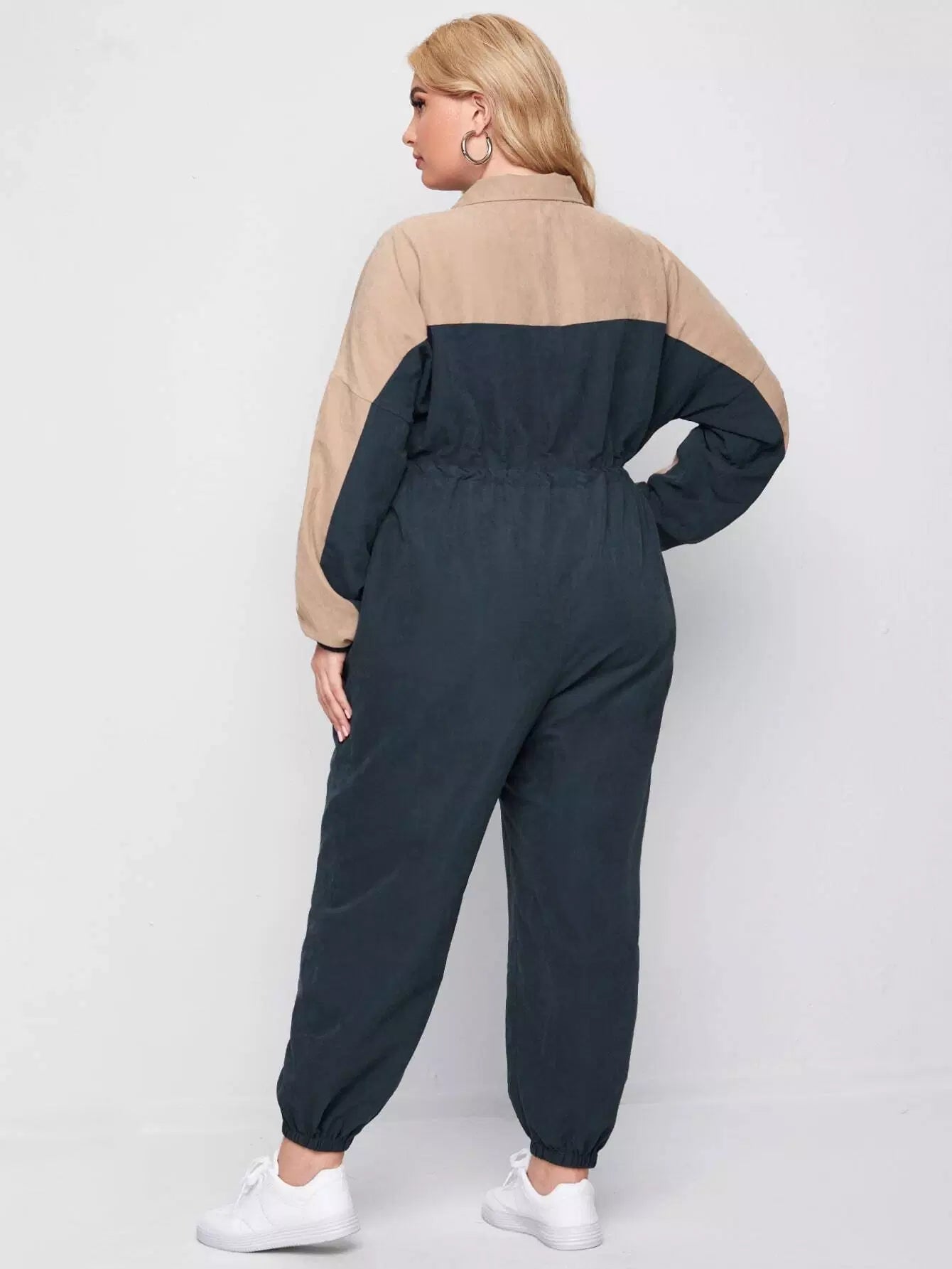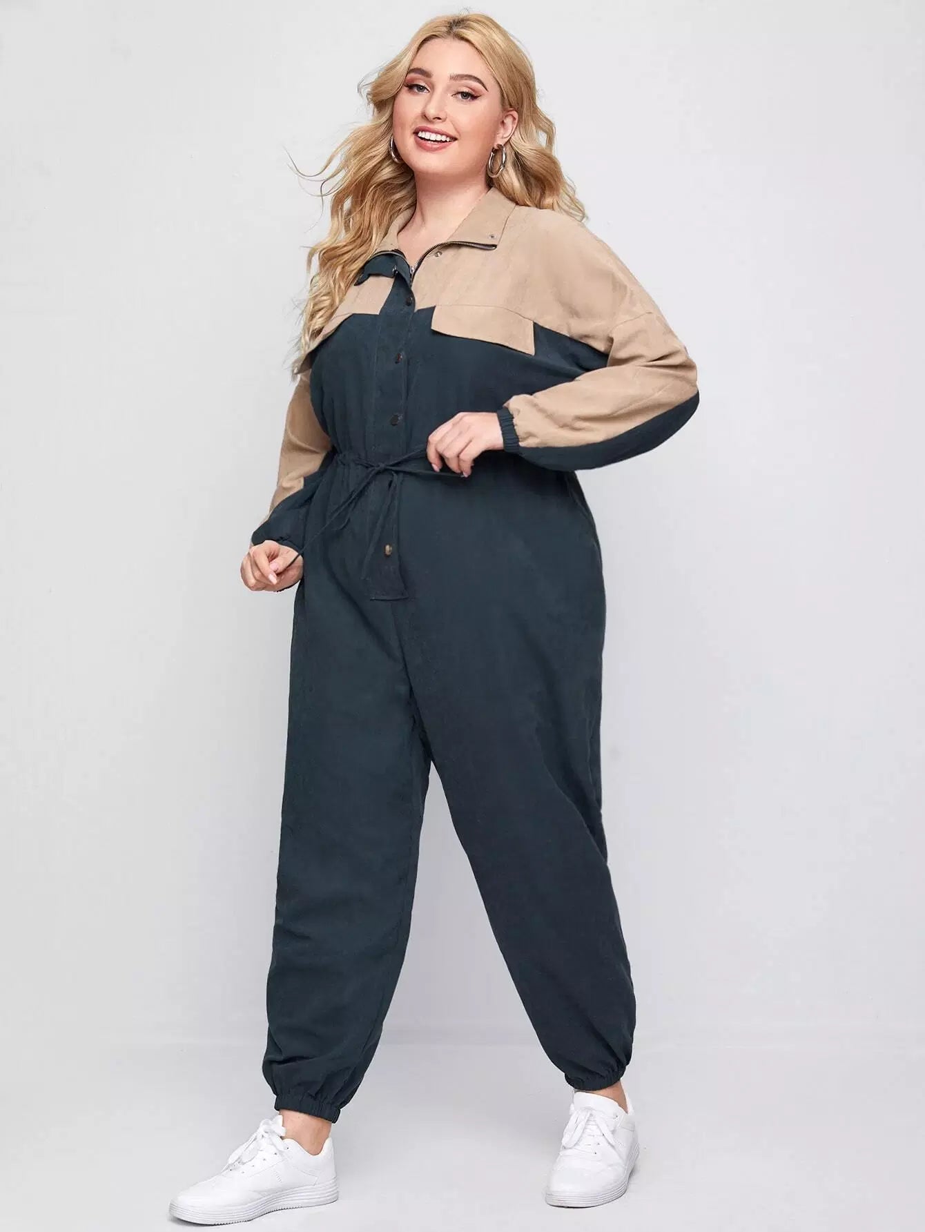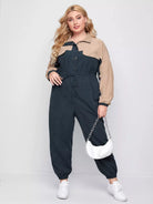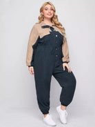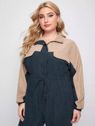 Women - Plus Button Front Drawstring Waist Colorblock Jumpsuit
