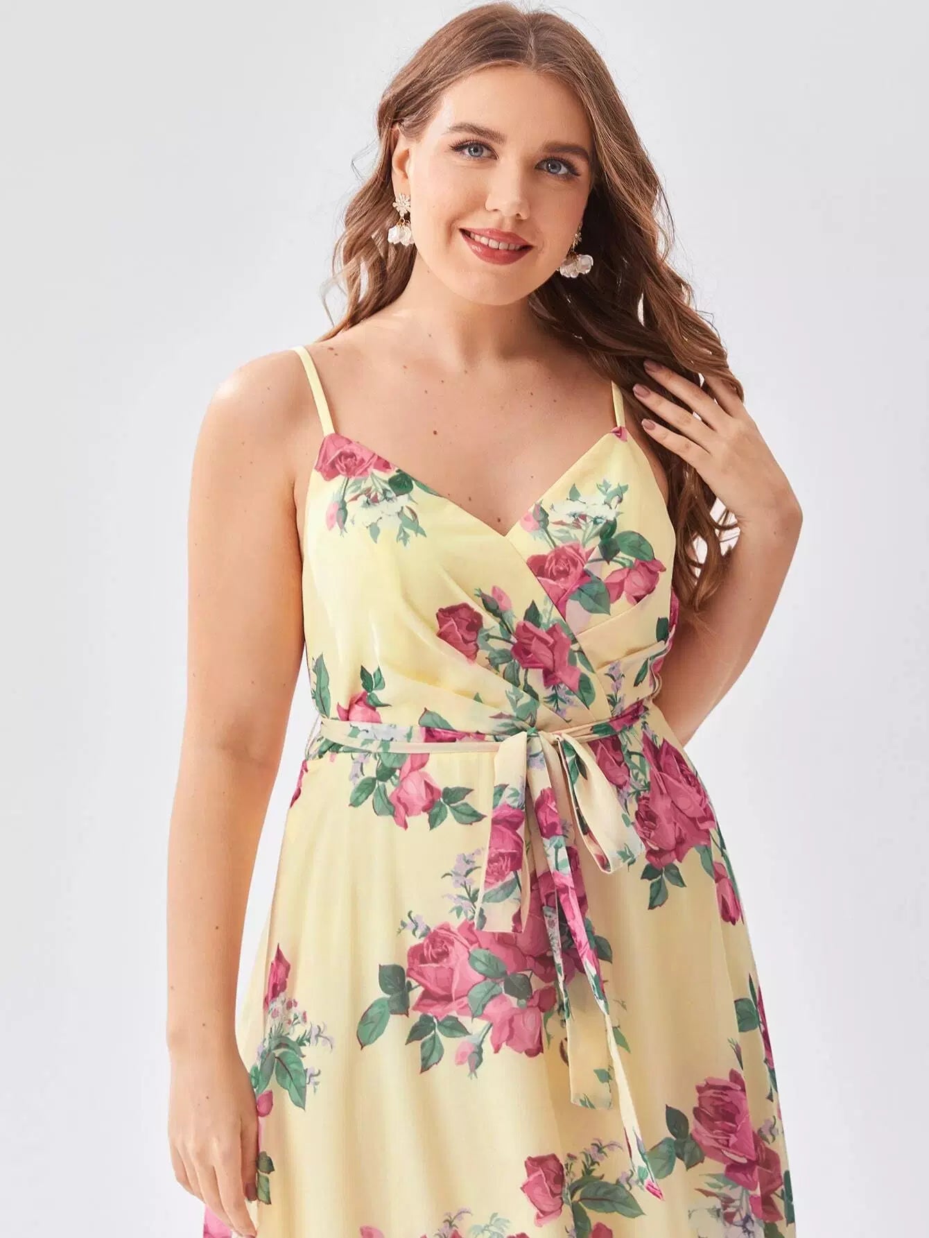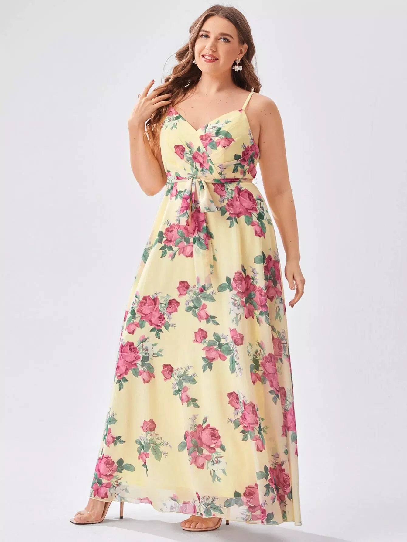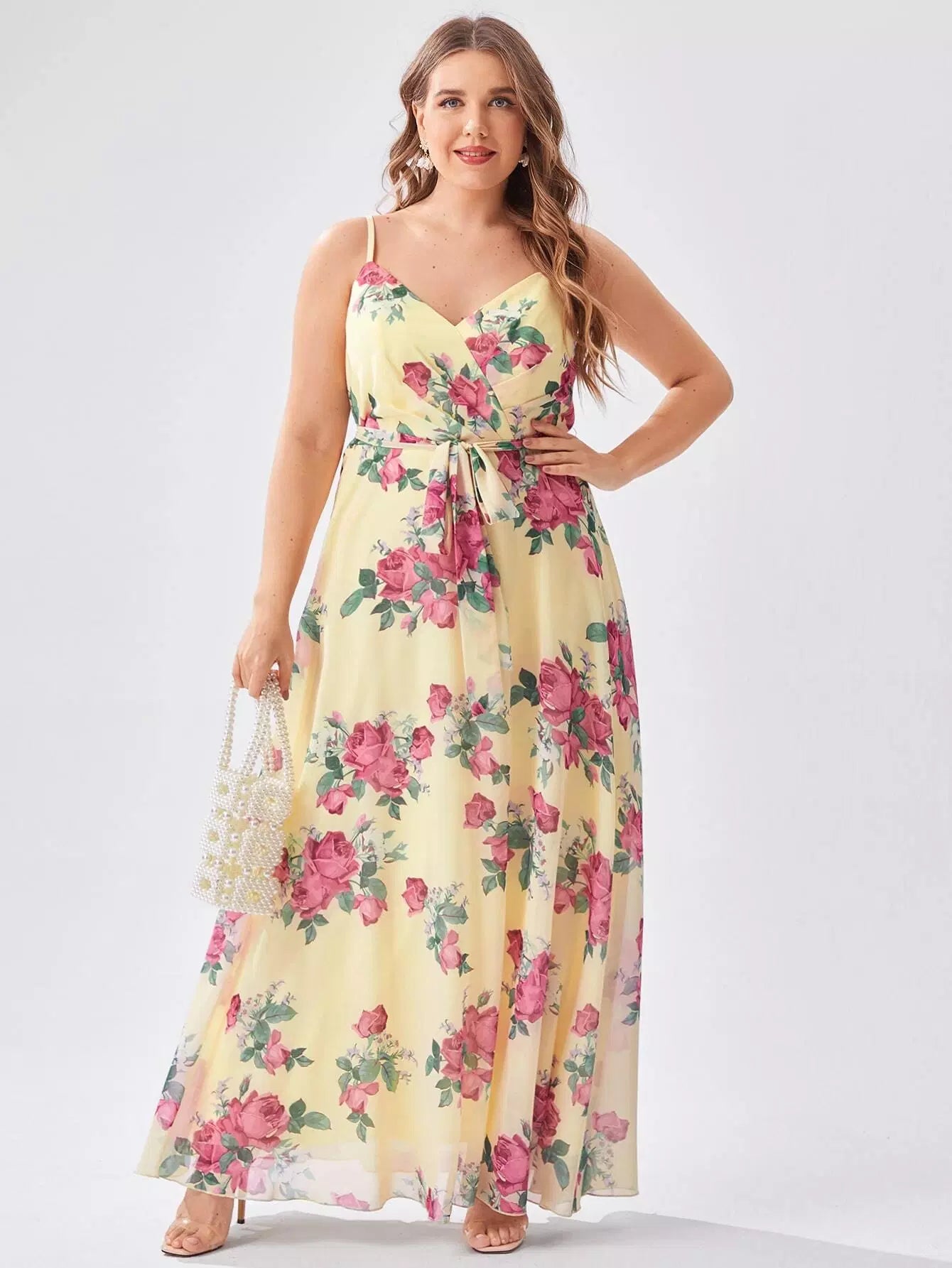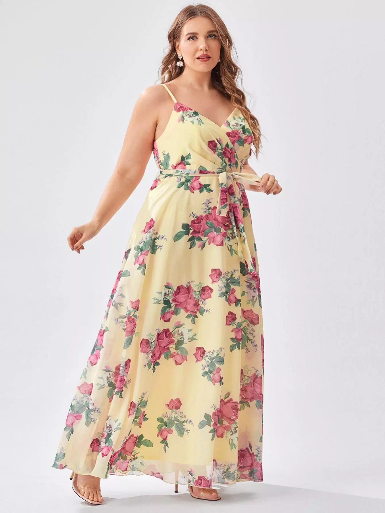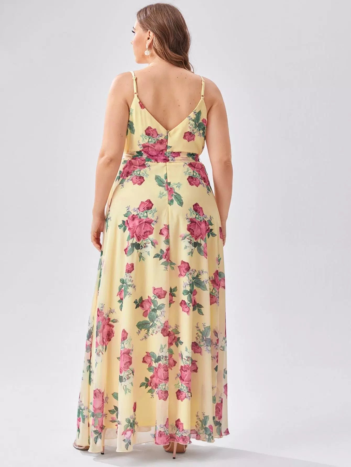 Plus Chiffon Floral Surplice Front Maxi Cami Dress Without Belt