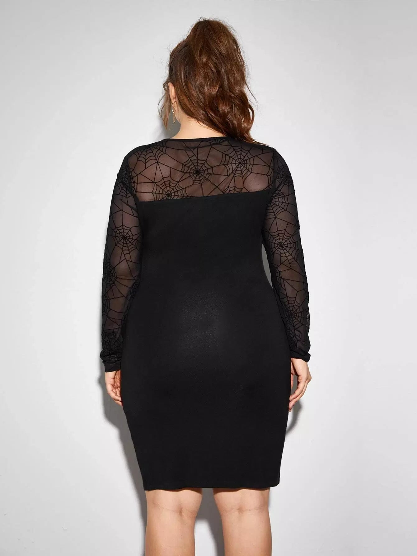 Plus Cobweb Flocked Mesh Yoke Bodycon Dress