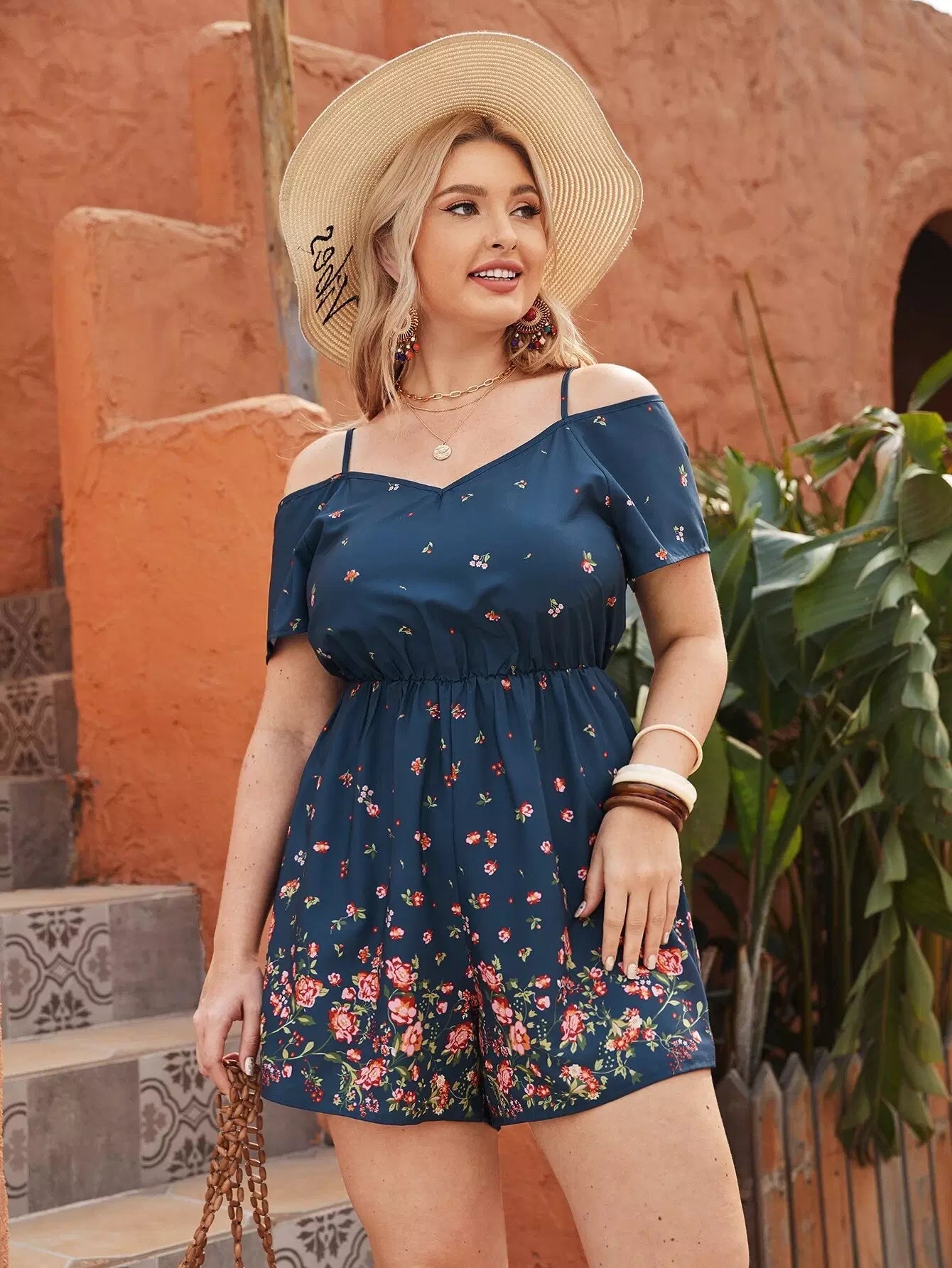 Plus Cold Shoulder Floral Print Romper