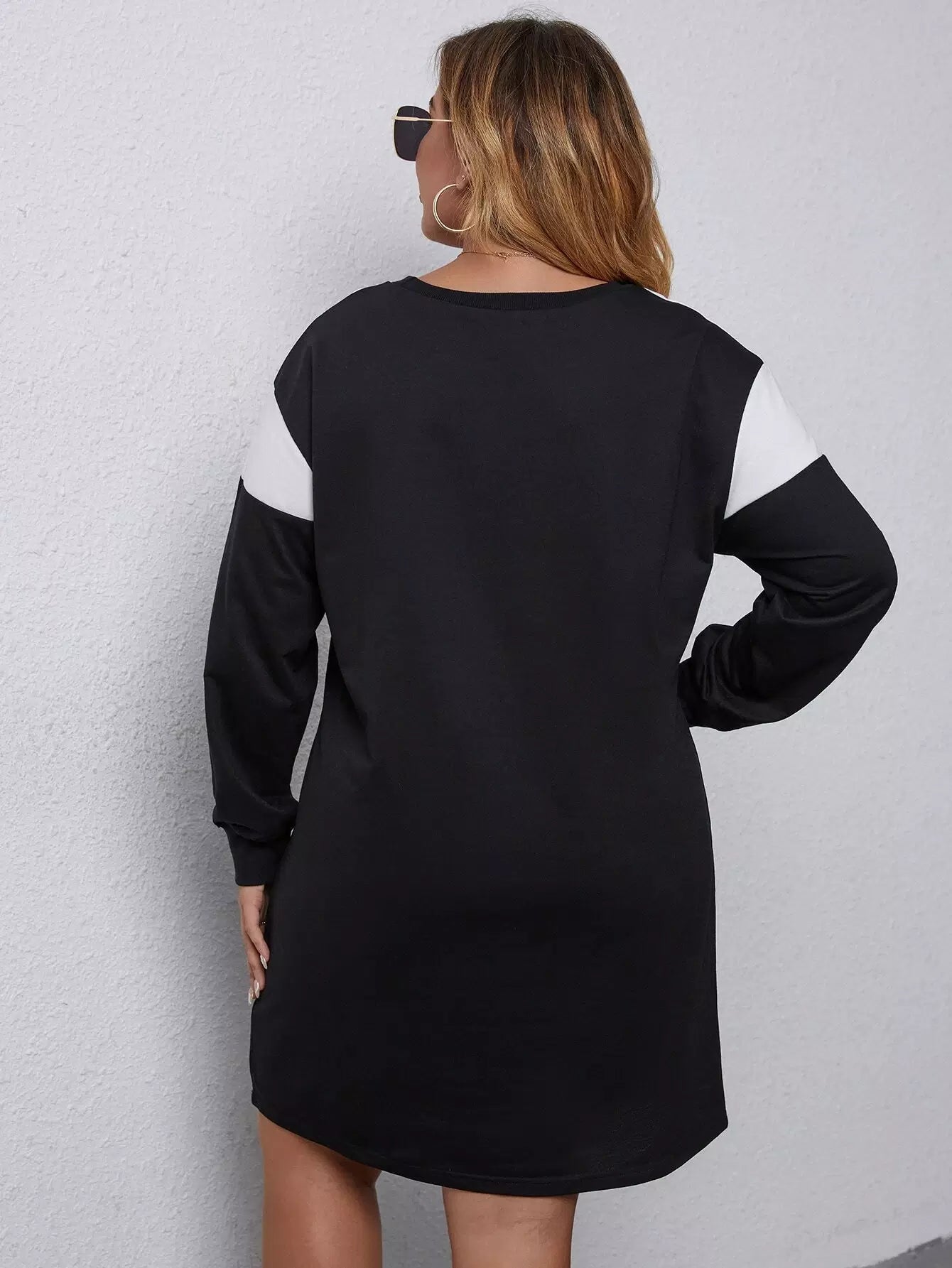 Plus Color Block Drop Shoulder Sweatshirt Dress