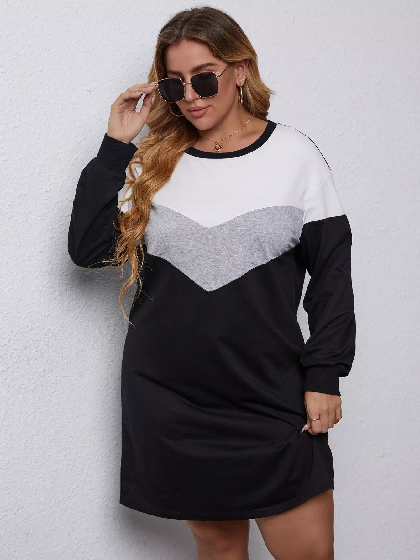 Women - Plus Color Block Drop Shoulder Sweatshirt Dress