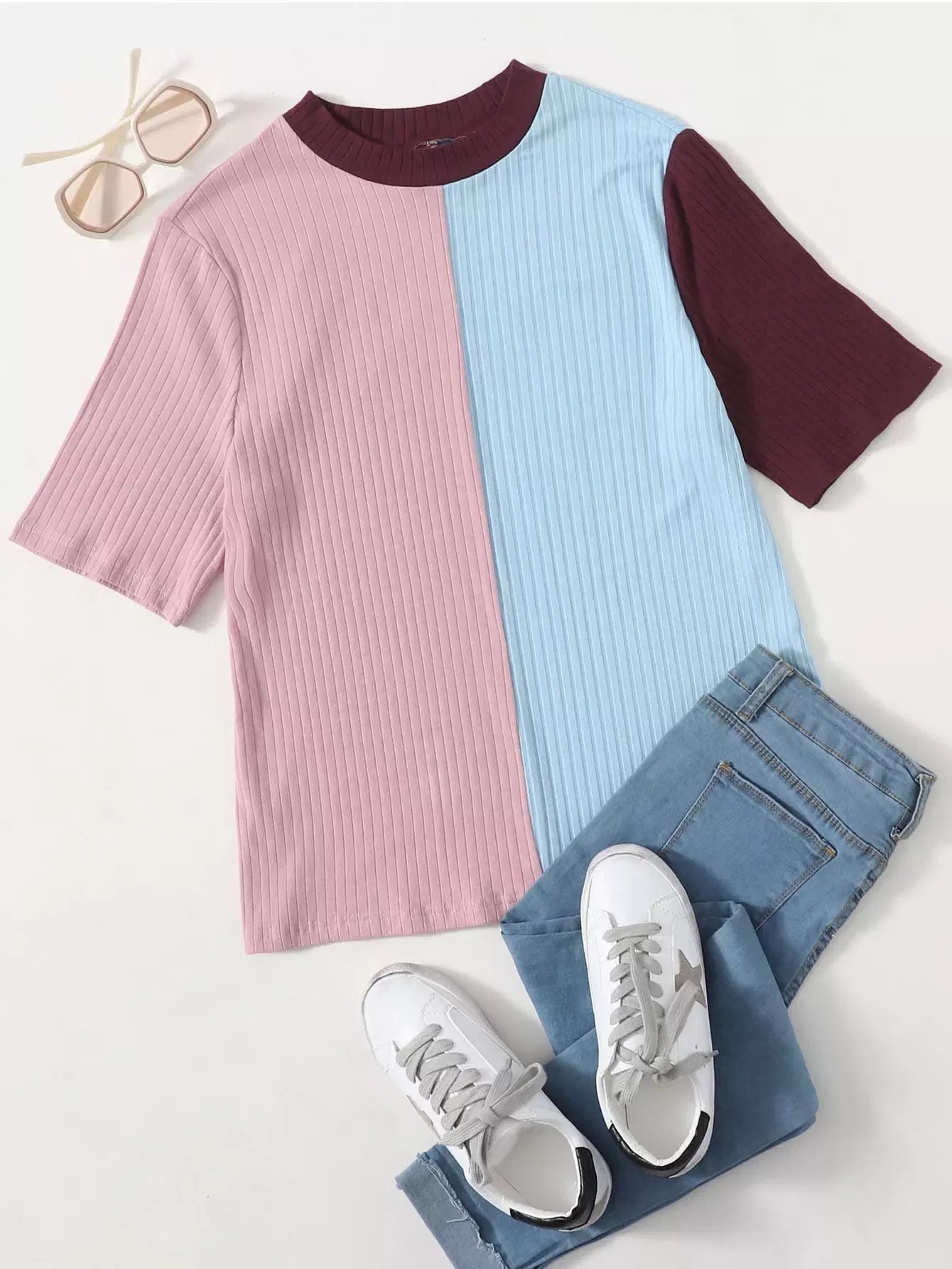 Plus Colorblock Rib-knit Tee