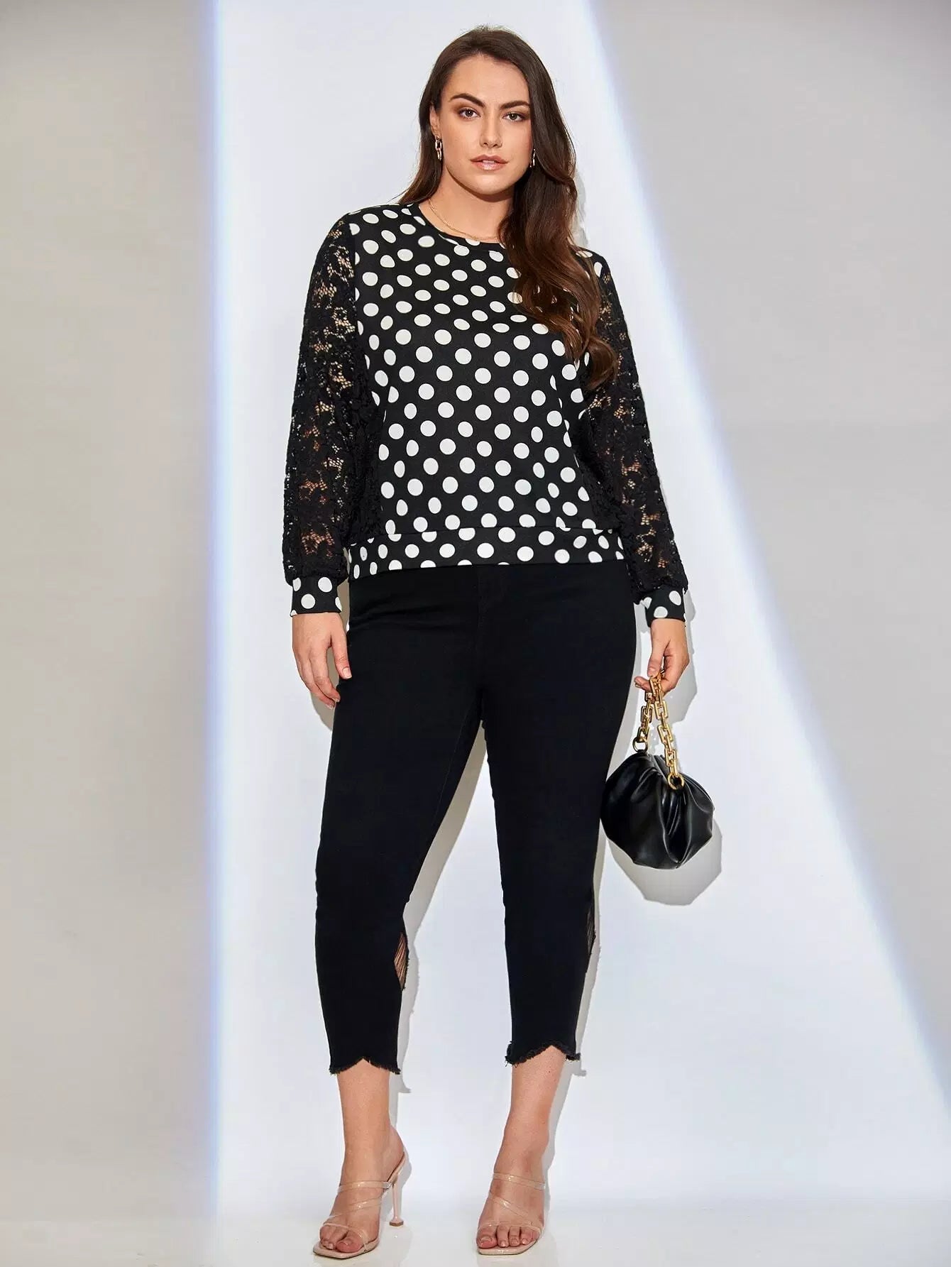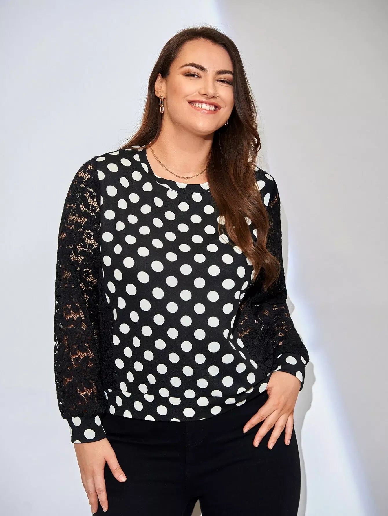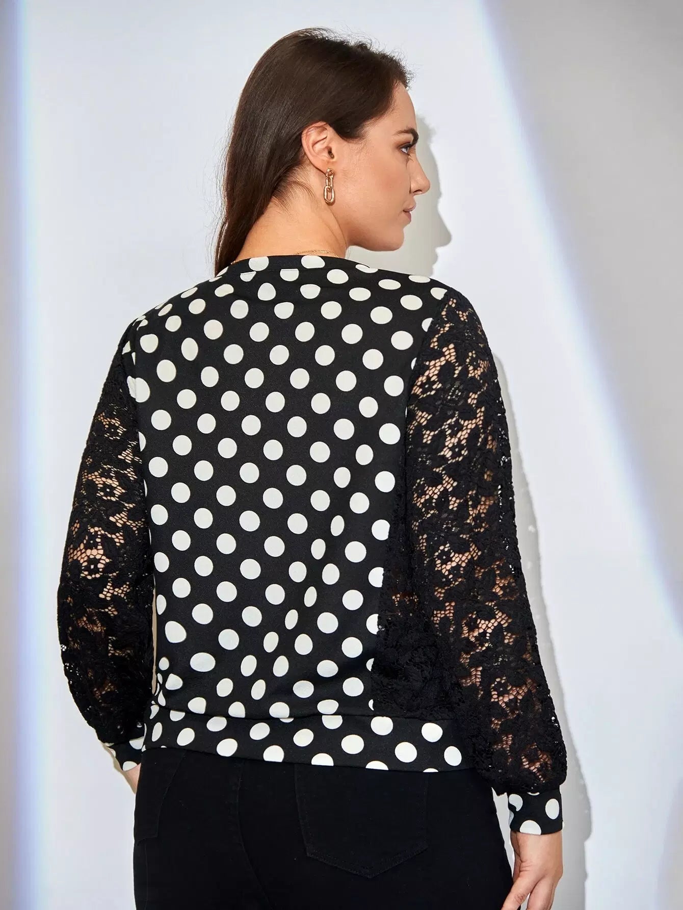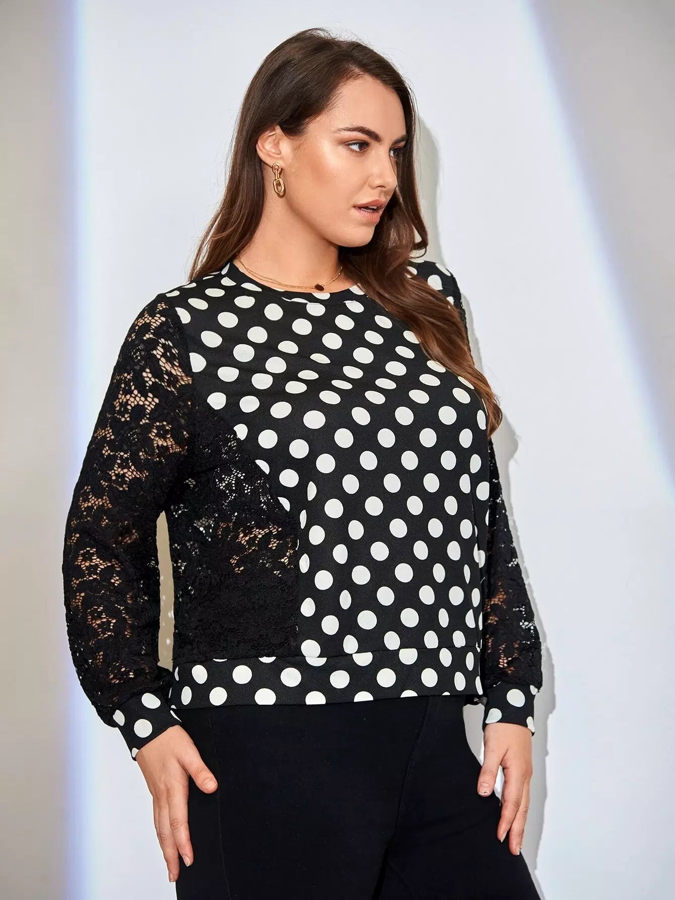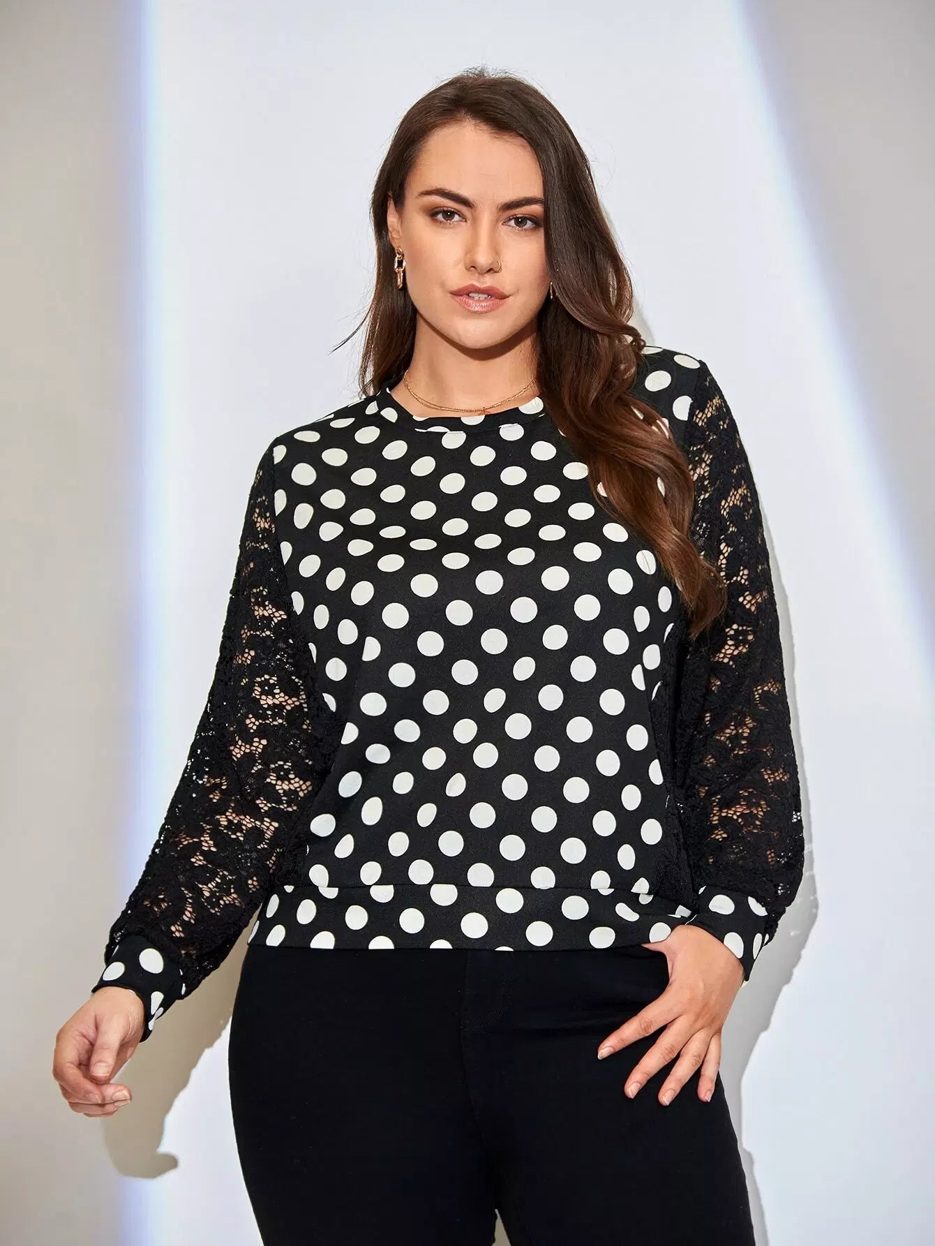 Plus Contrast Lace Polka Dot Pullover