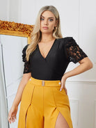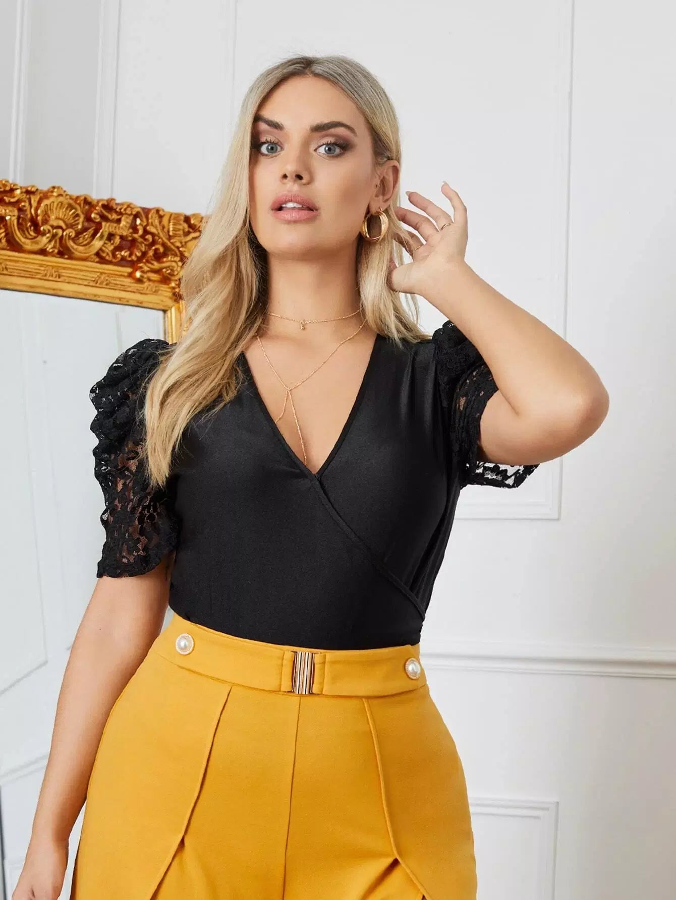Plus Contrast Lace Puff Sleeve Bodysuit