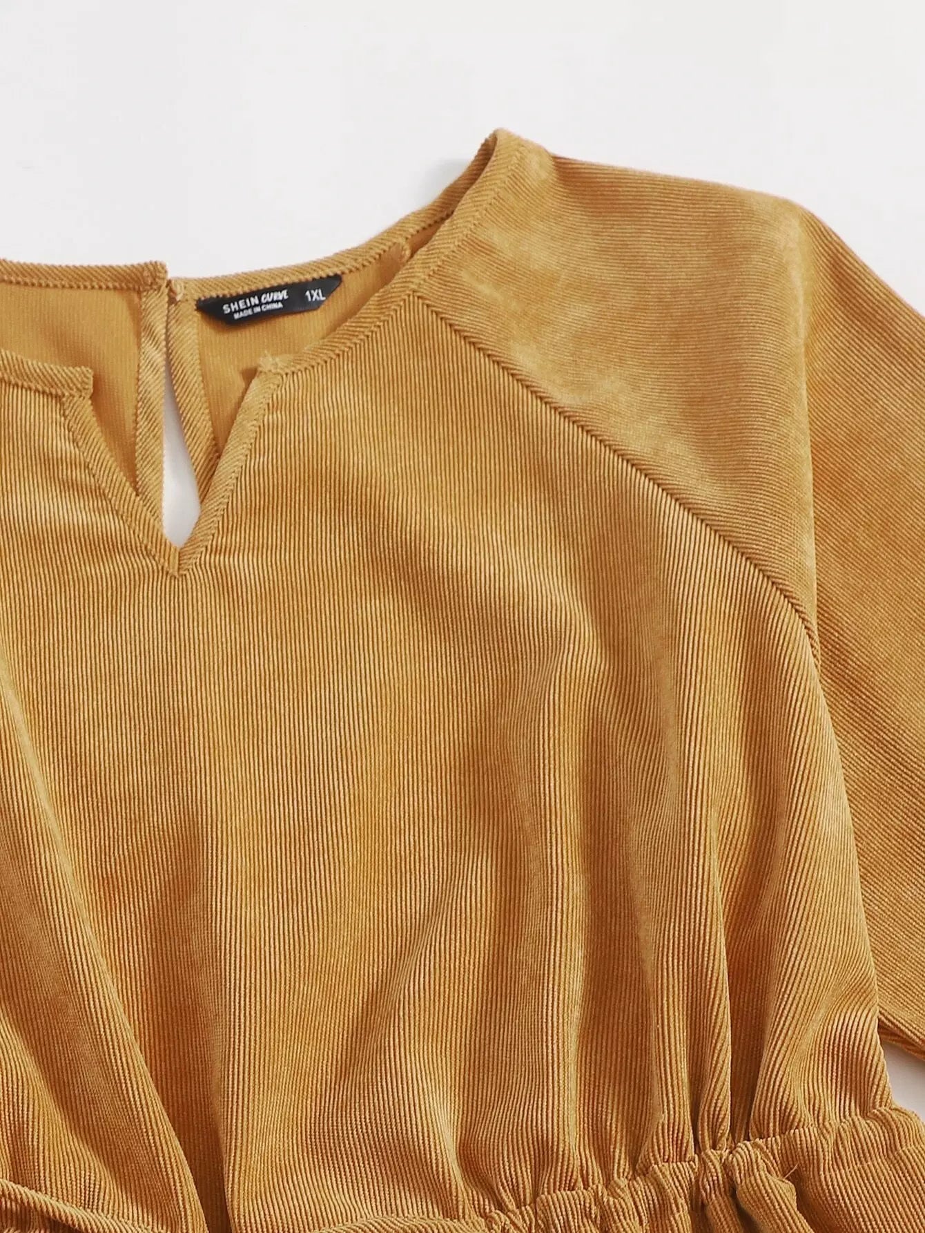 Plus Corduroy Notched Neck Romper