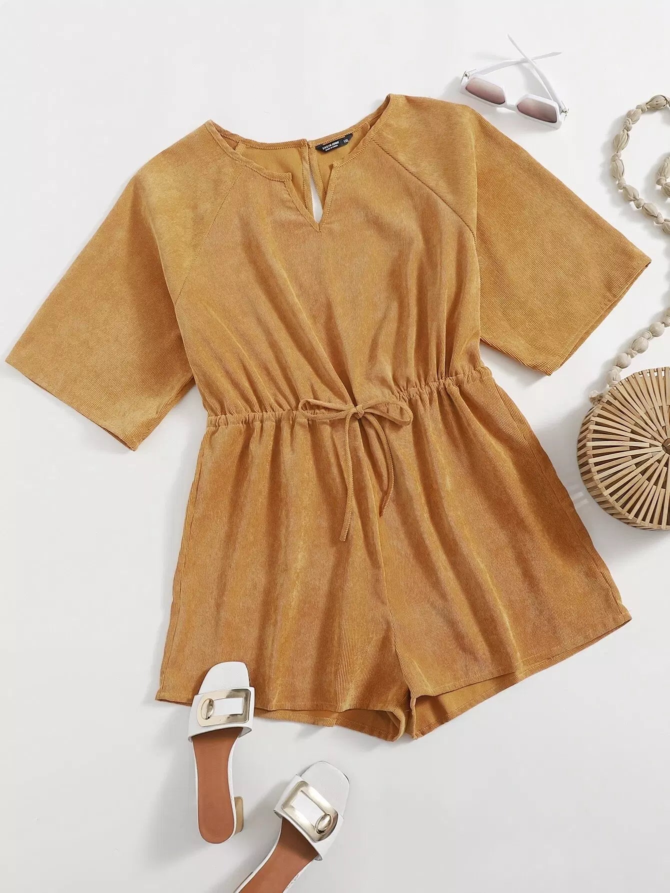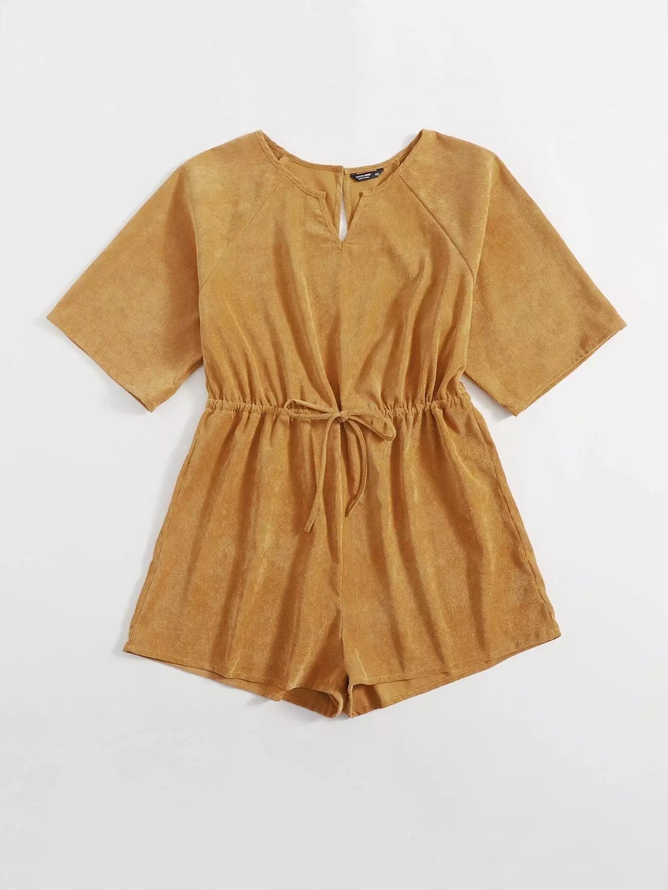 Women - Plus Corduroy Notched Neck Romper