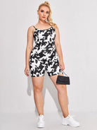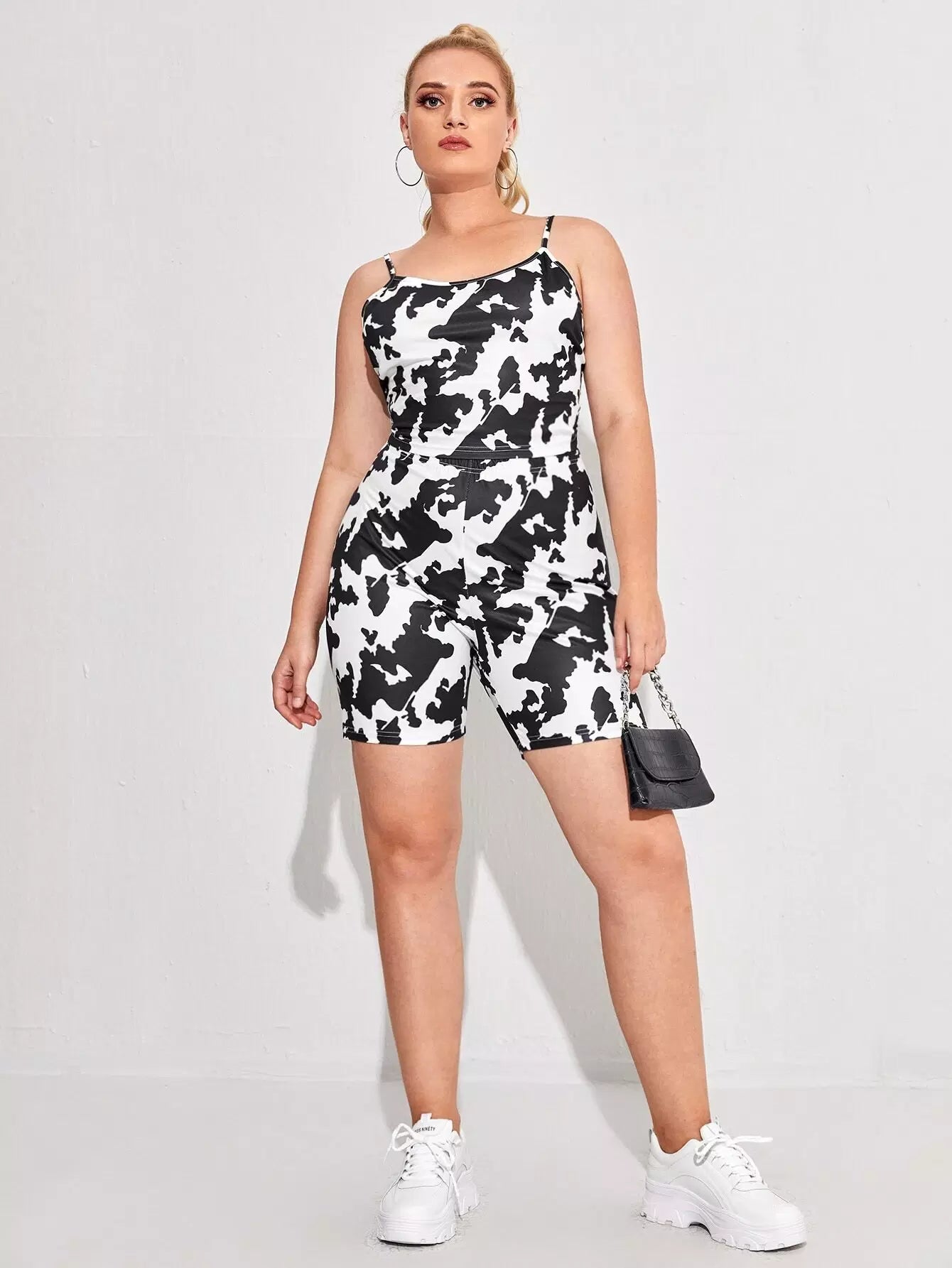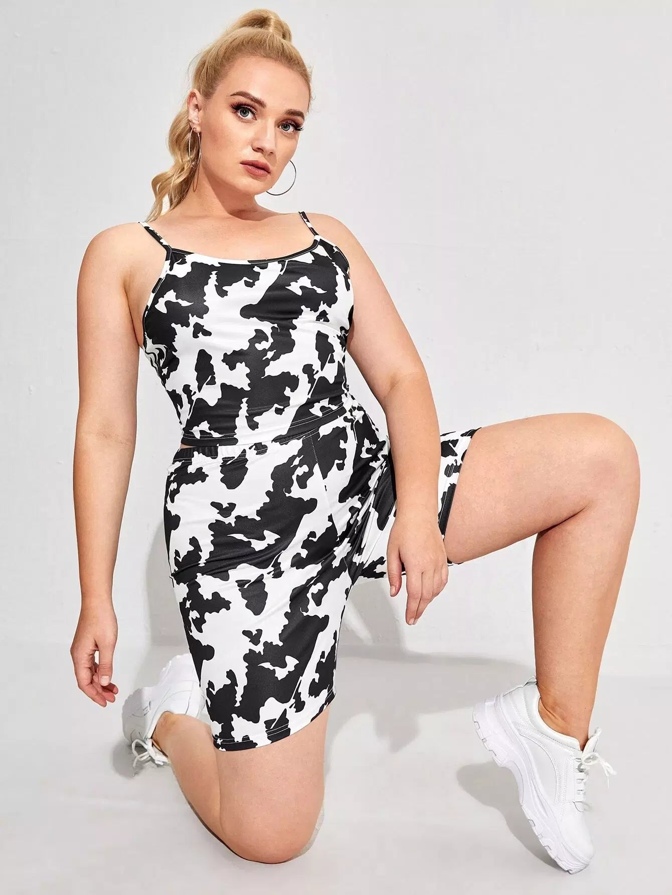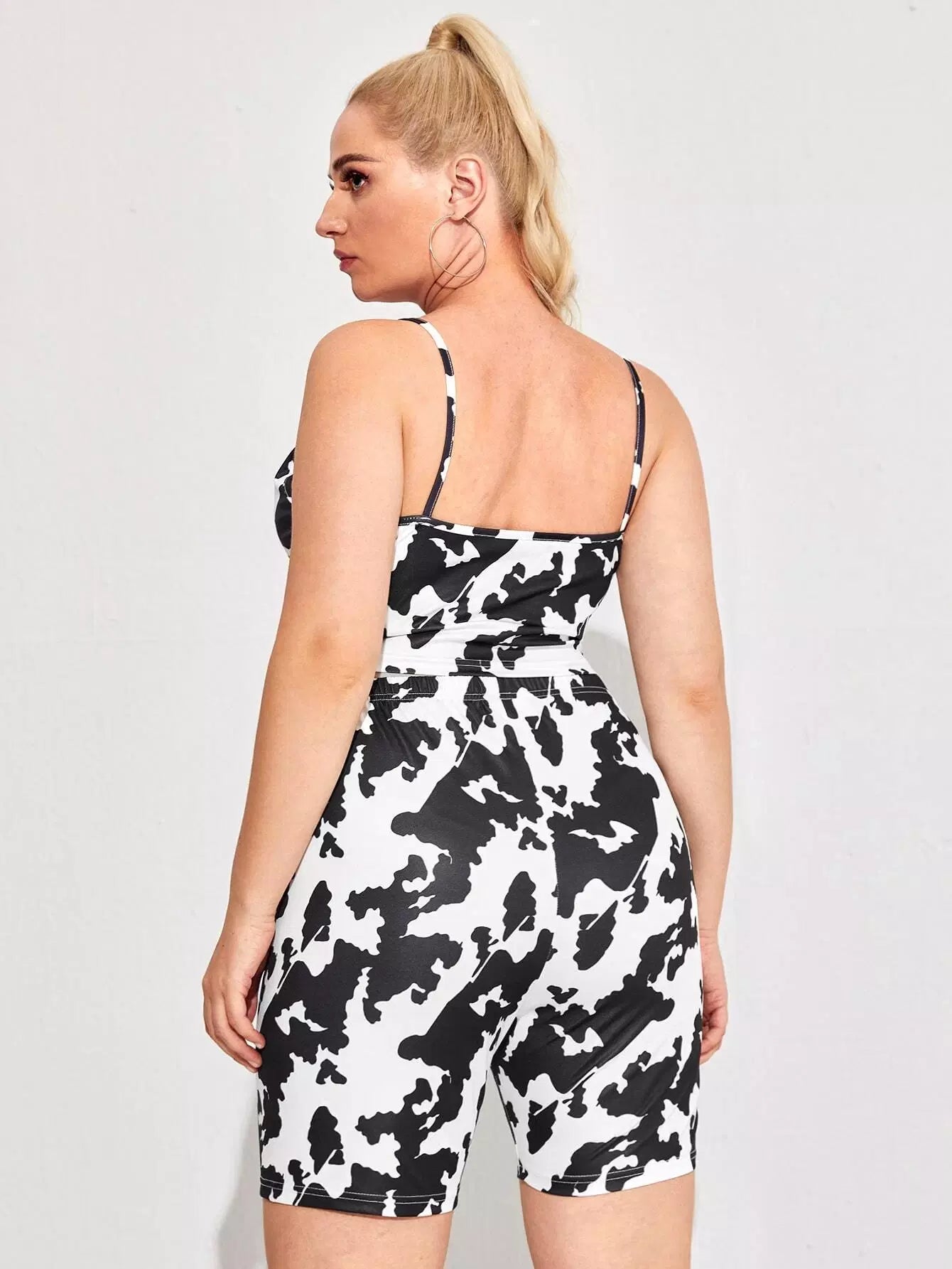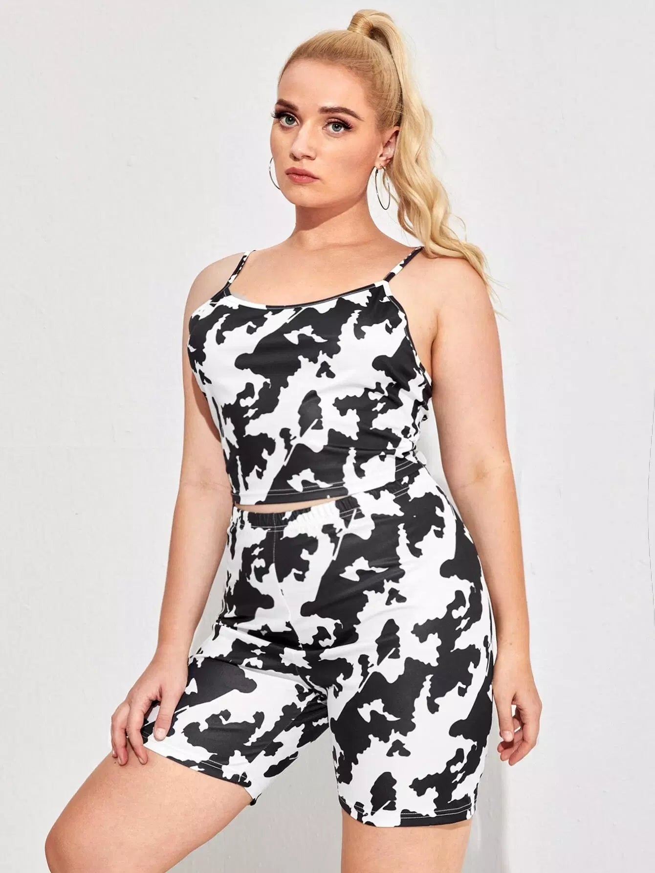 Plus Cow Print Cami Top & Biker Shorts