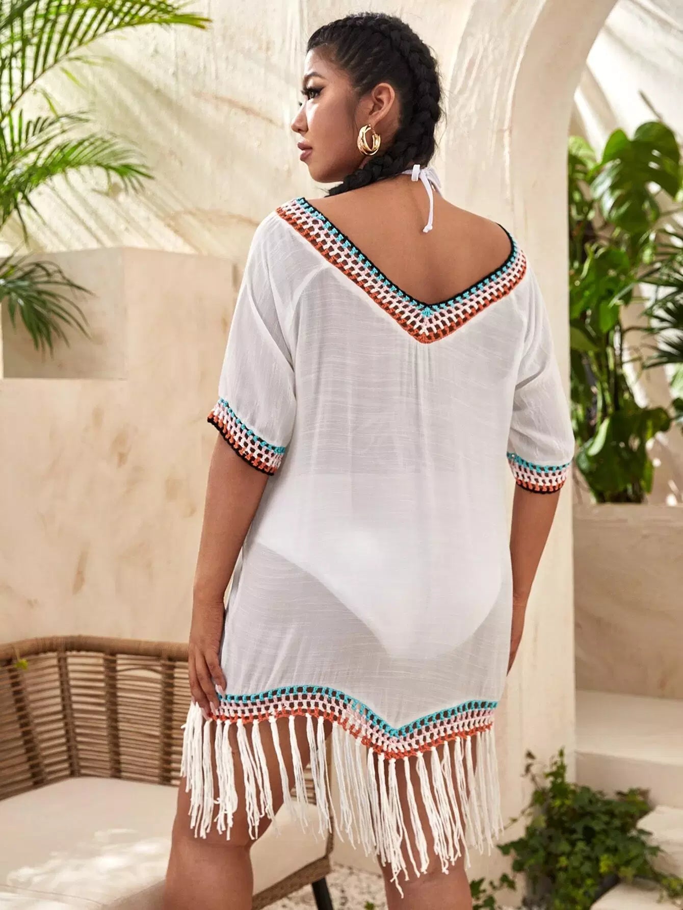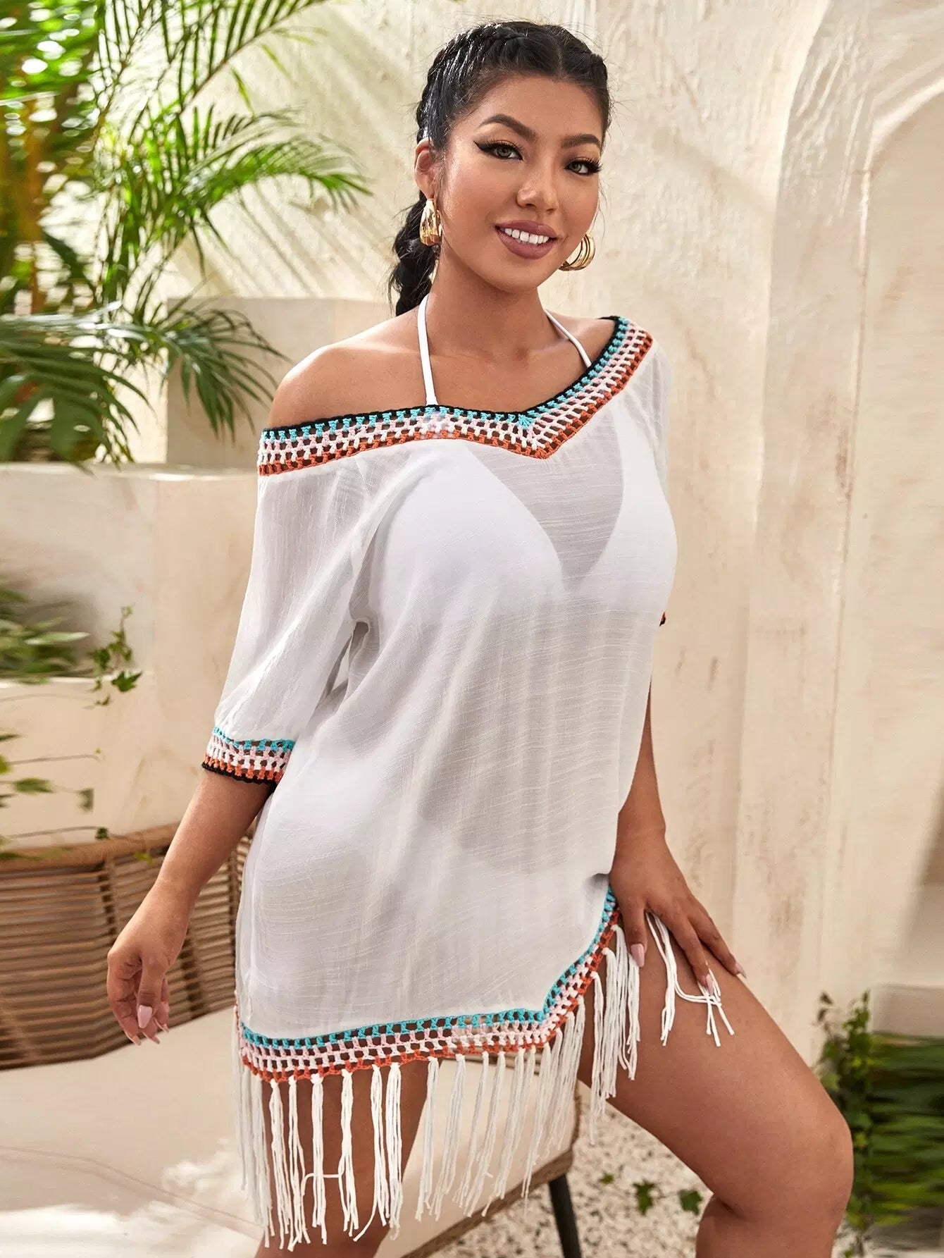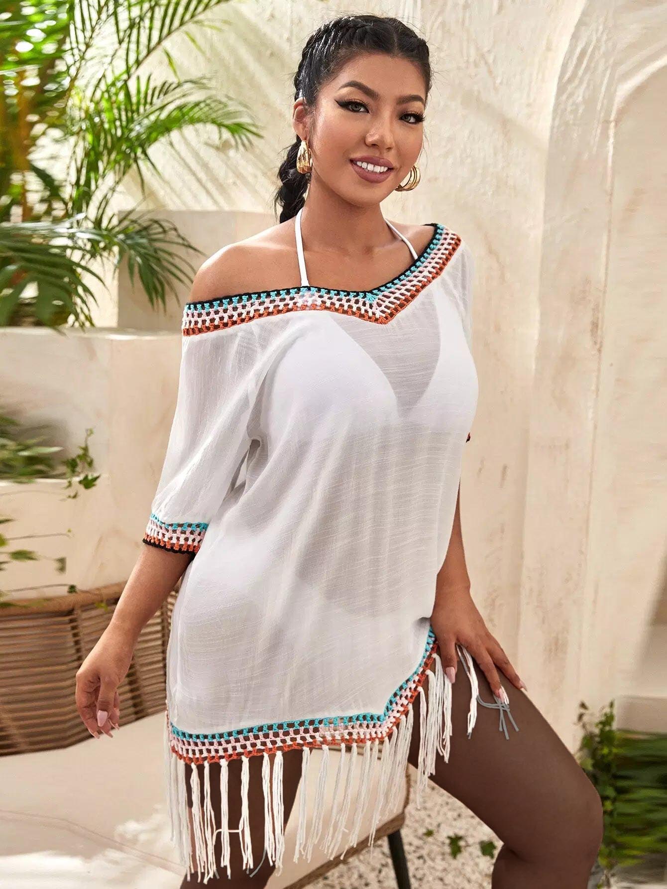 Plus Crochet Fringe Hem Cover Up