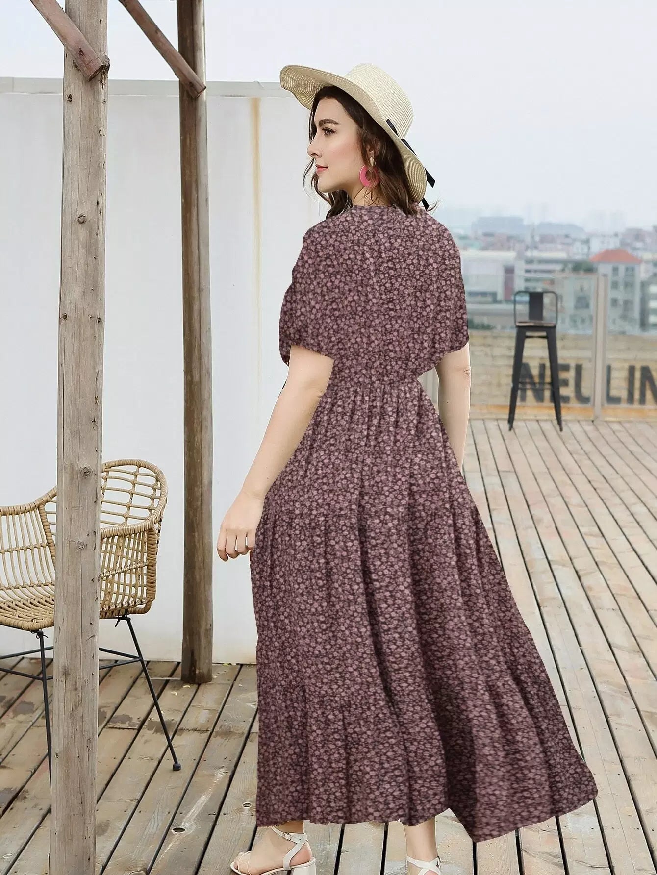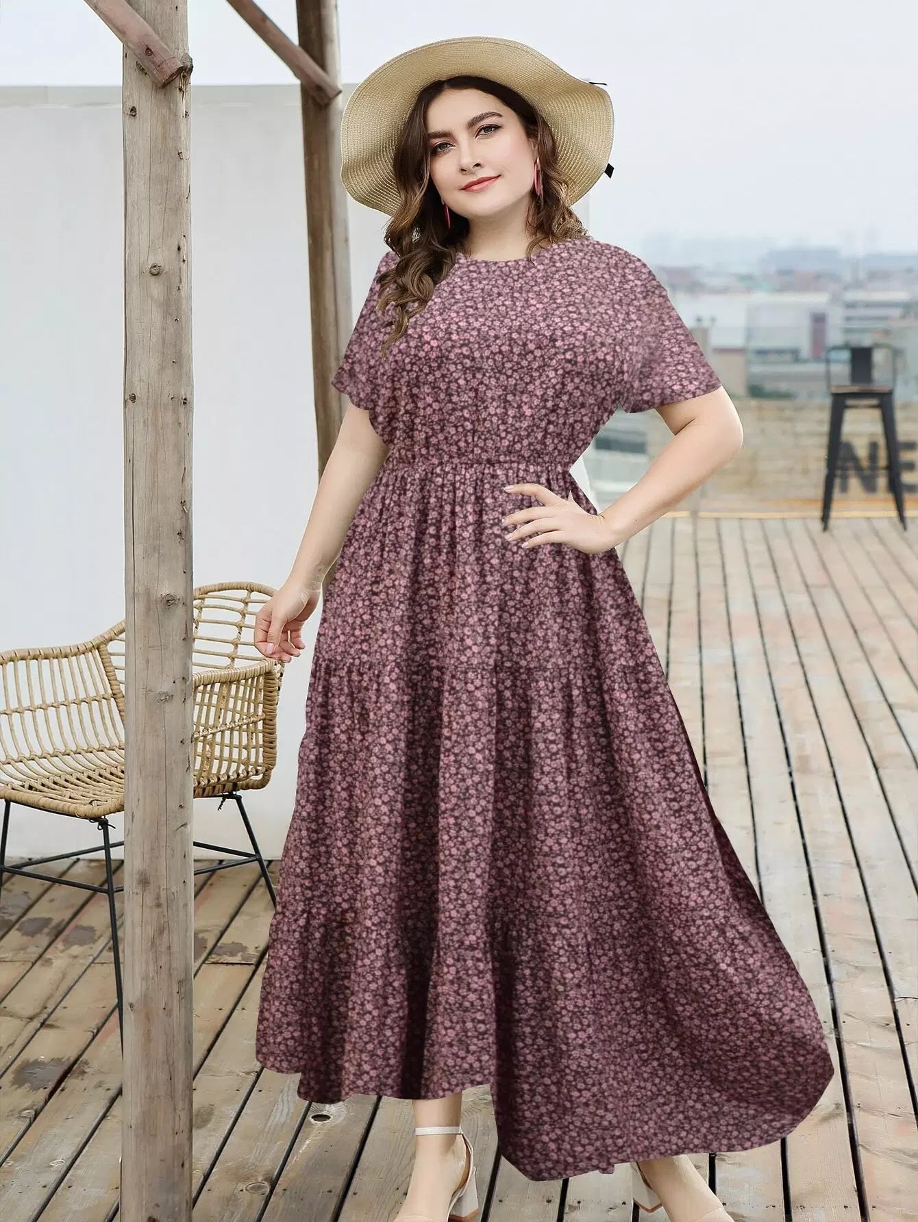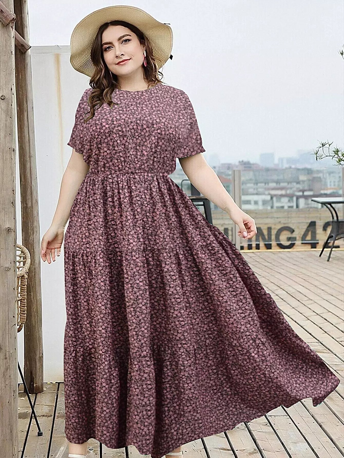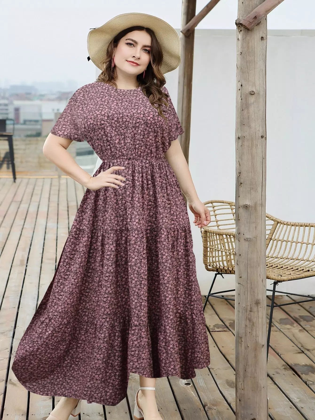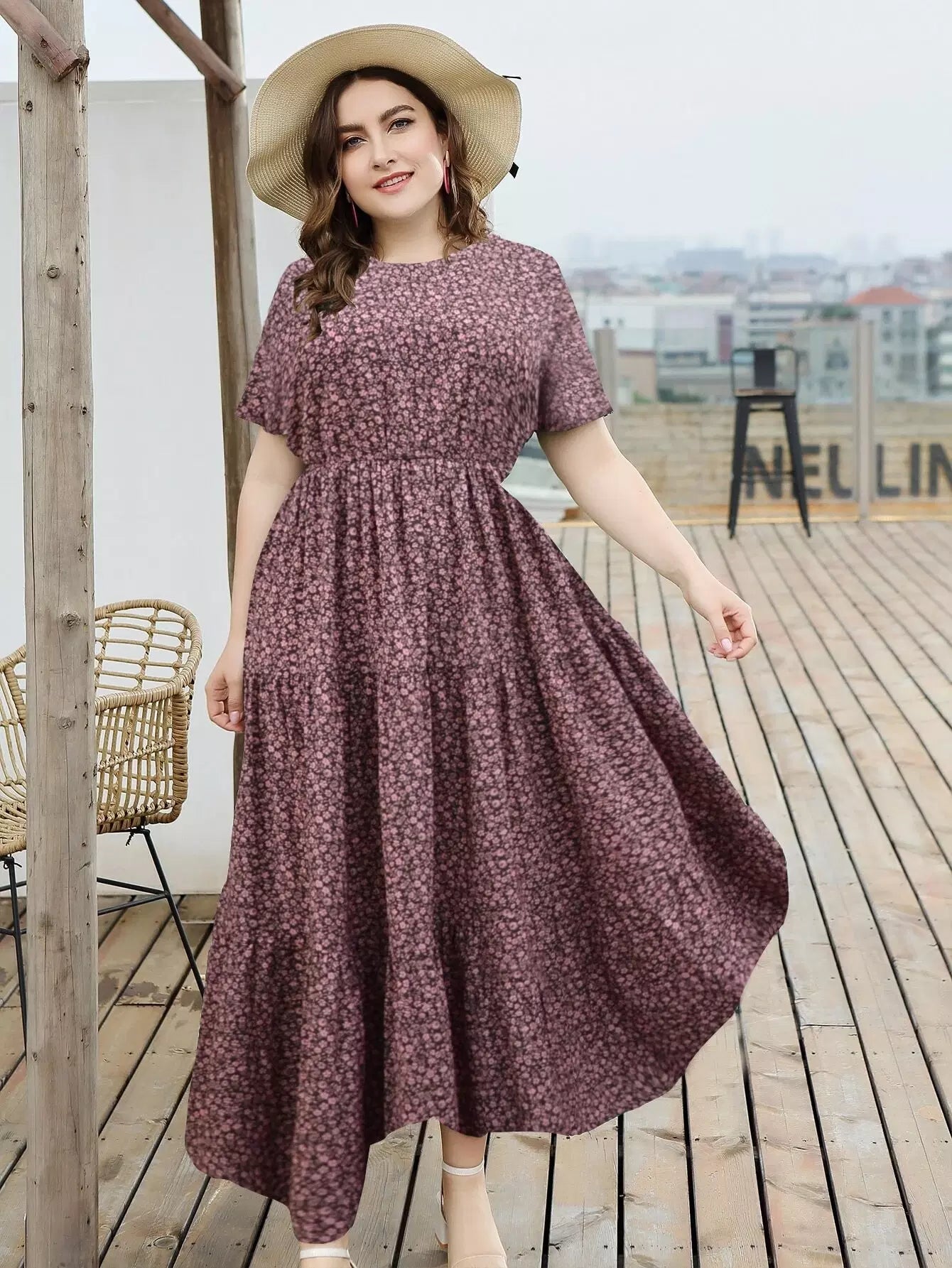 Plus Ditsy Floral Ruffle Hem Maxi Dress