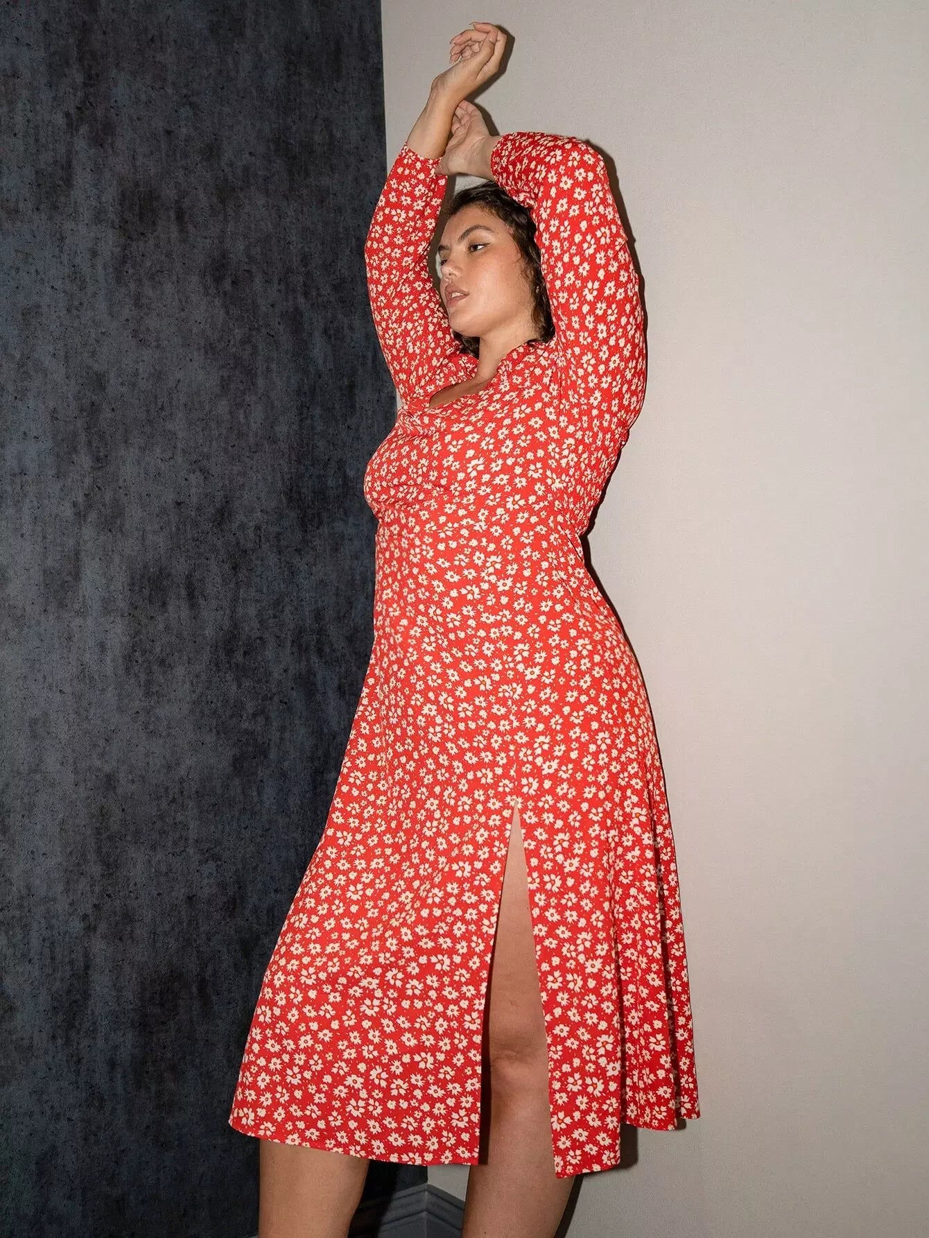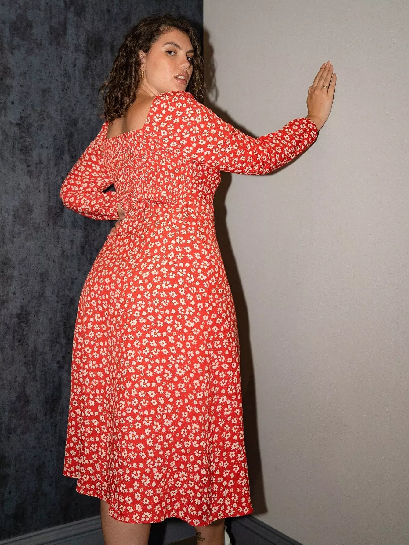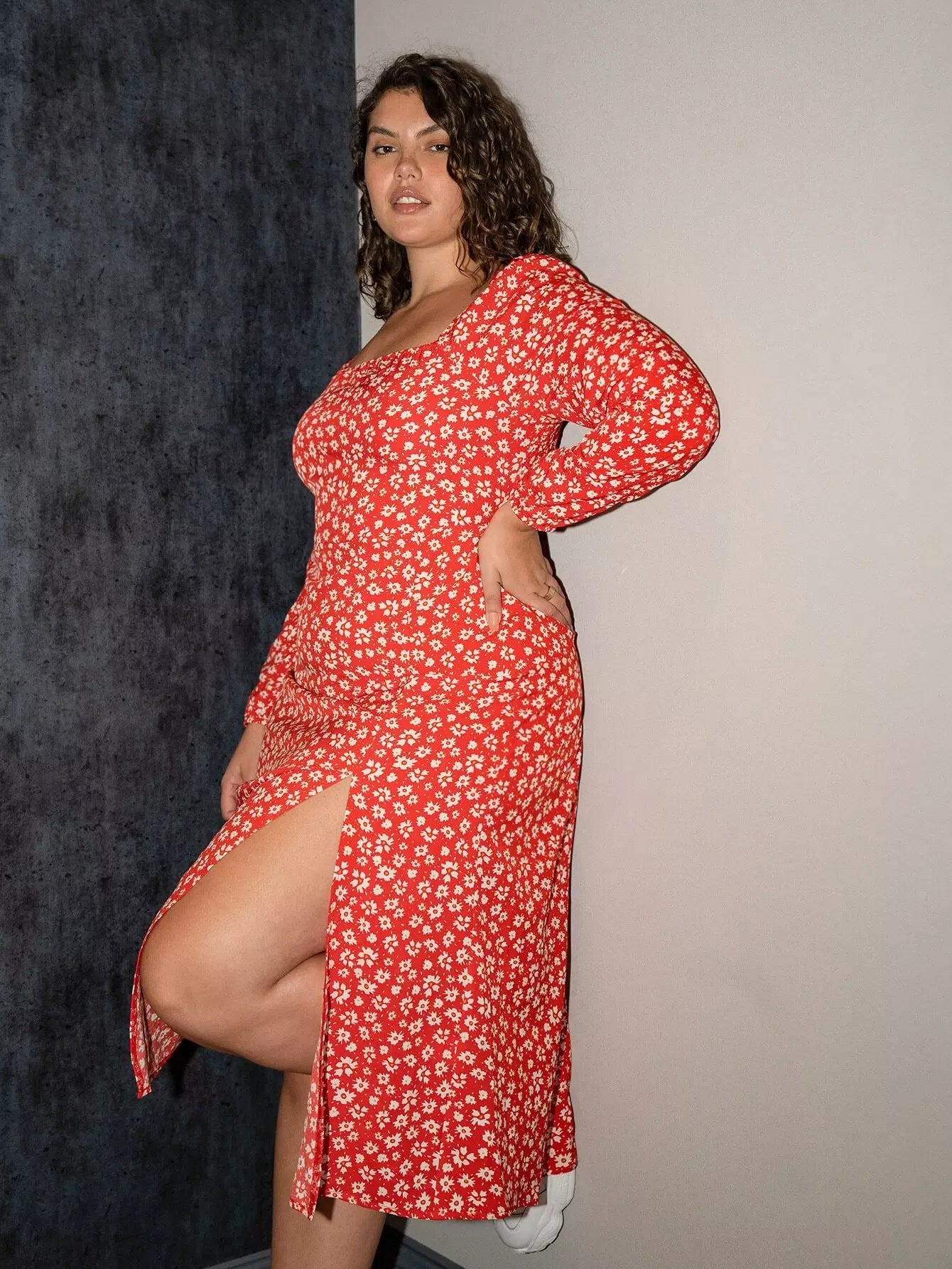 Plus Ditsy Floral Square Neck Split Thigh Milkmaid Dress