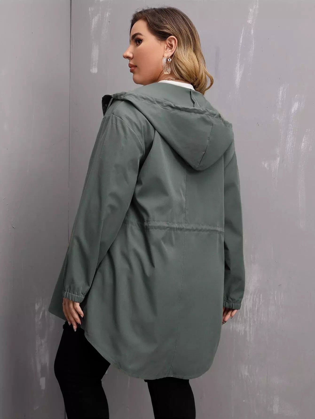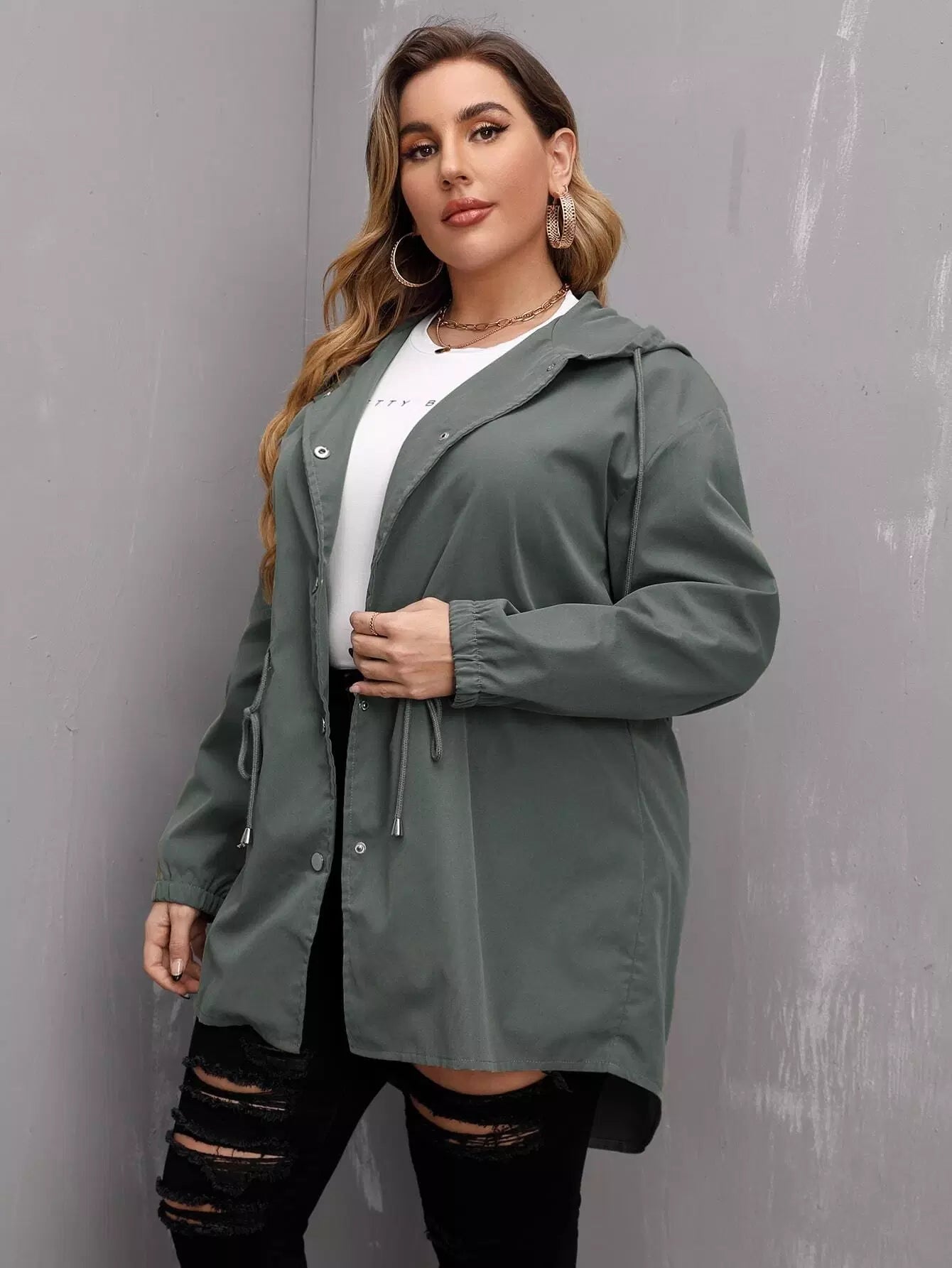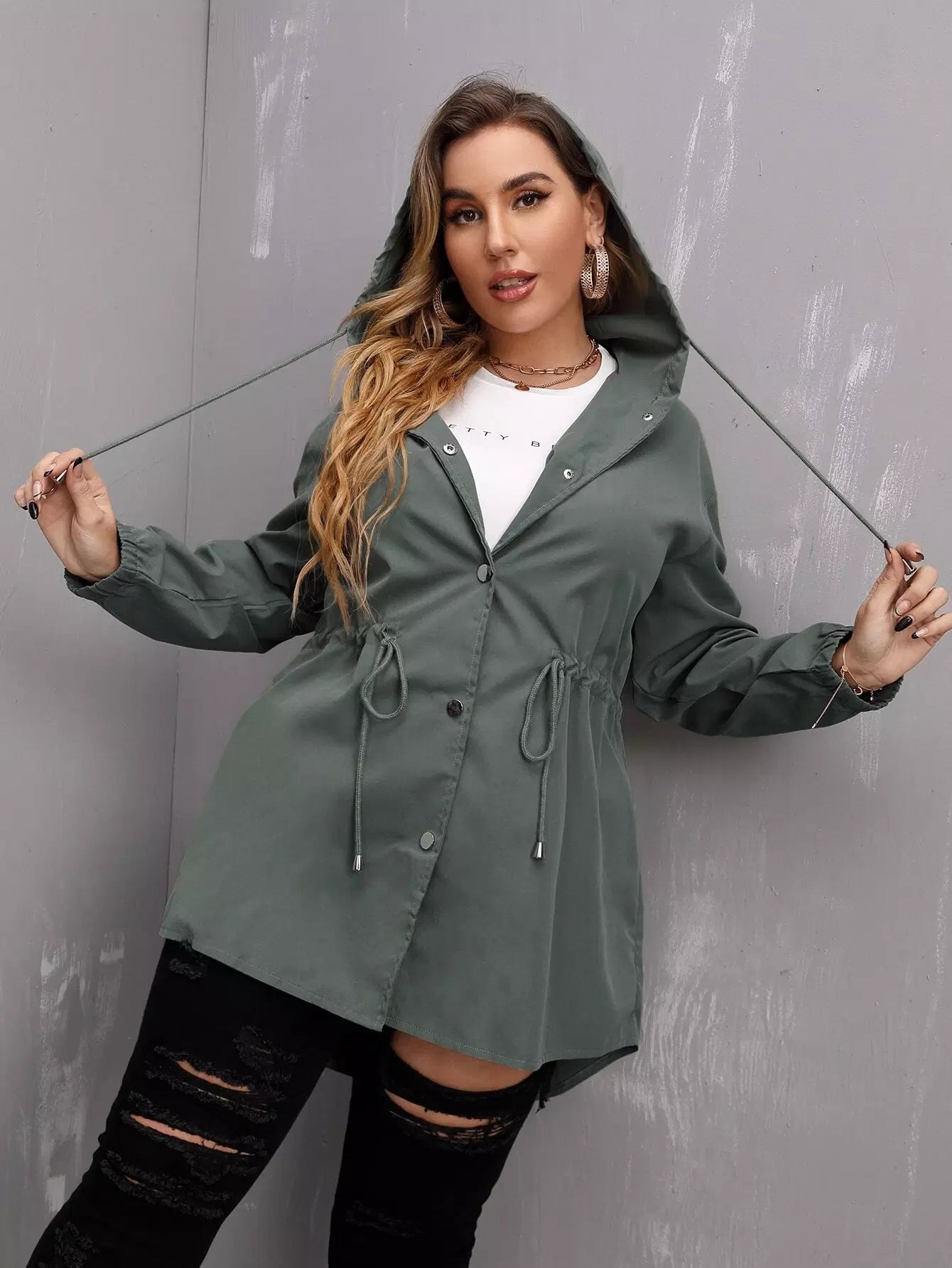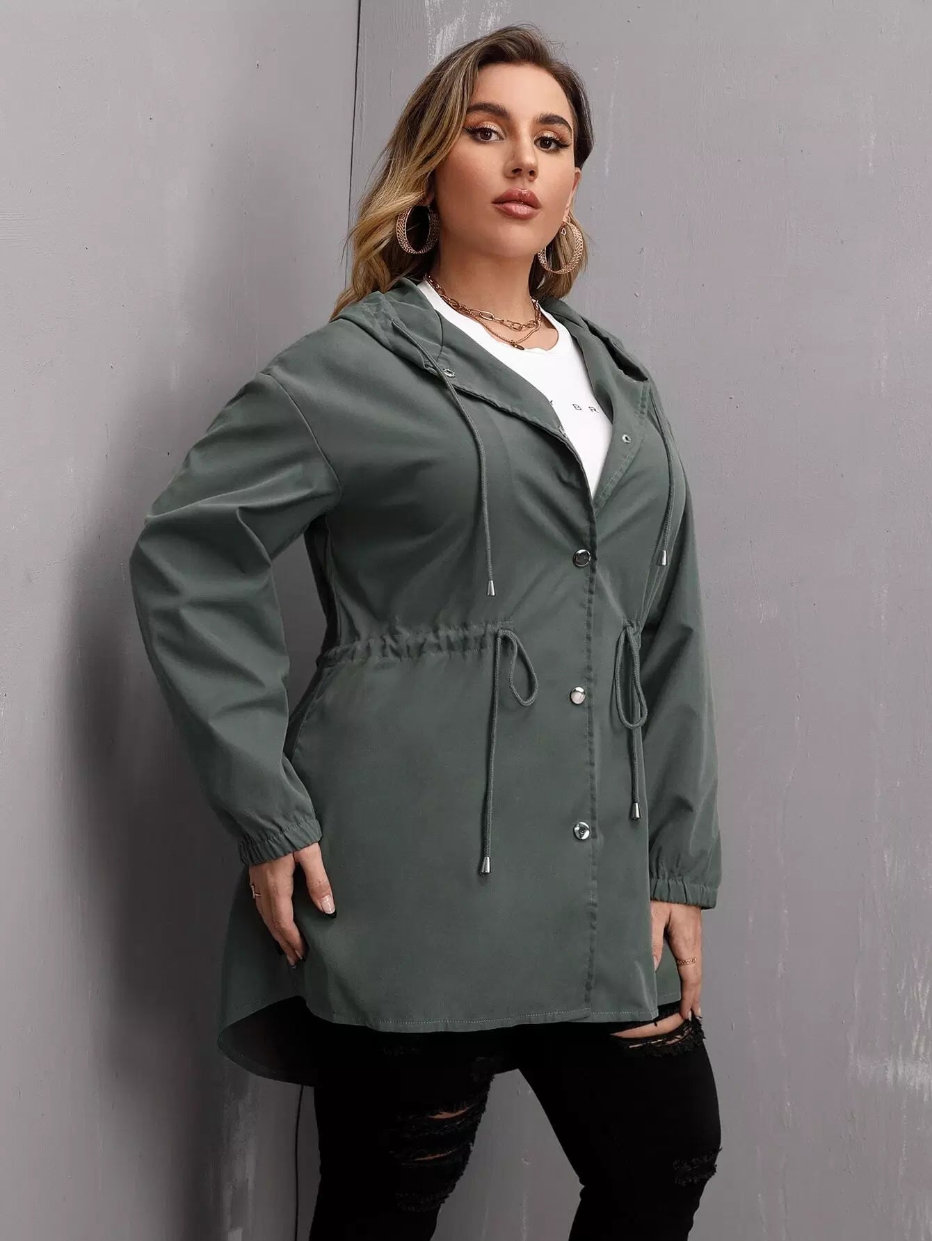 Women - Plus Drawstring Waist Drop Shoulder Hooded Coat