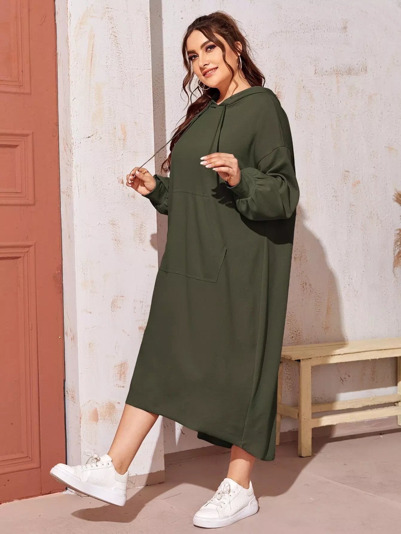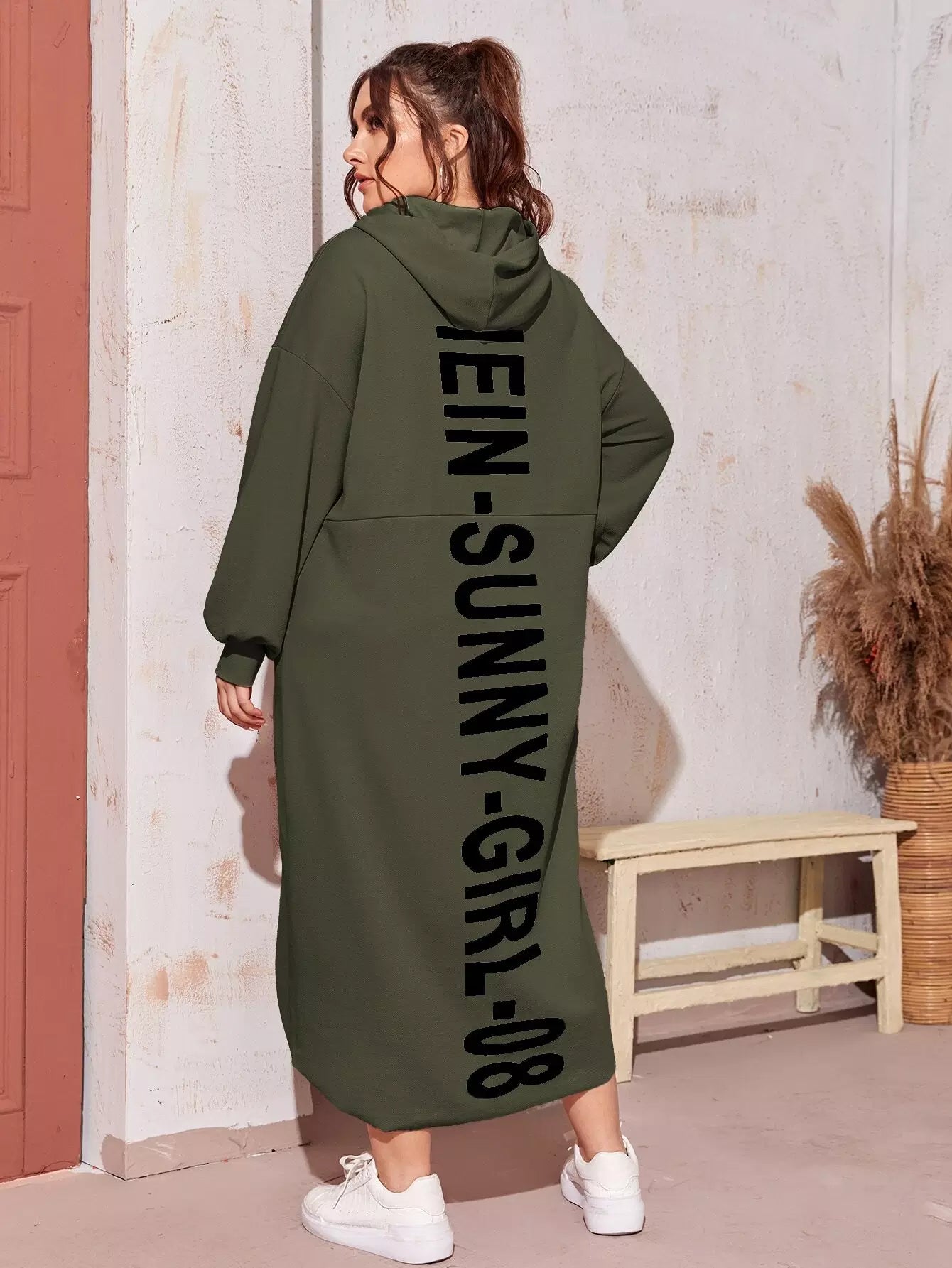 Plus Drop Shoulder Letter Graphic Pouch Pocket Hooded Dress