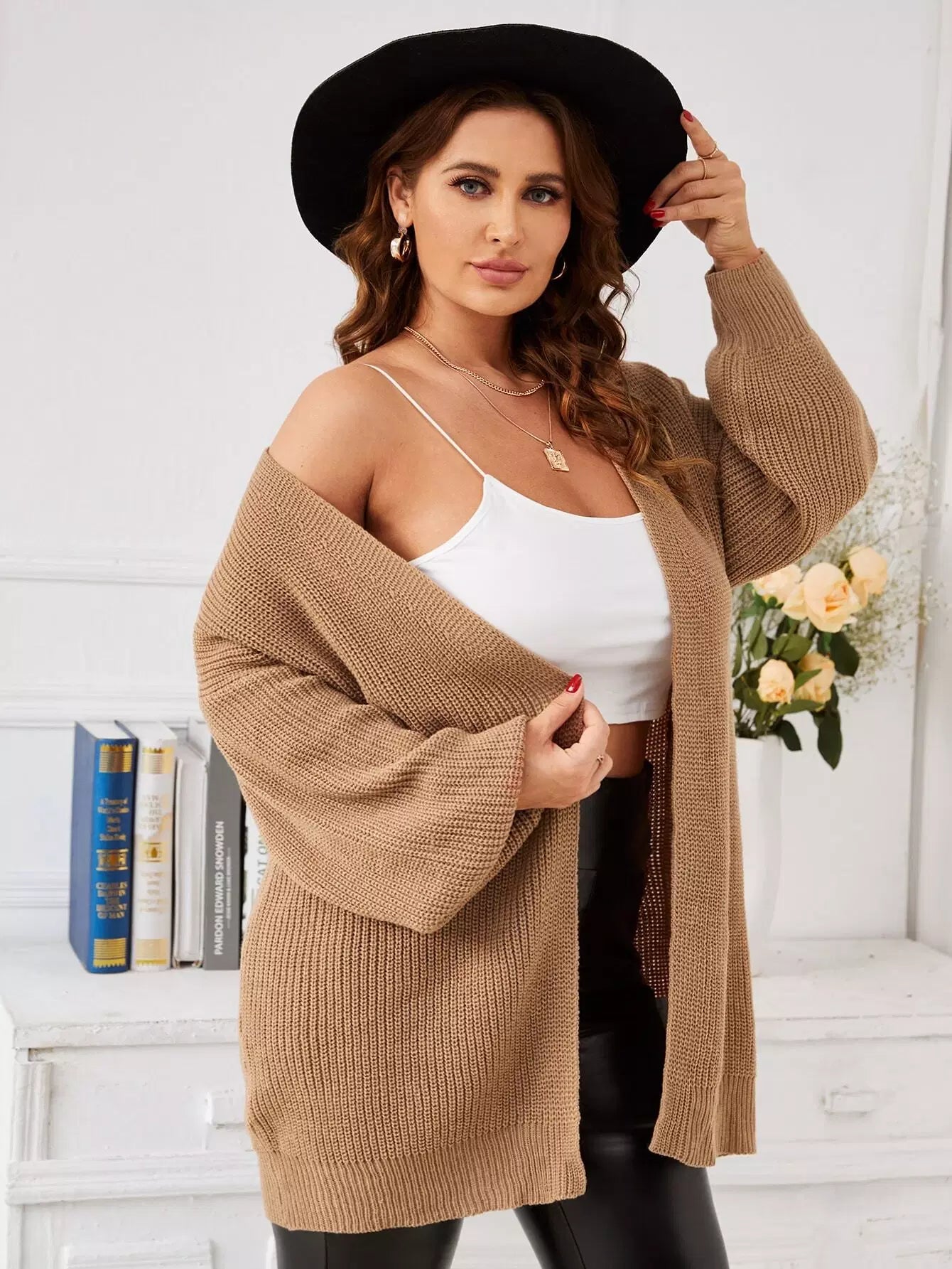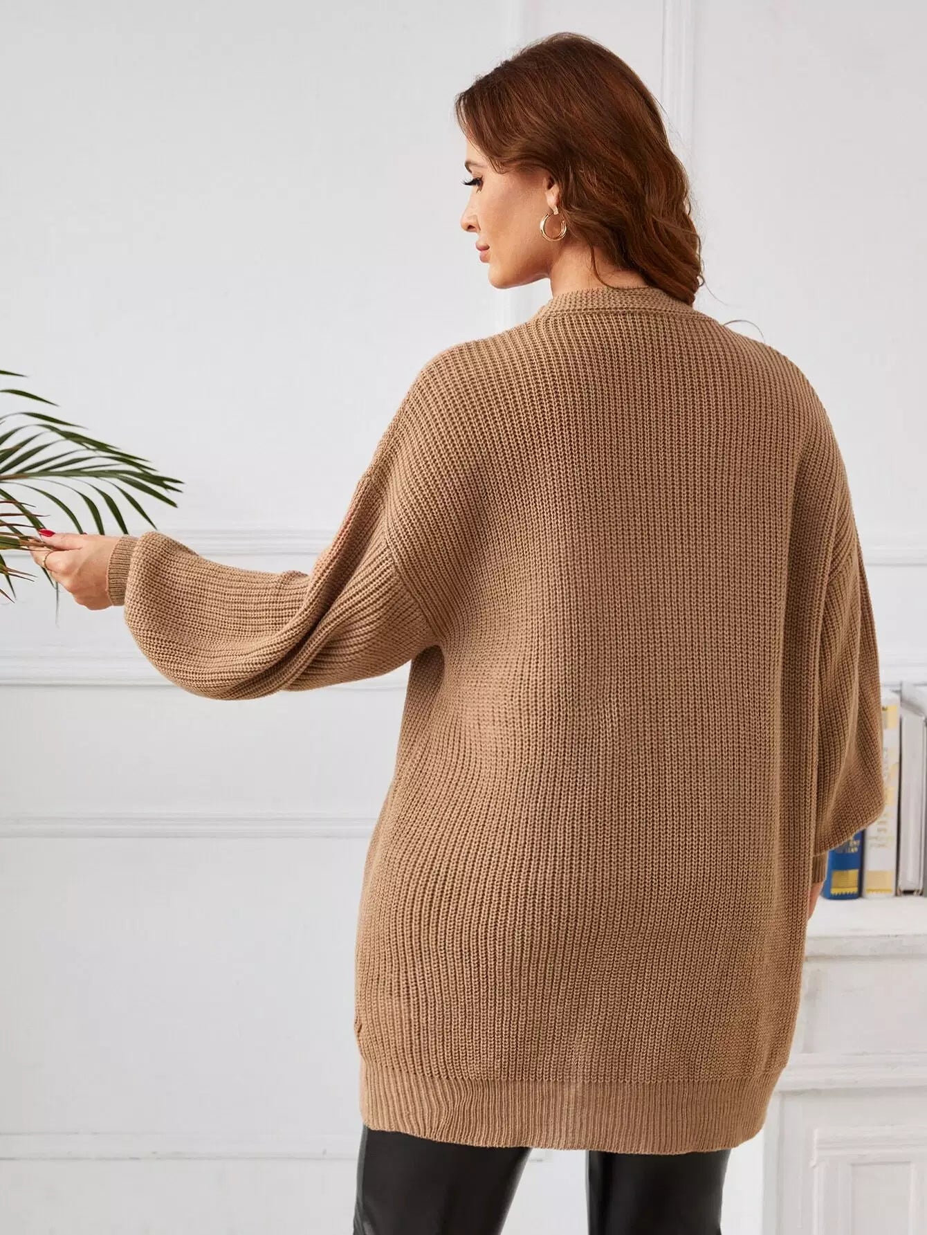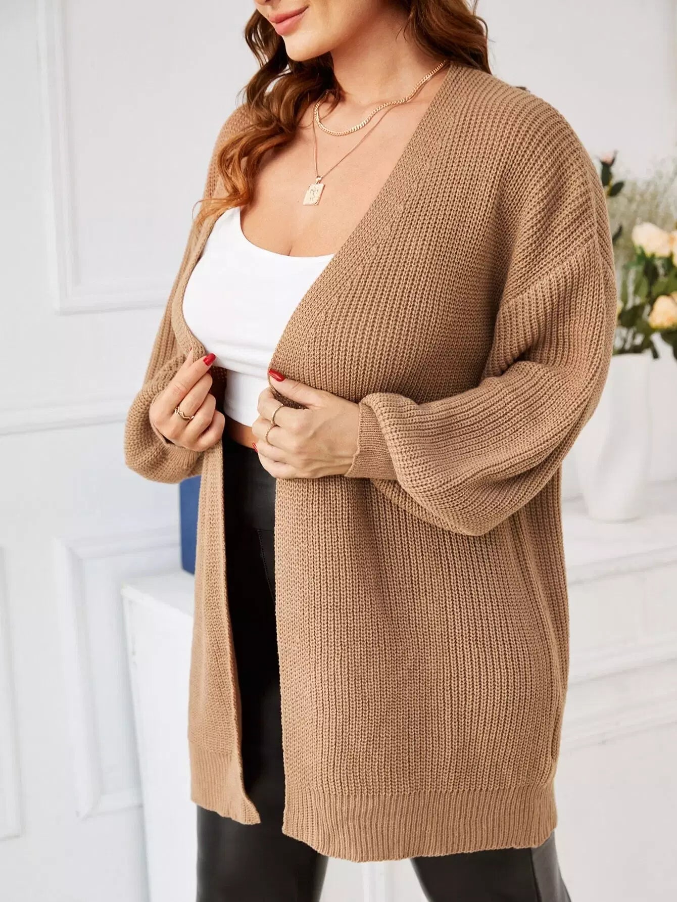 Plus Drop Shoulder Open Front Cardigan