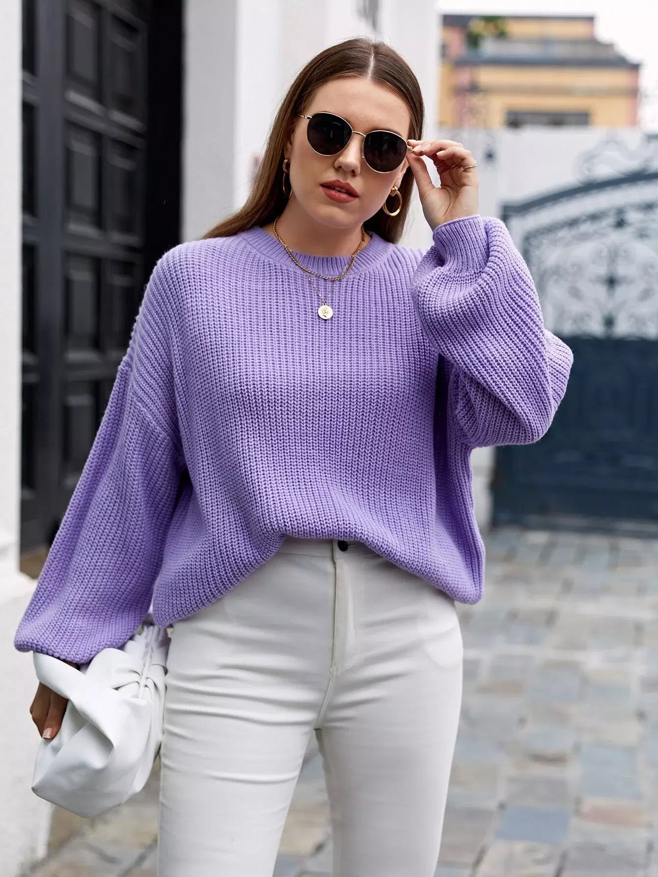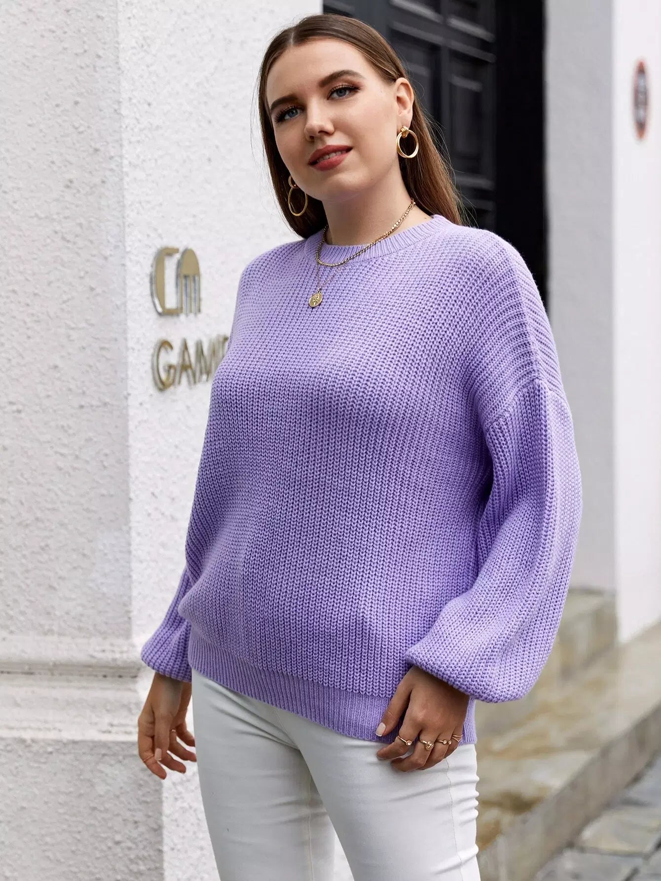 Plus Drop Shoulder Solid Sweater