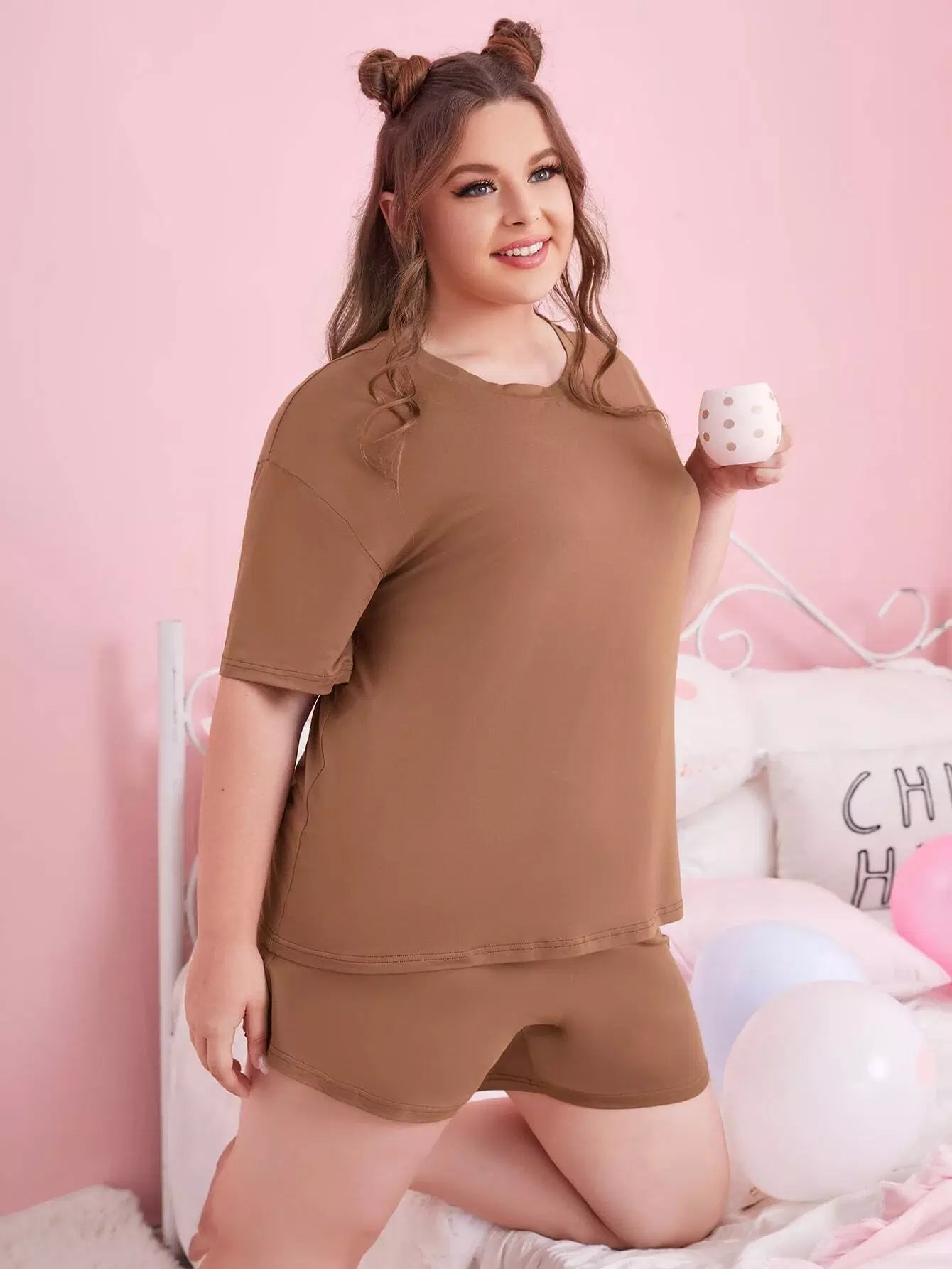 Plus Drop Shoulder Tee & Shorts PJ Set