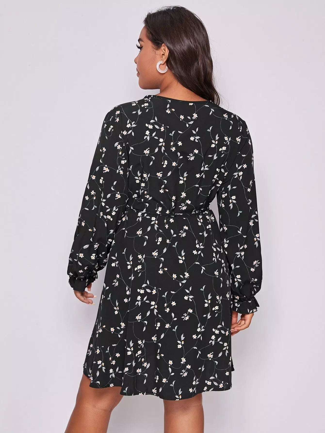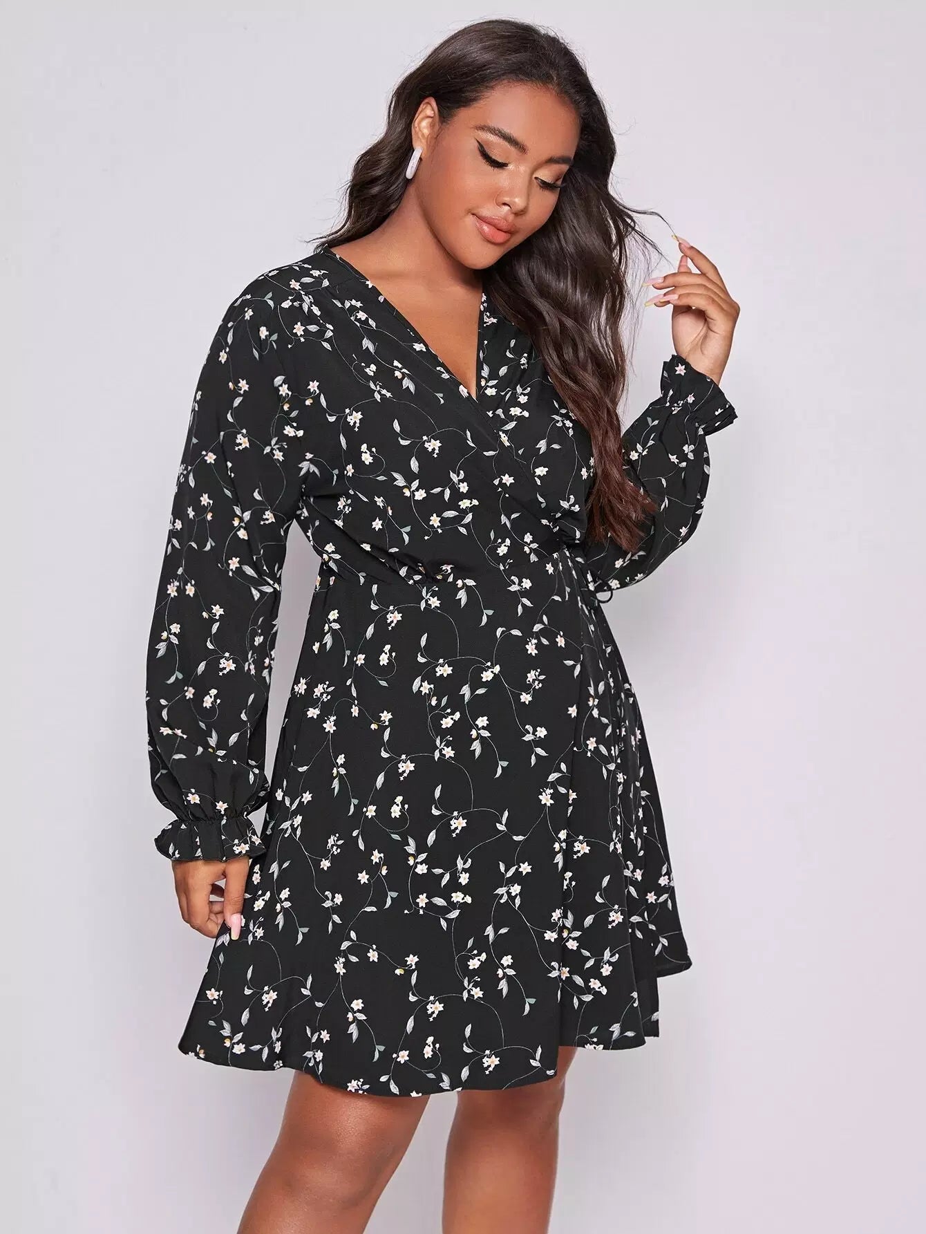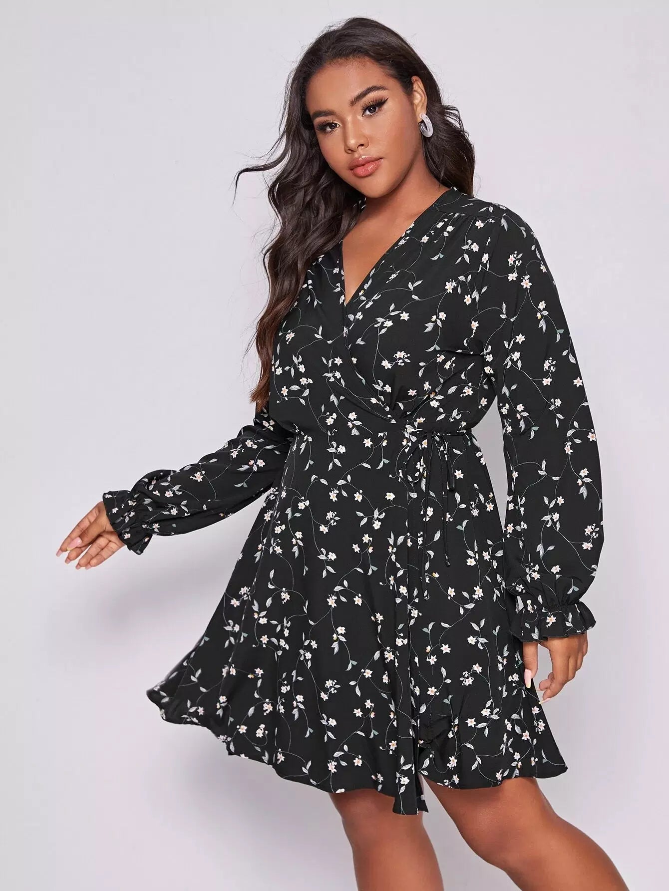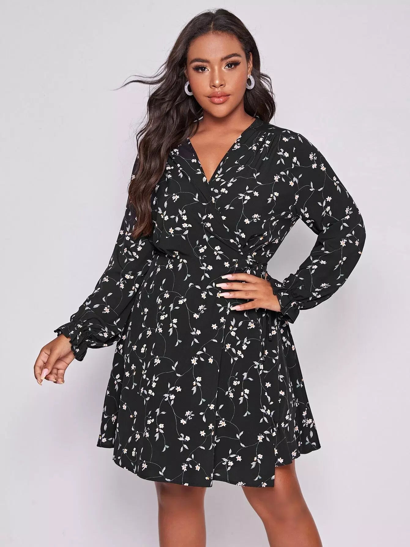 Plus Floral Print Tie Side Wrap A-line Dress