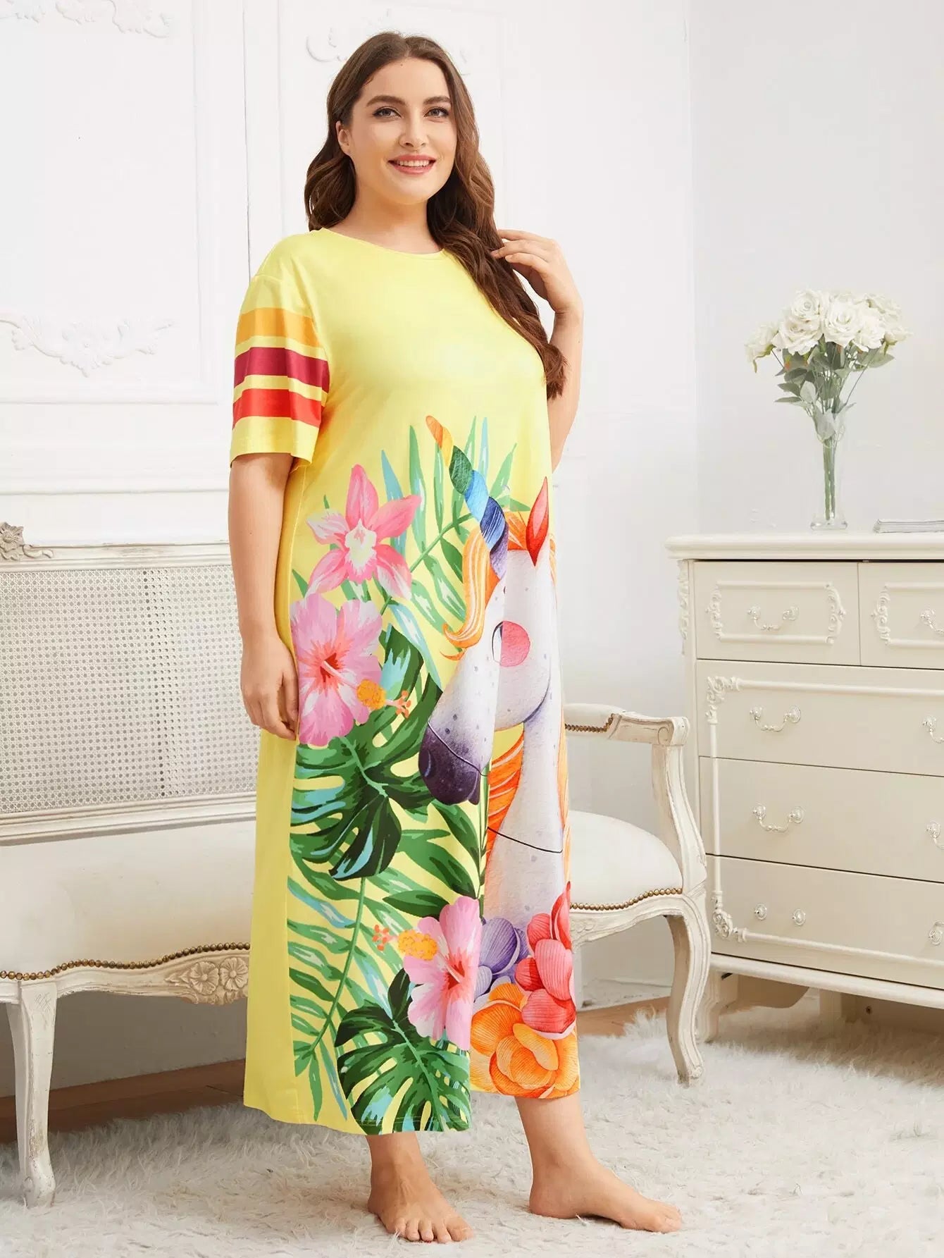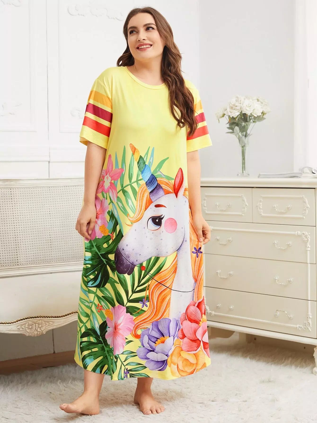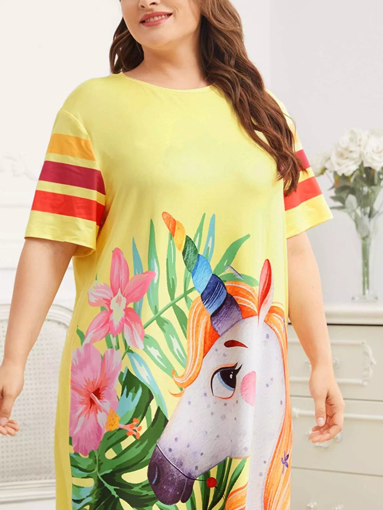 Plus Floral & Unicorn Print Nightdress