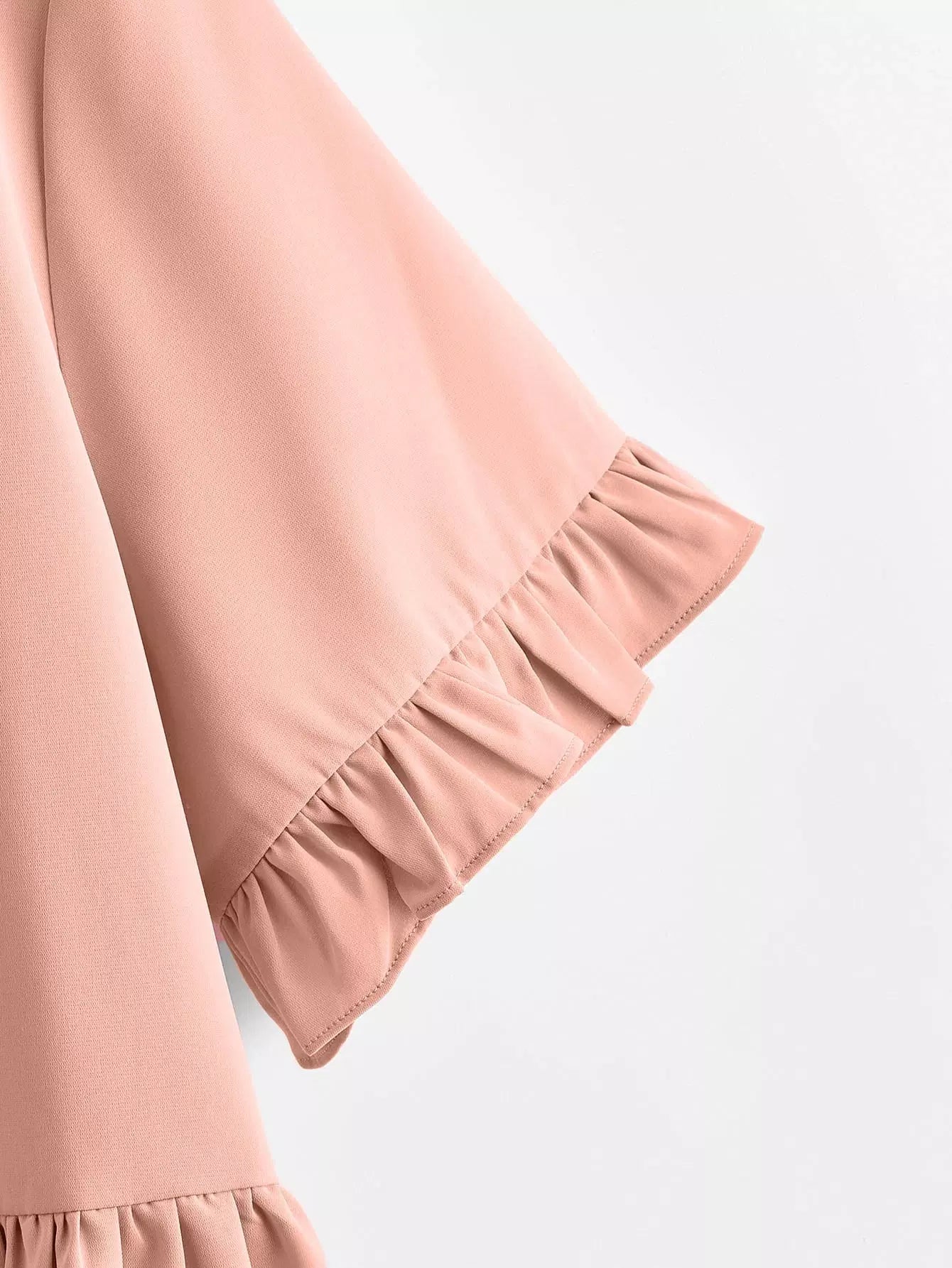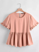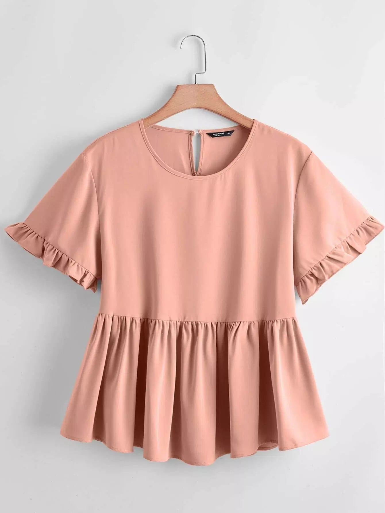 Plus Flounce Sleeve Ruffle Hem Blouse
