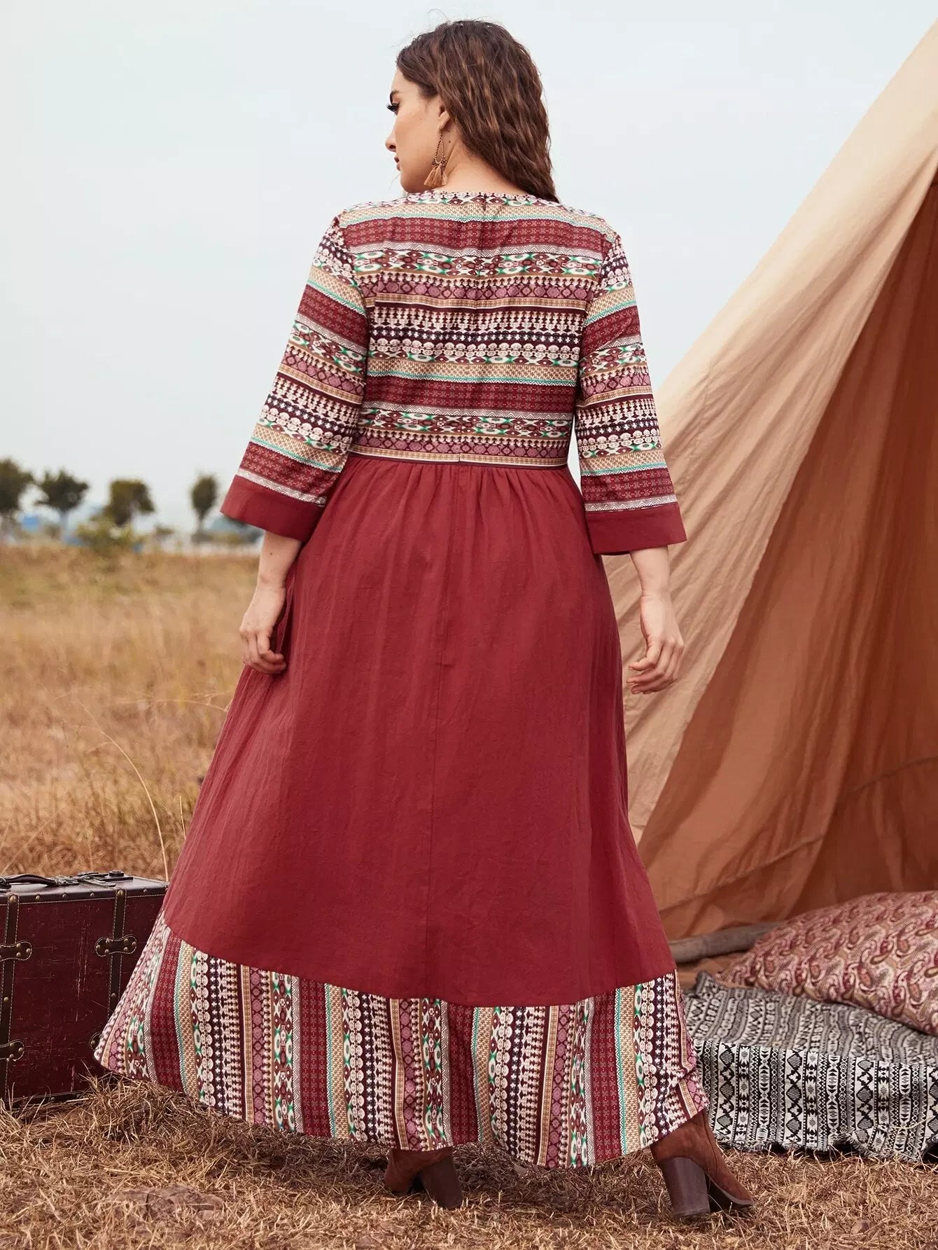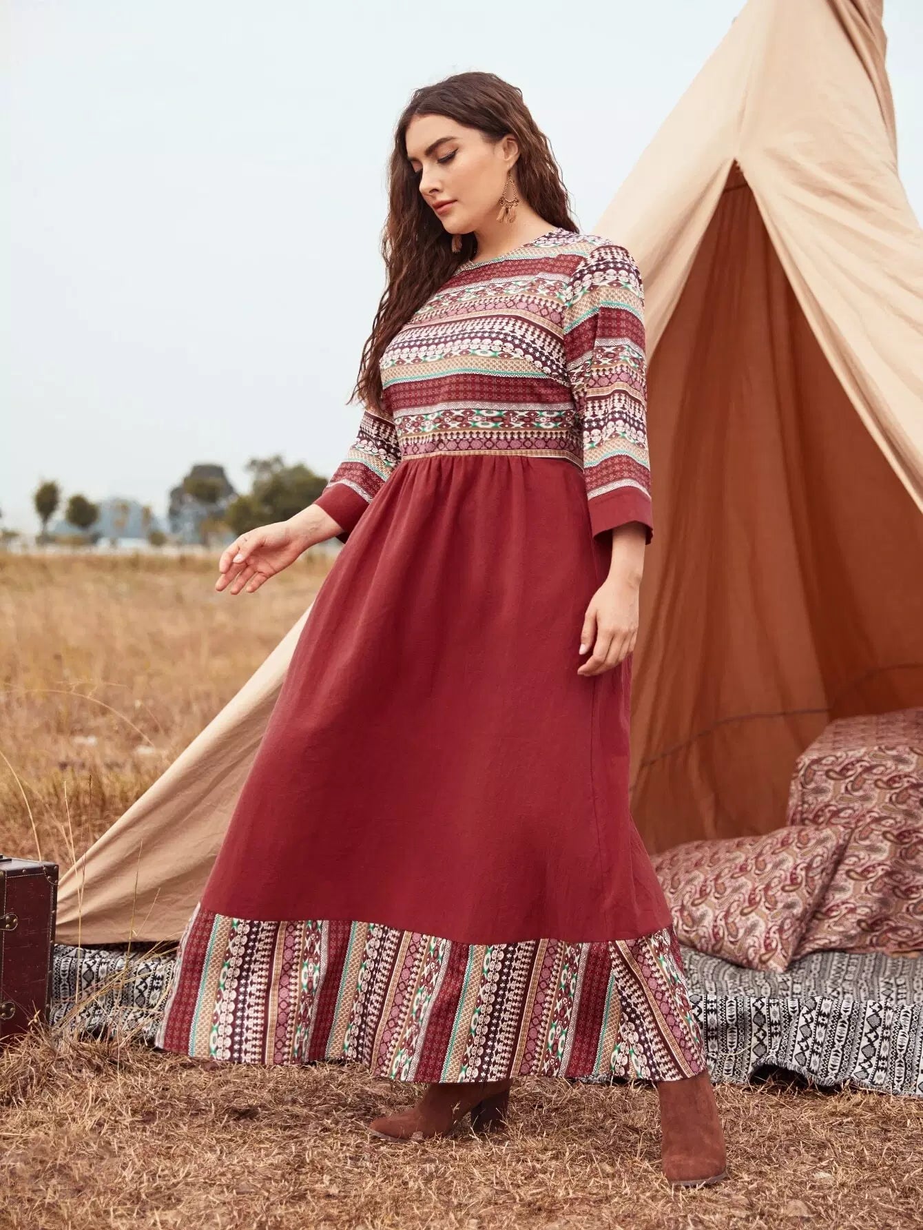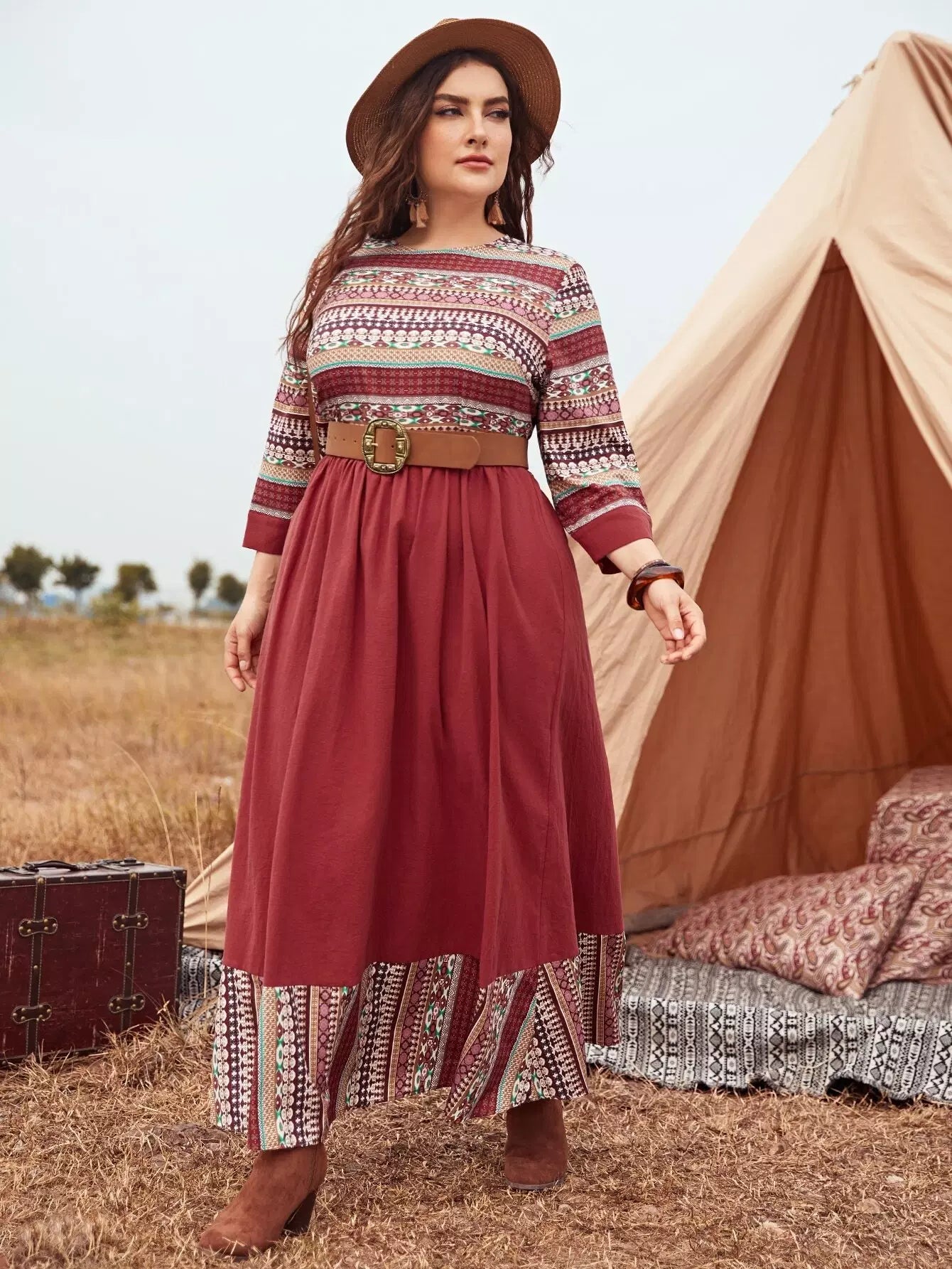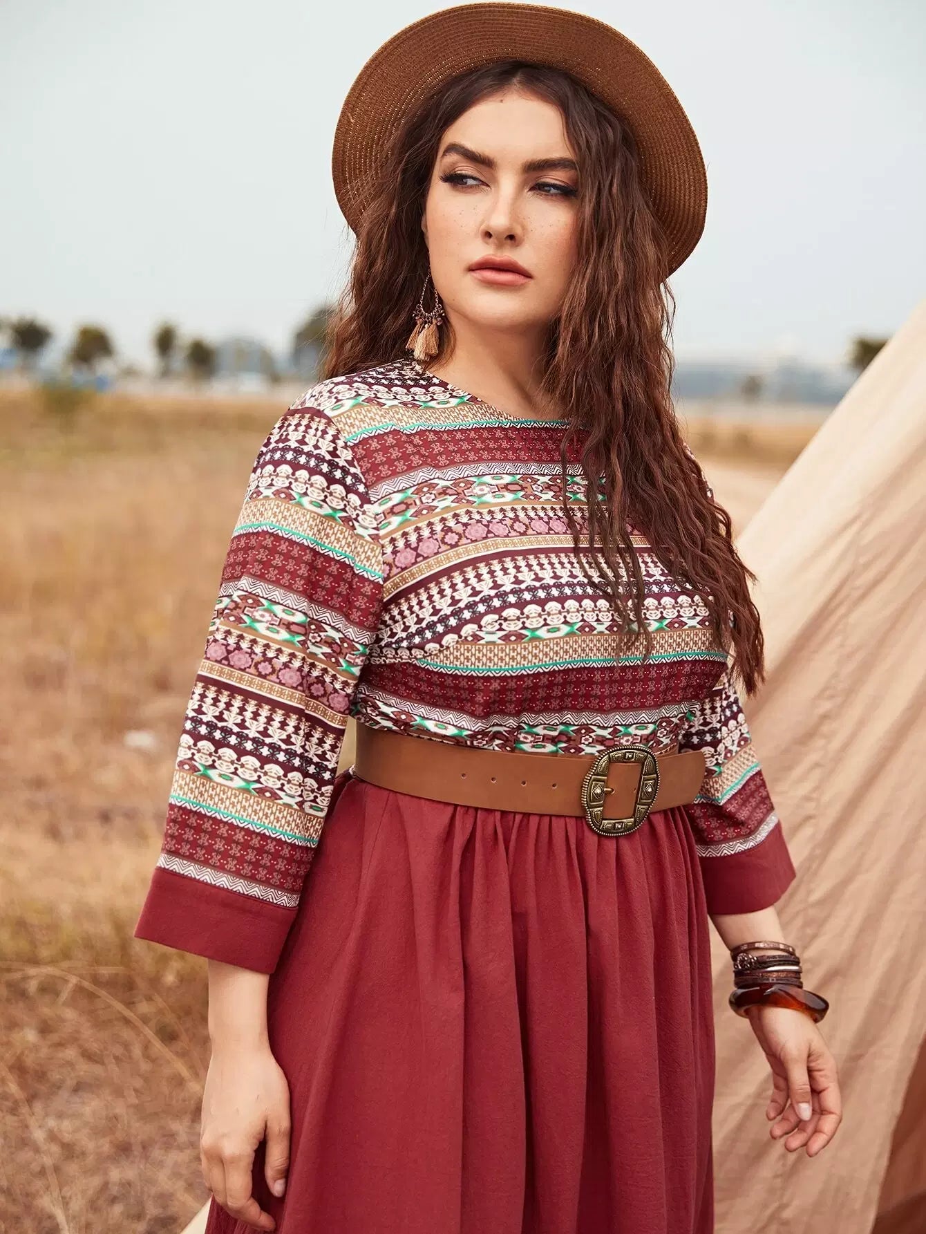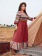 Plus Geo Print Colorblock Dress Without Belt