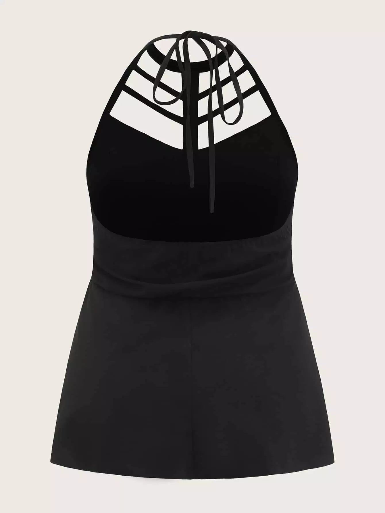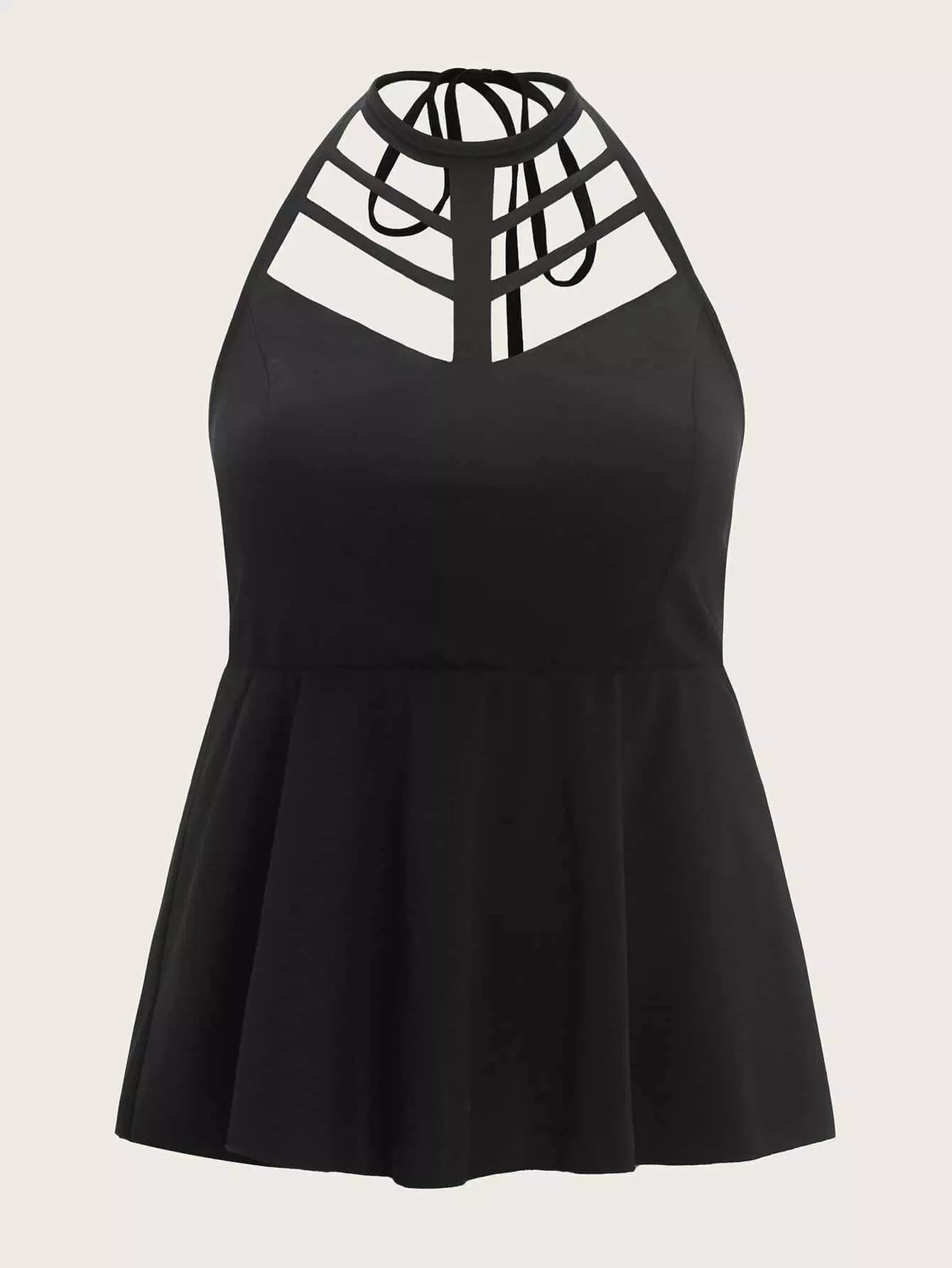 Plus Halterneck Caged Front Peplum Top