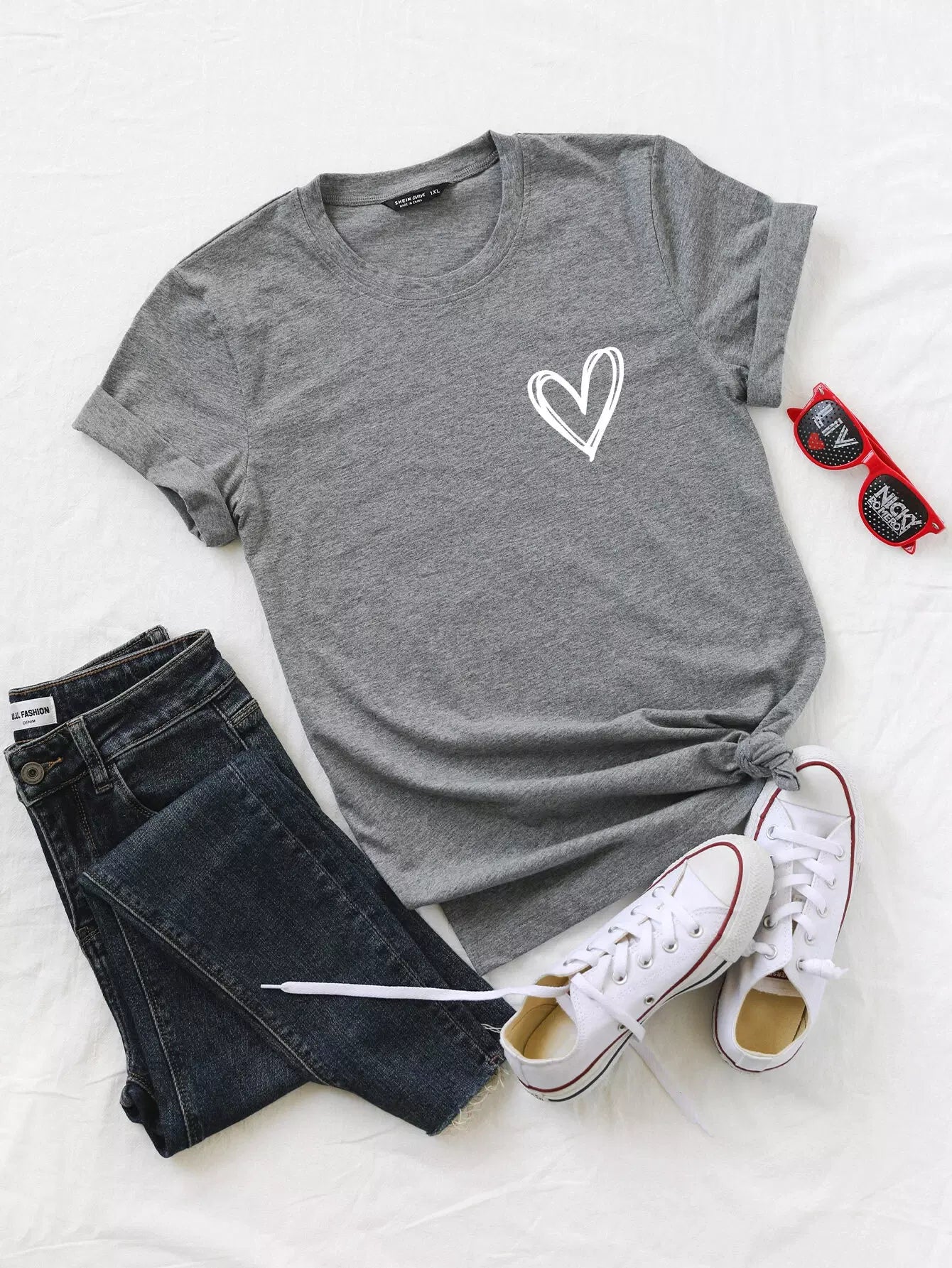 Plus Heart Print Round Neck Tee