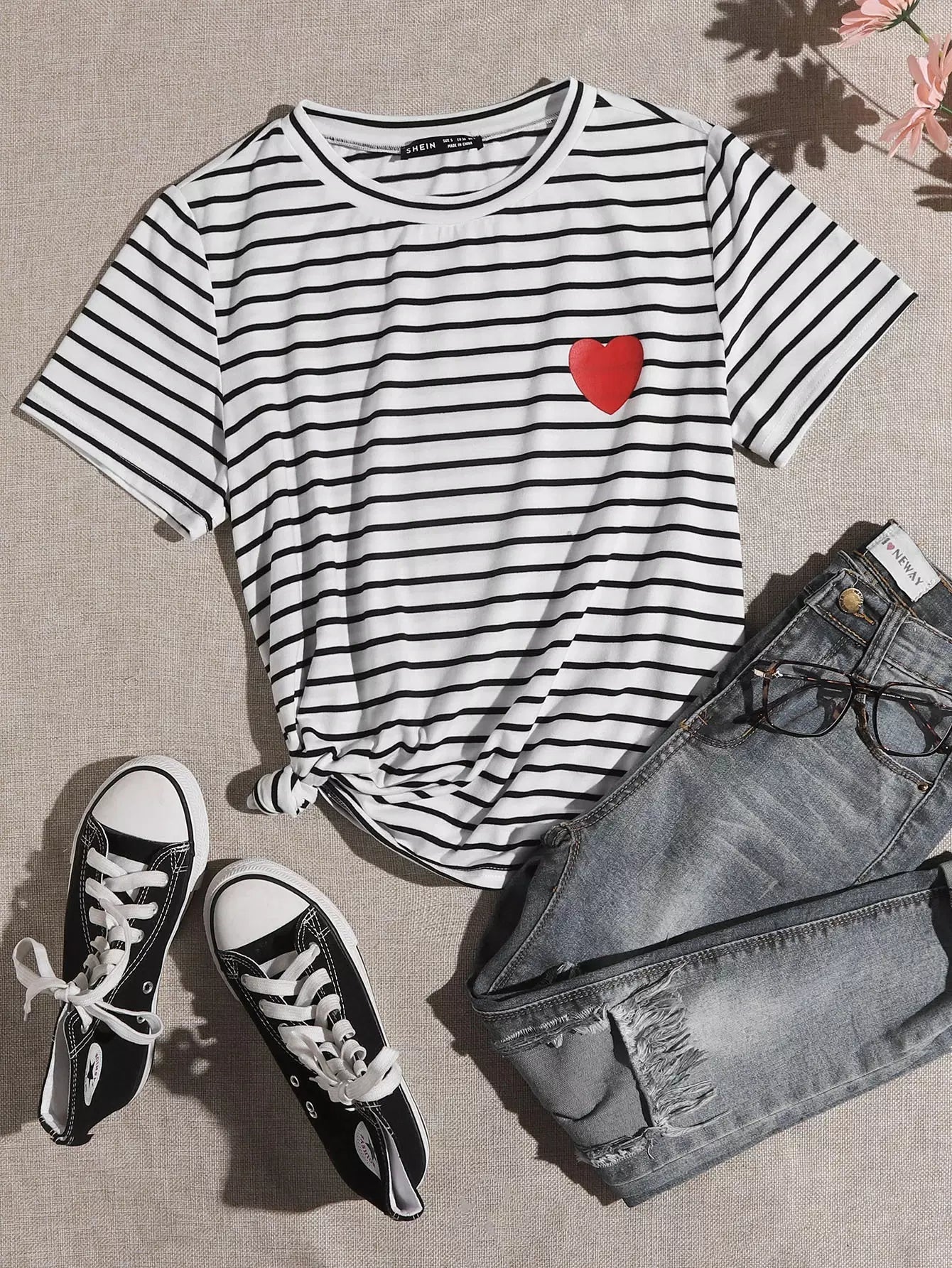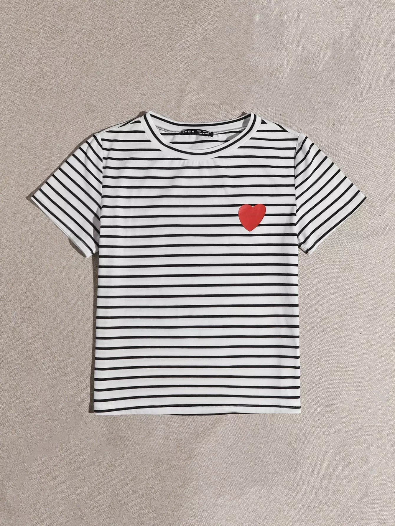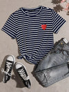 Plus Heart Print Striped Tee