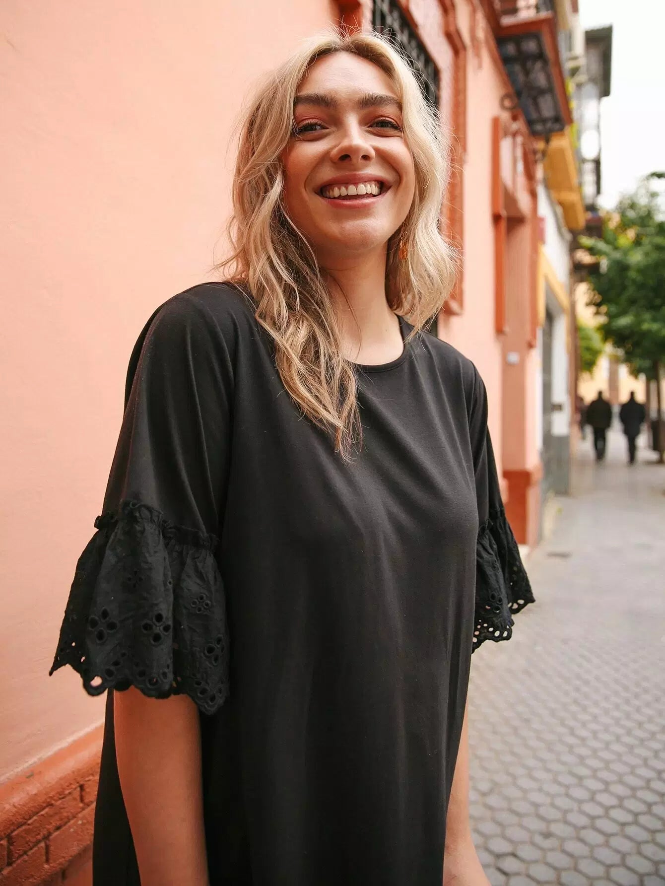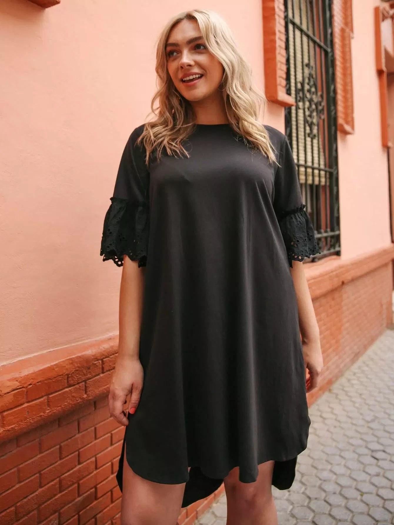 Plus High Low Eyelet Embroidery Sleeve Dress Without Belt