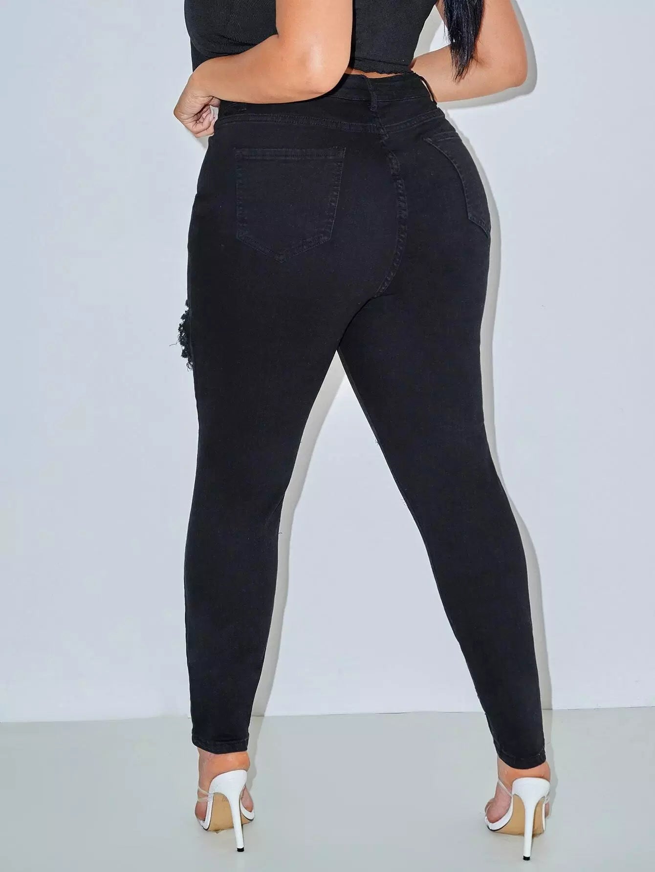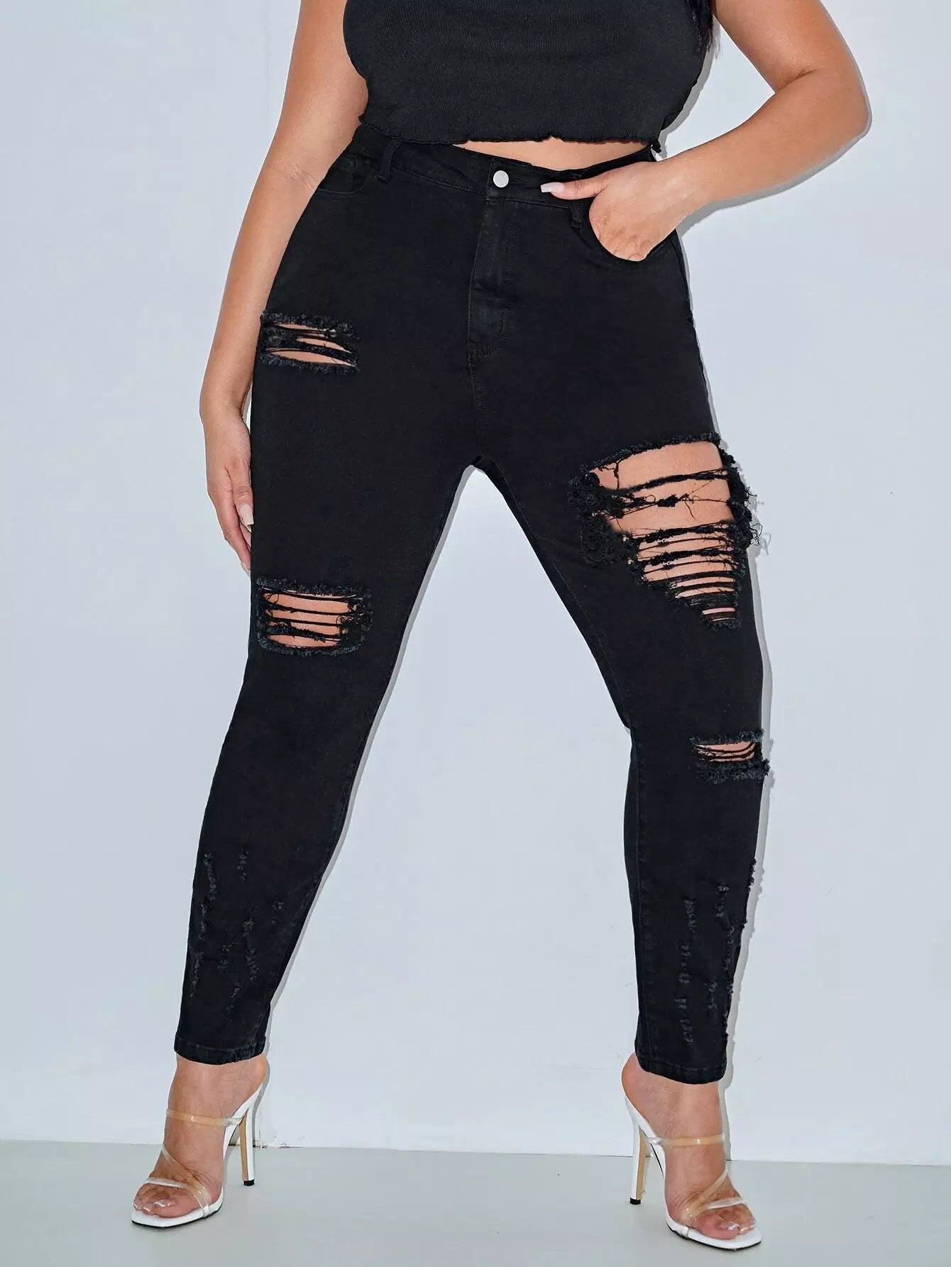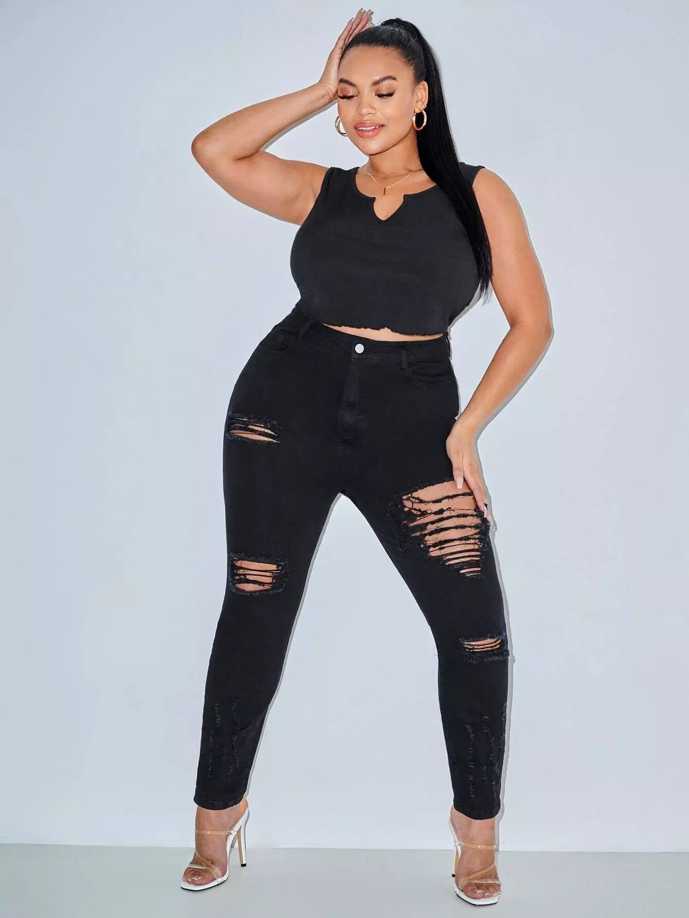 Plus High Waist Ripped Jeans