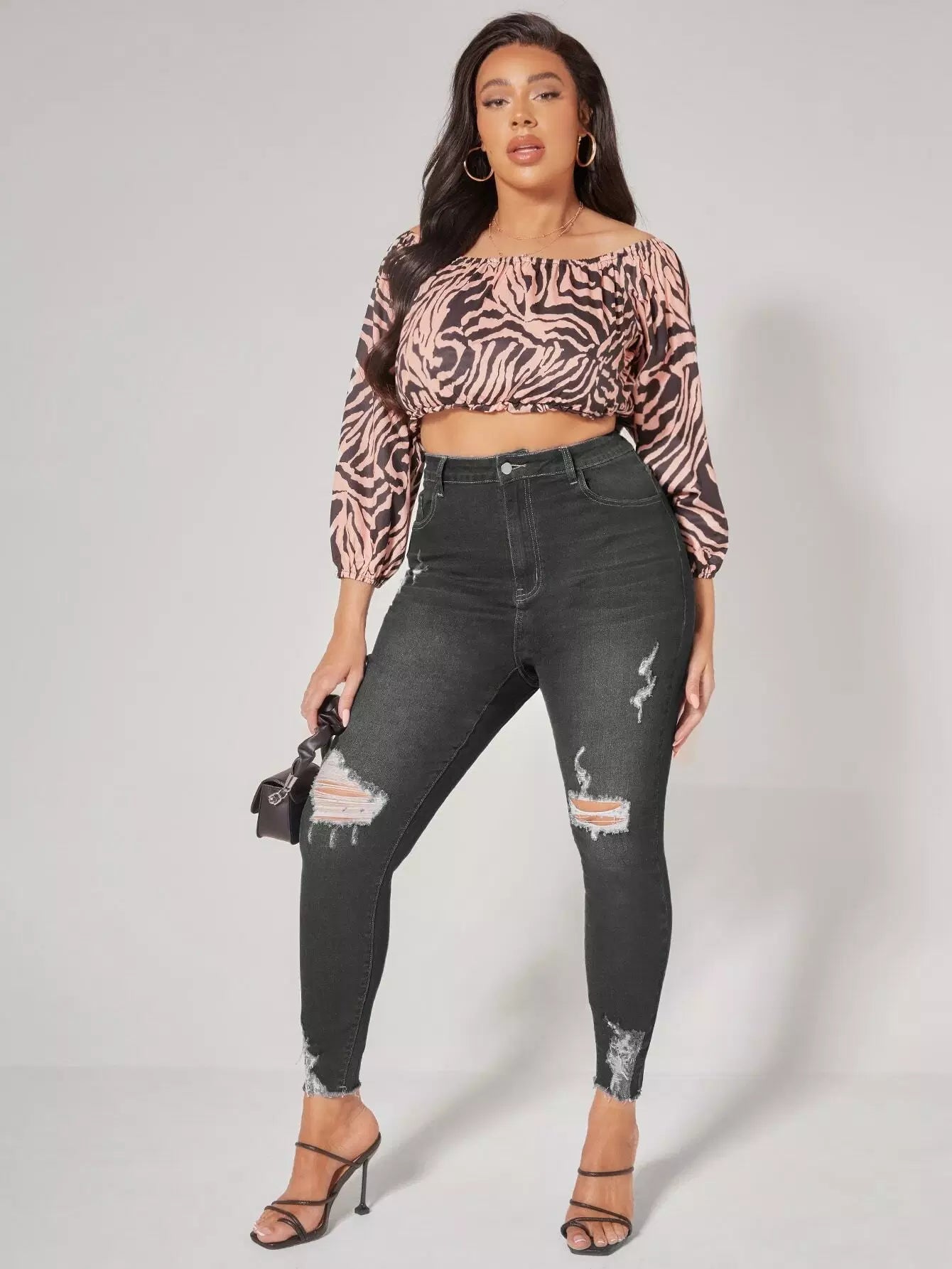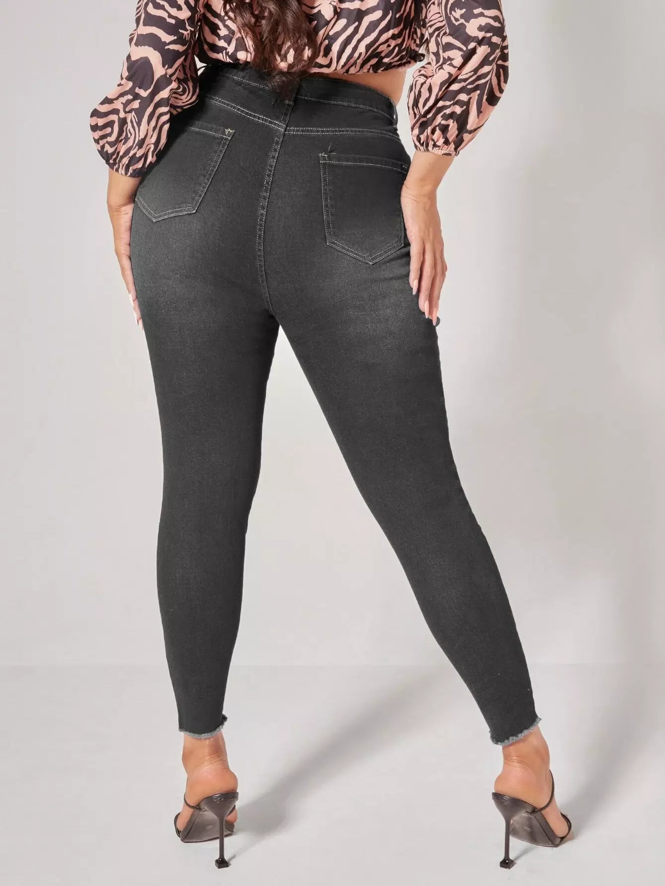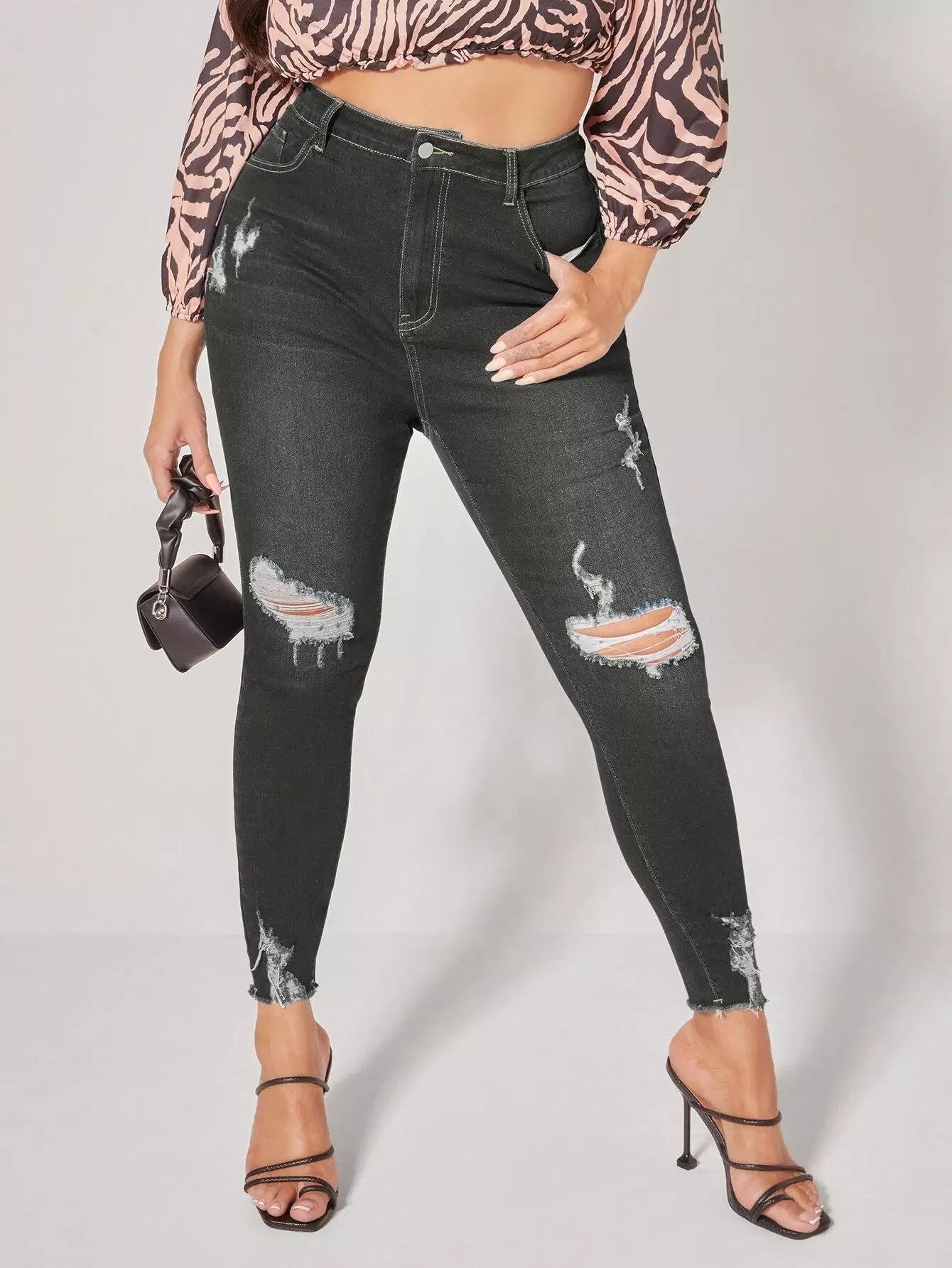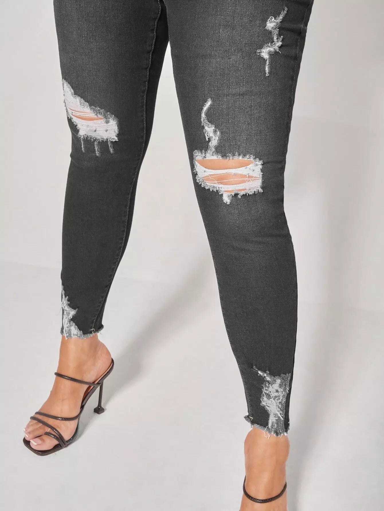 Plus High Waist Ripped Raw Trim Skinny Jeans