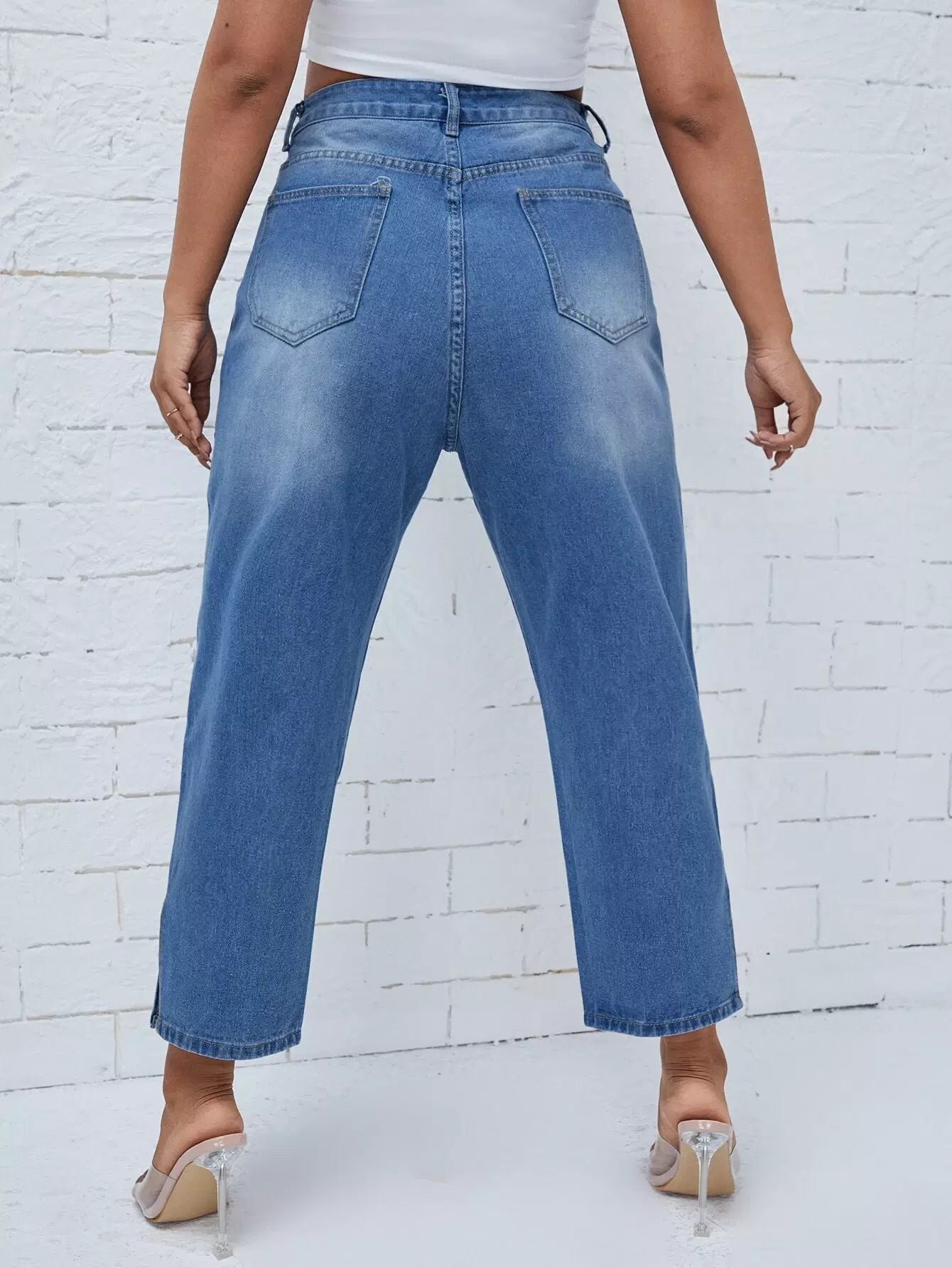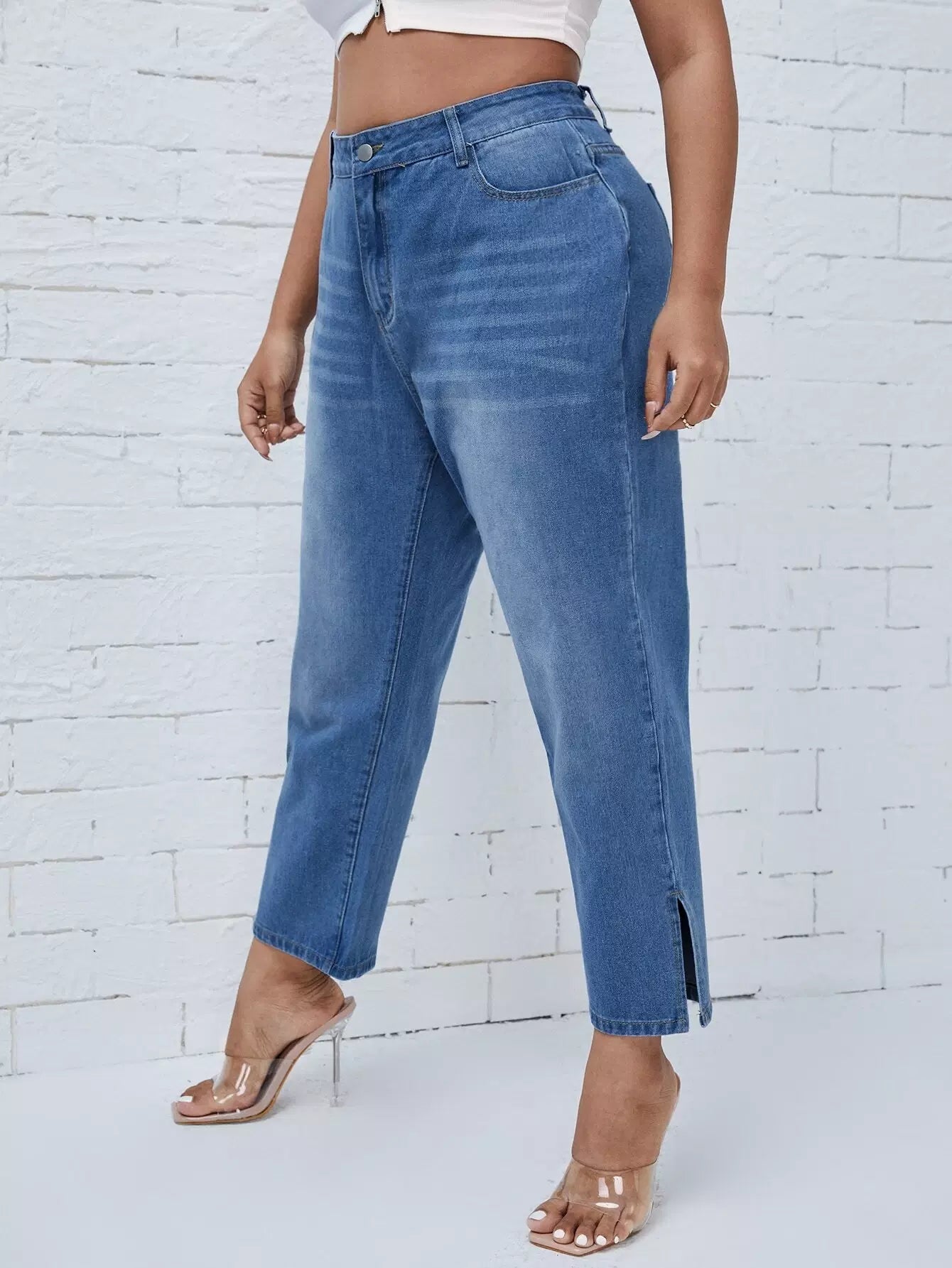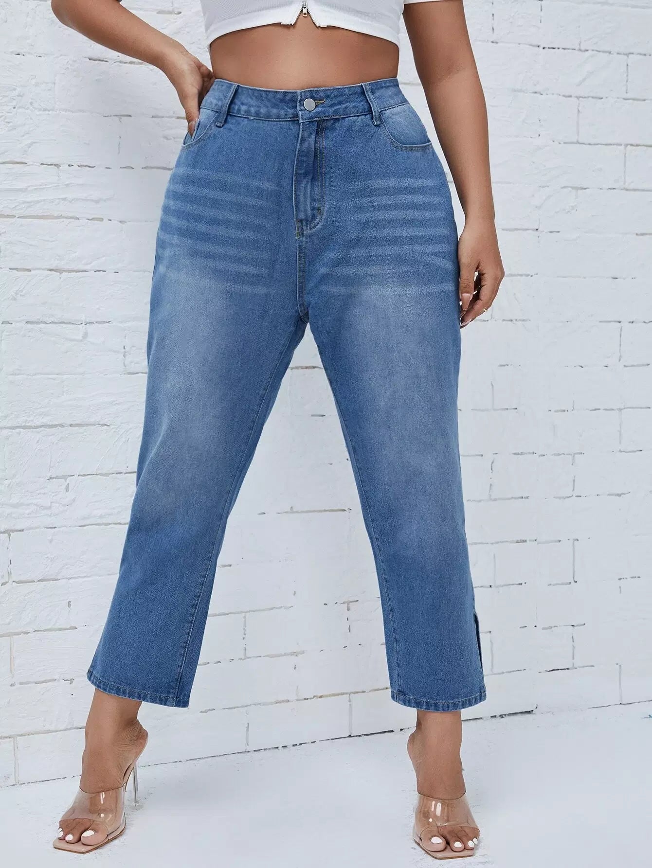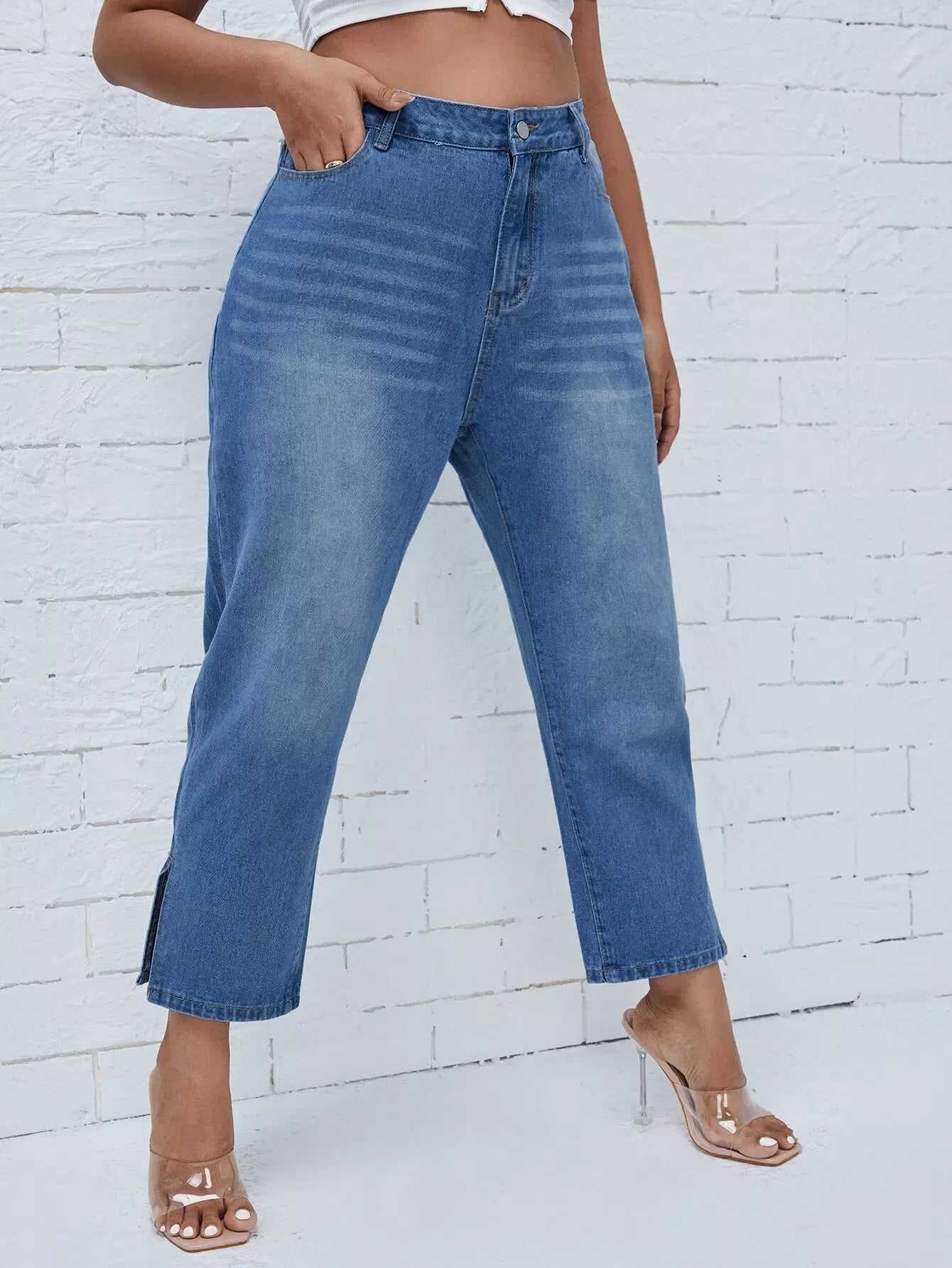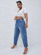 Plus High Waist Split Hem Straight Jeans