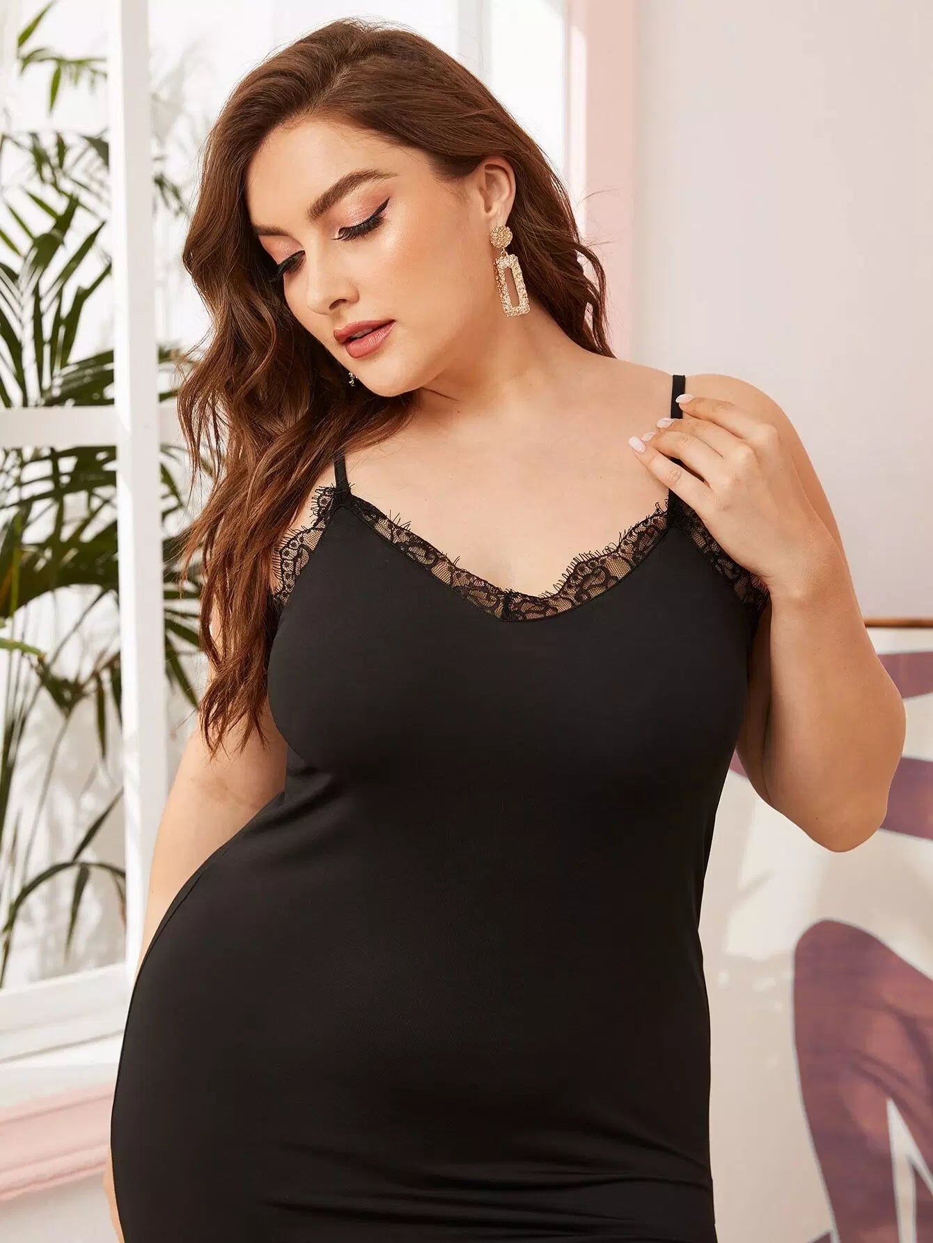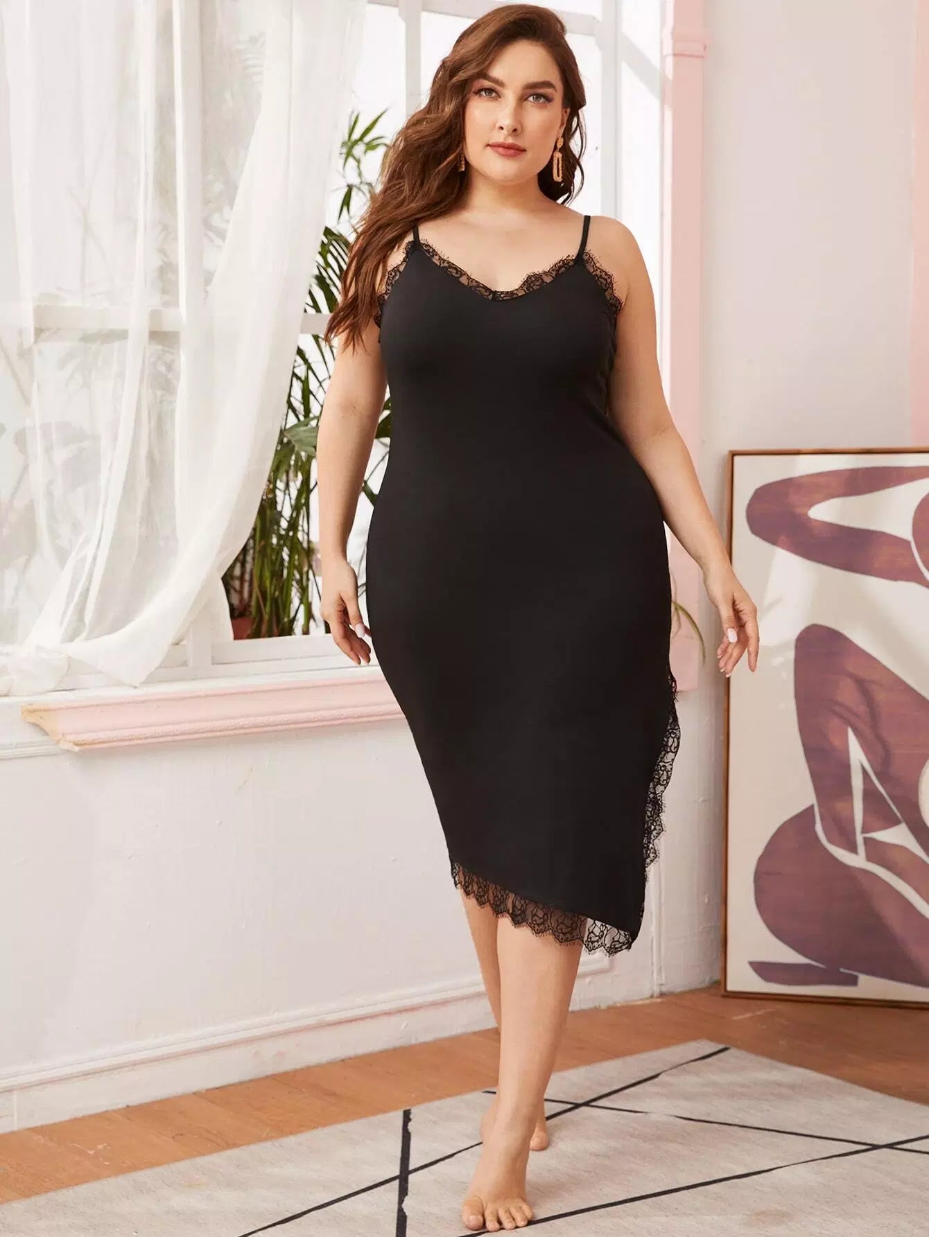 Women - Plus Lace Trim Split Hem Slip Nightdress