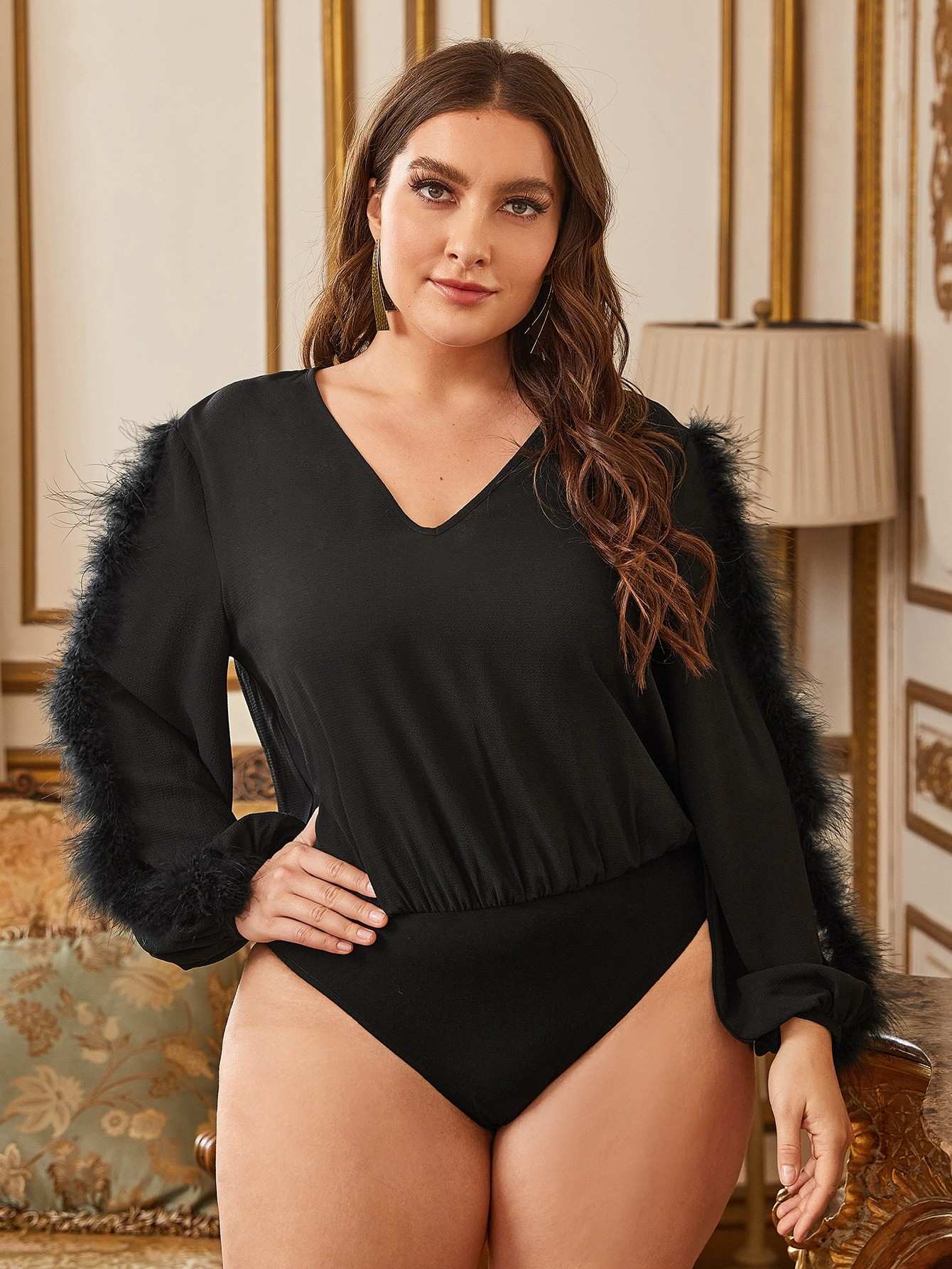 Plus Lantern Sleeve Solid Bodysuit