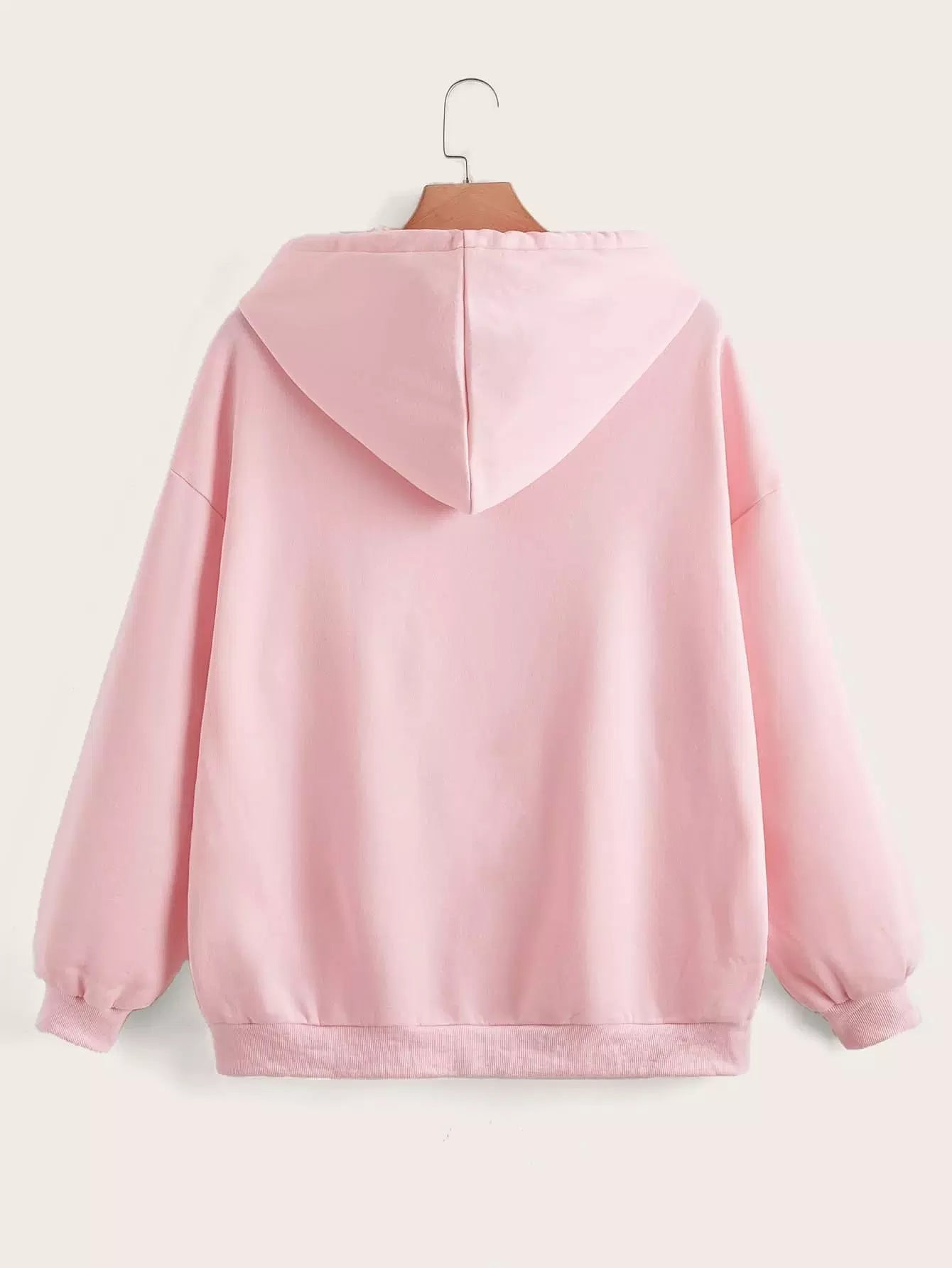 Plus Letter Graphic Drop Shoulder Drawstring Hoodie