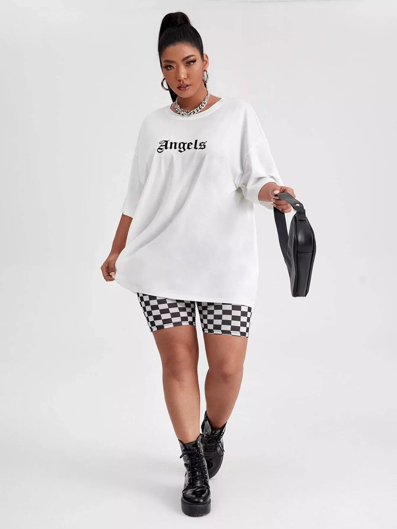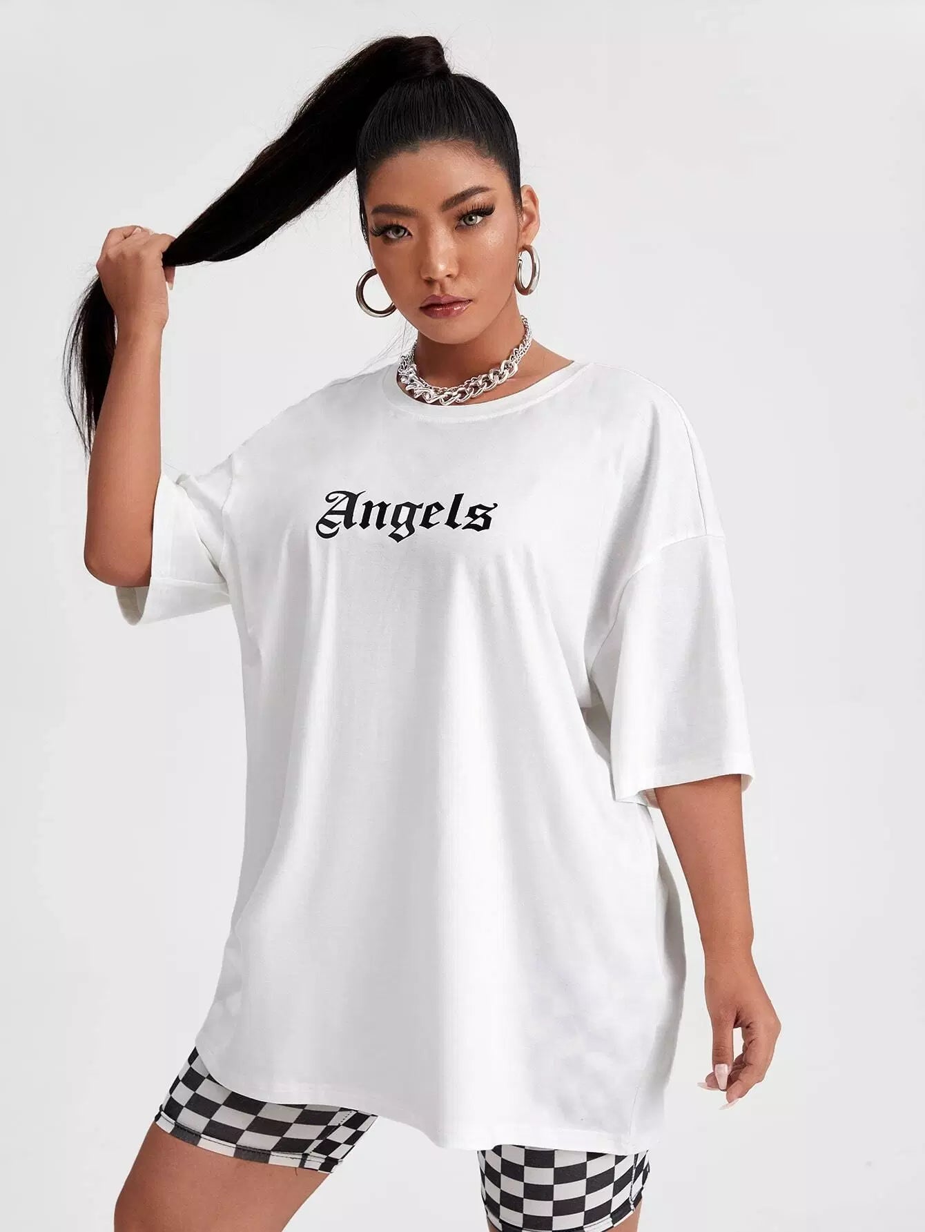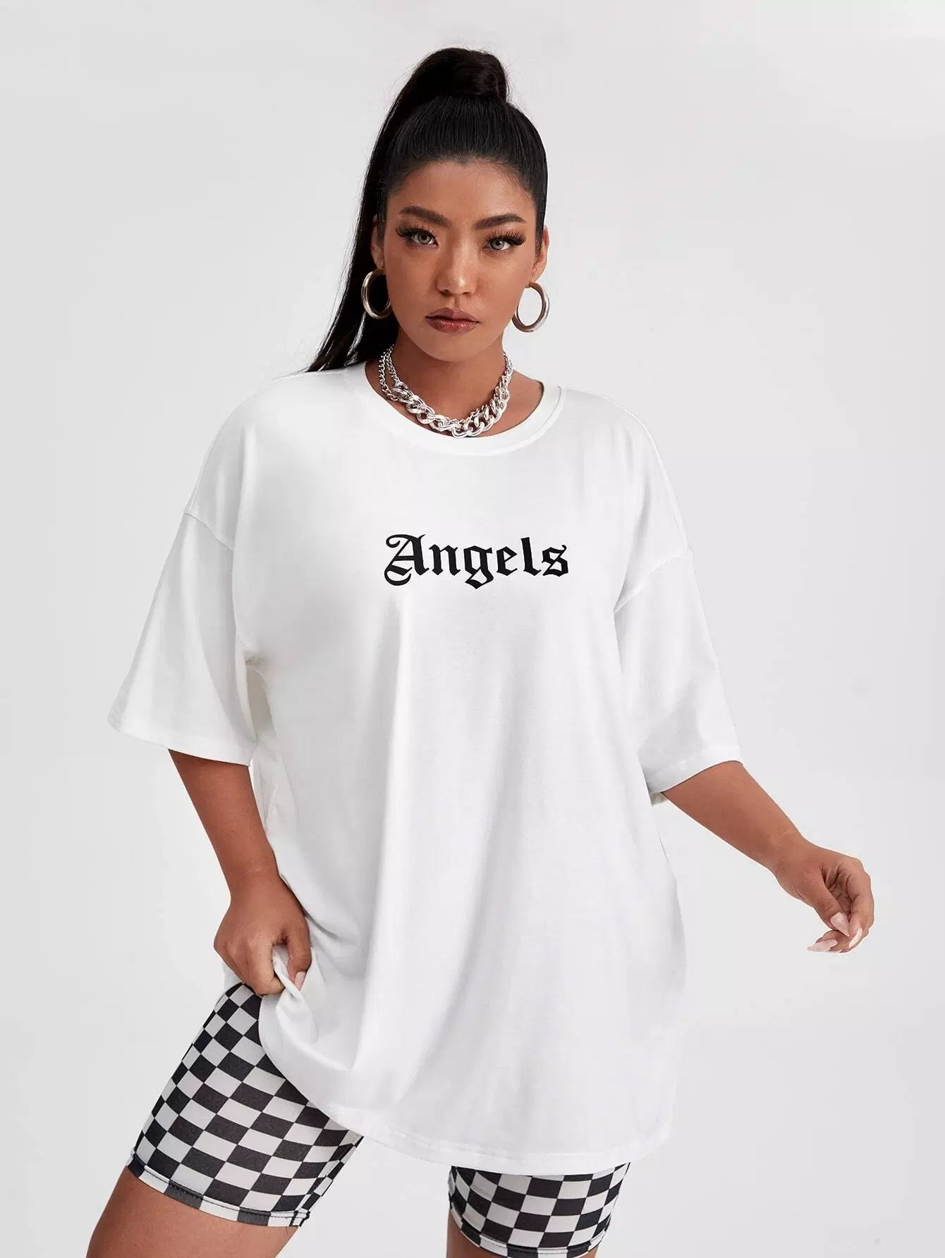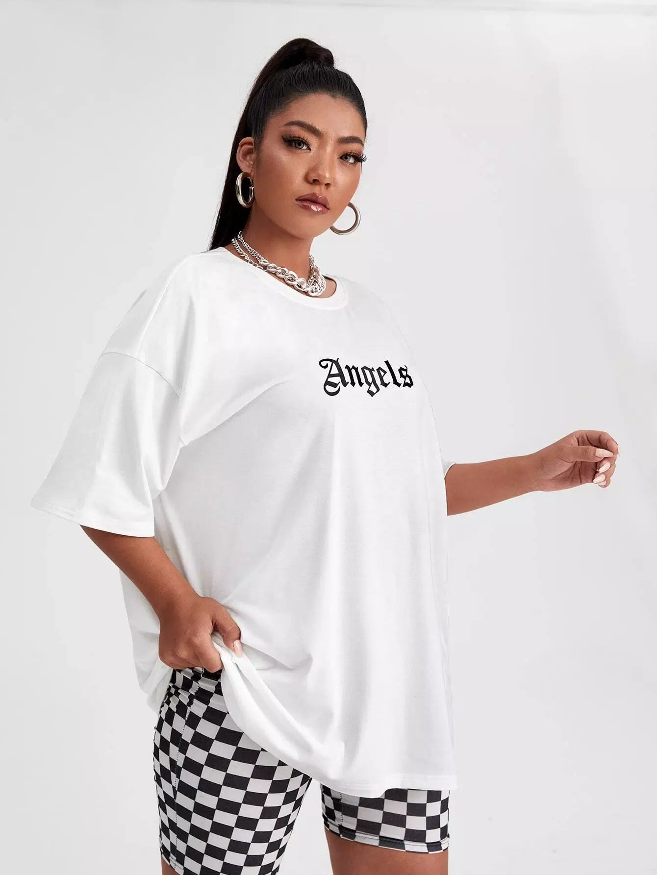 Women - Plus Letter Graphic Drop Shoulder Longline Tee