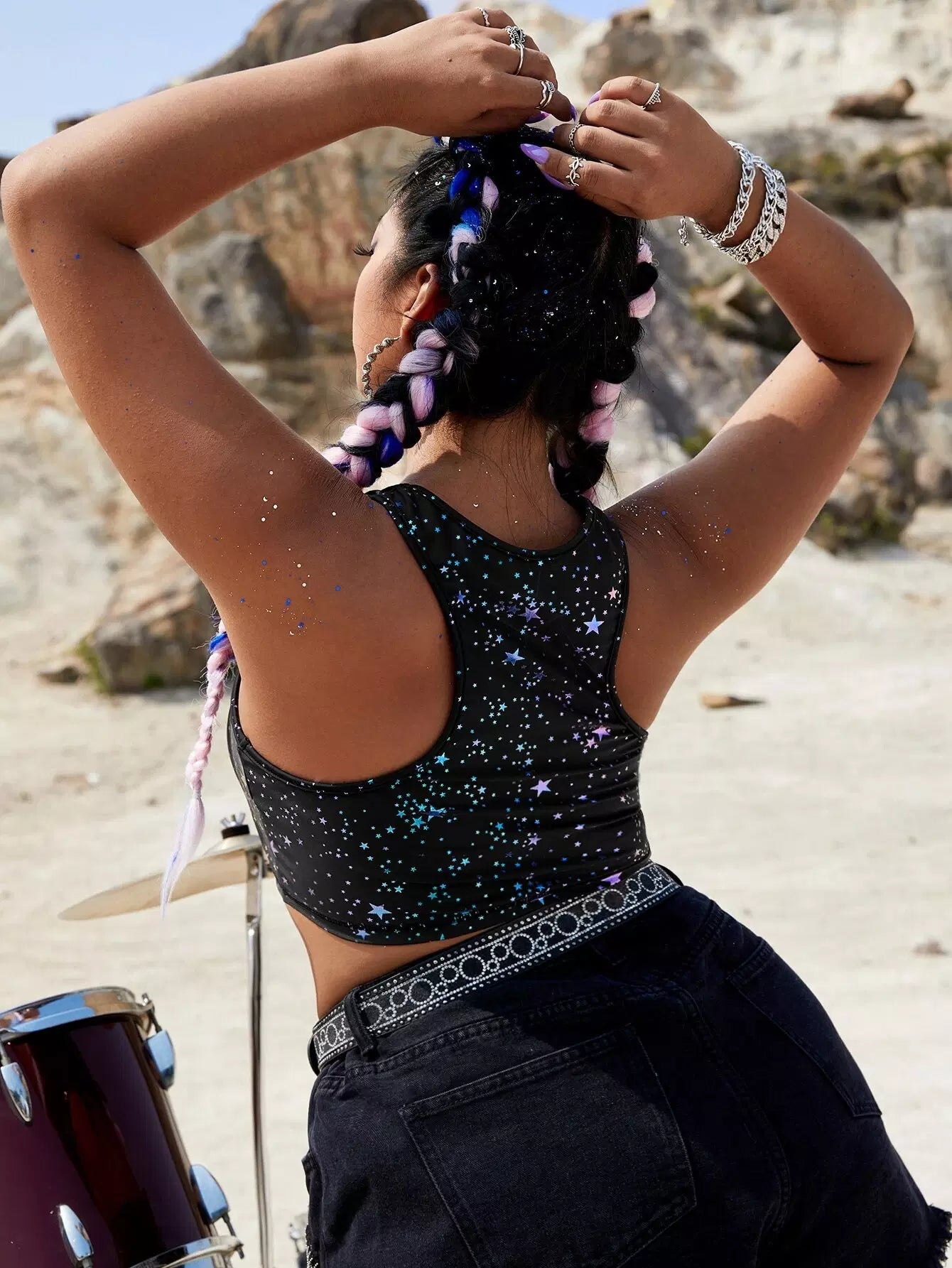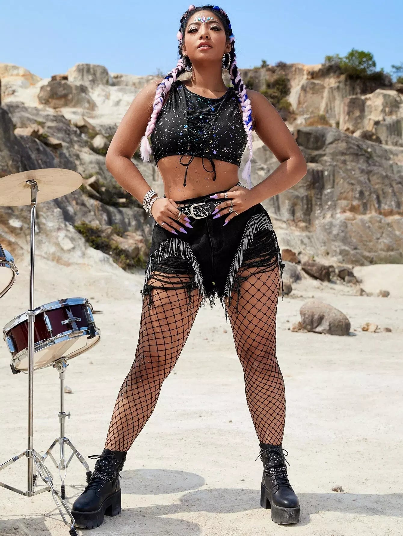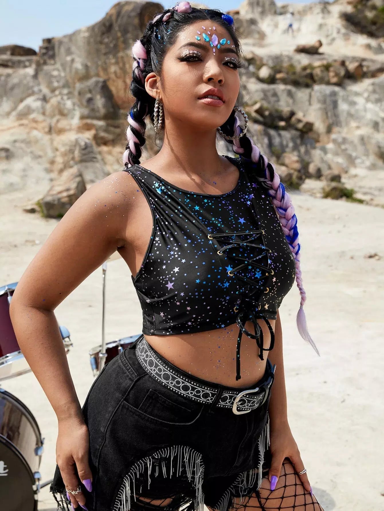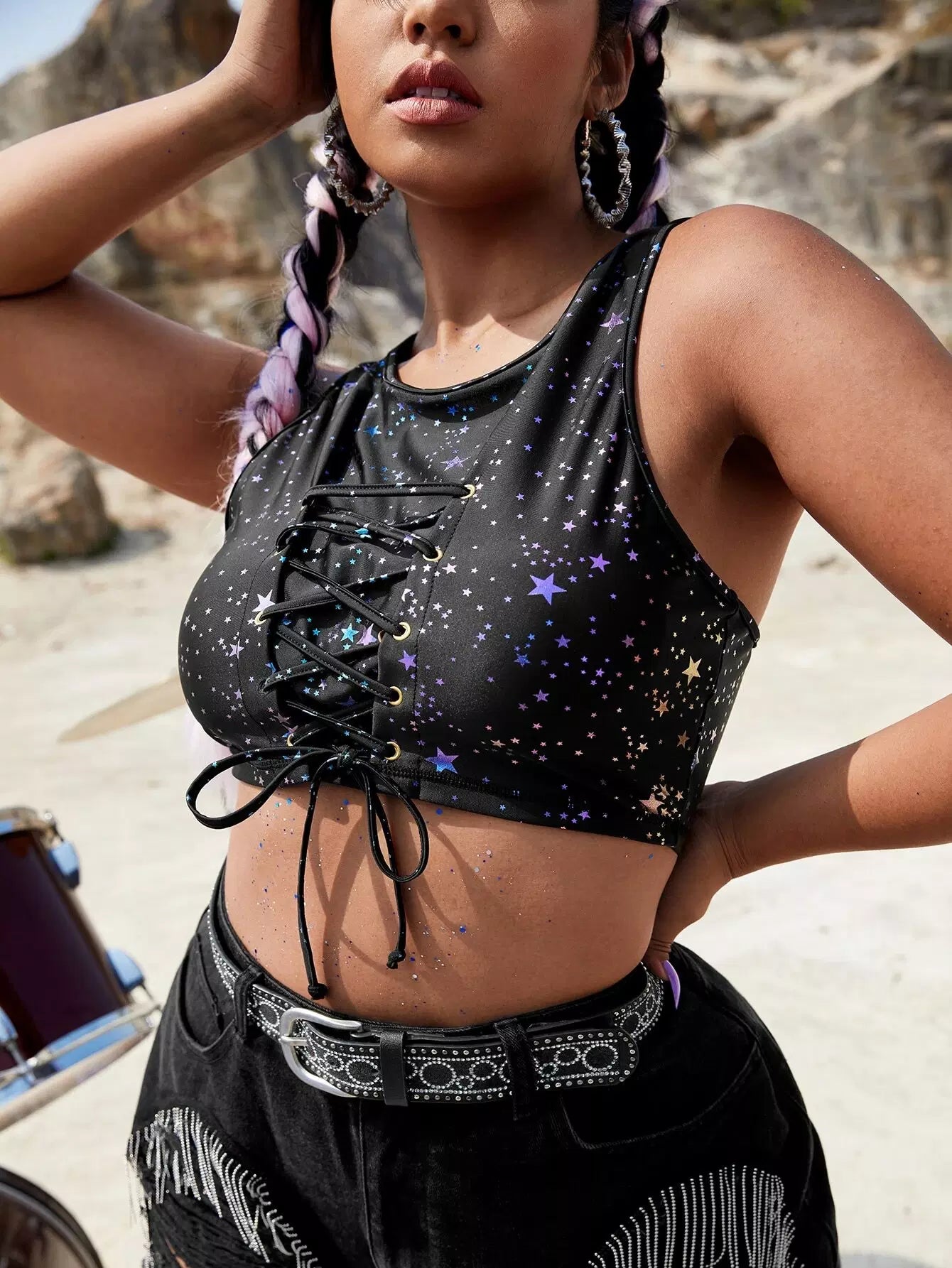 Plus Medium Support Galaxy Lace Up Sports Bra