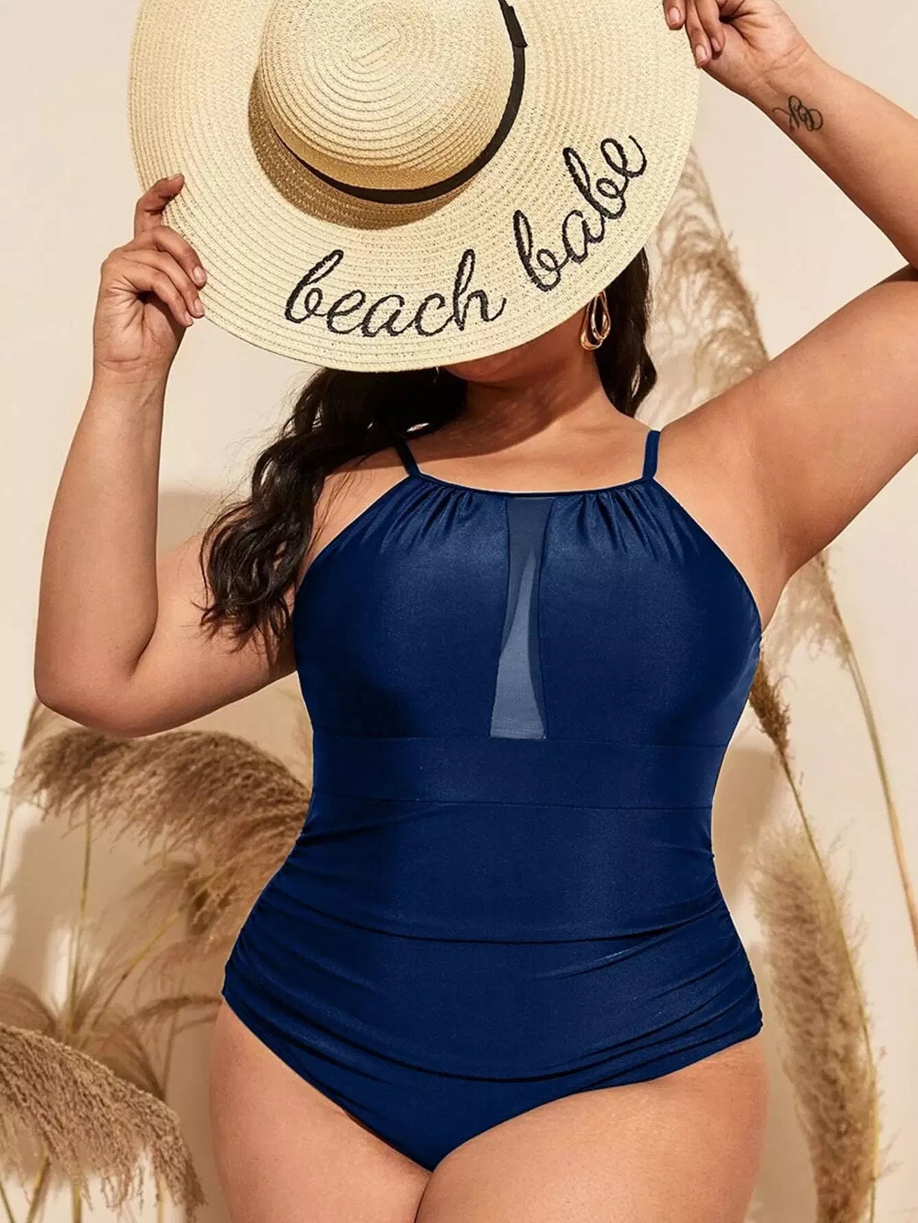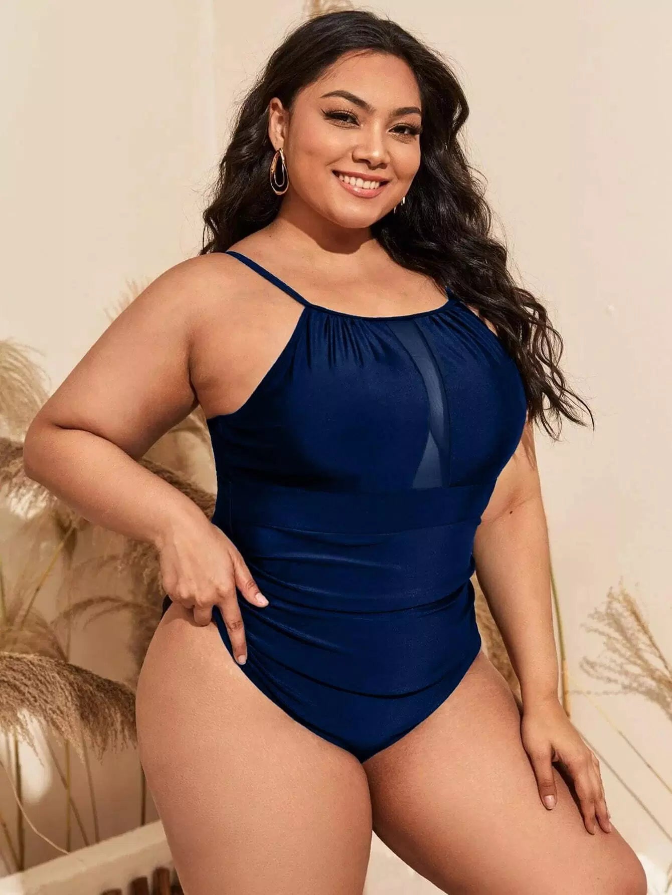 Plus Mesh Insert One Piece Swimsuit