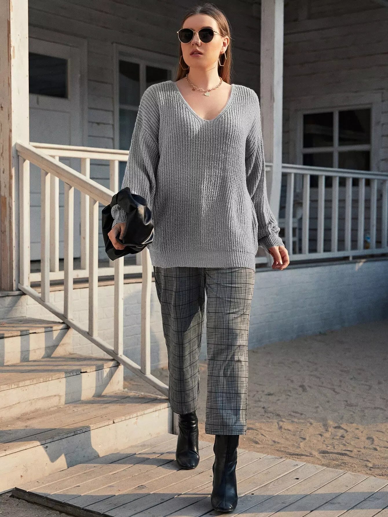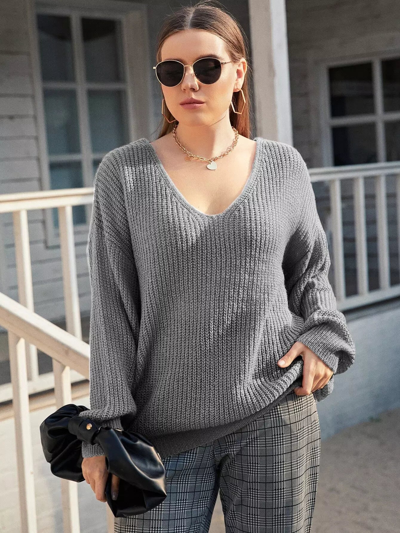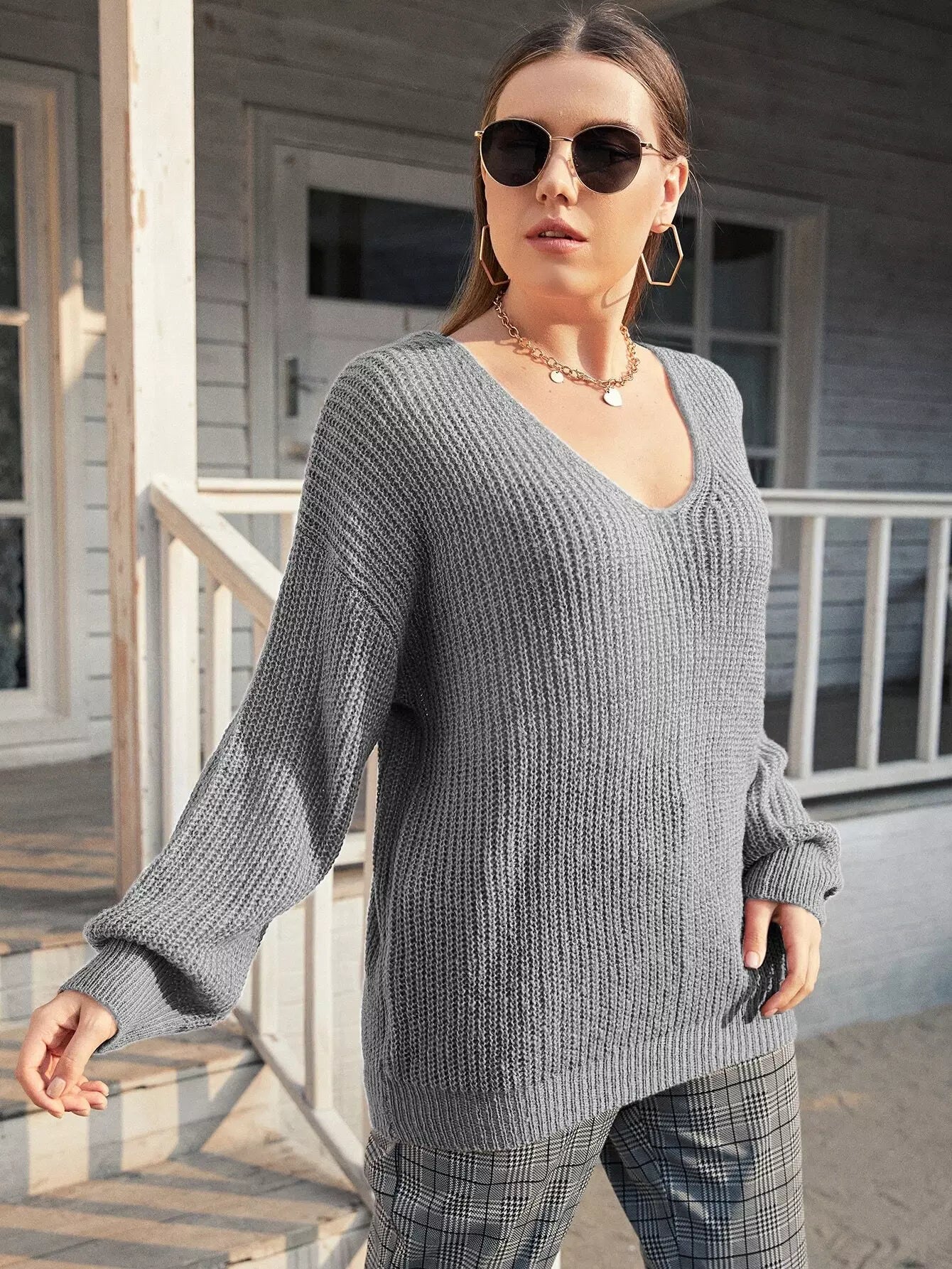Women - Plus Mohair Grommet Eyelets Lace Up Backless Sweater