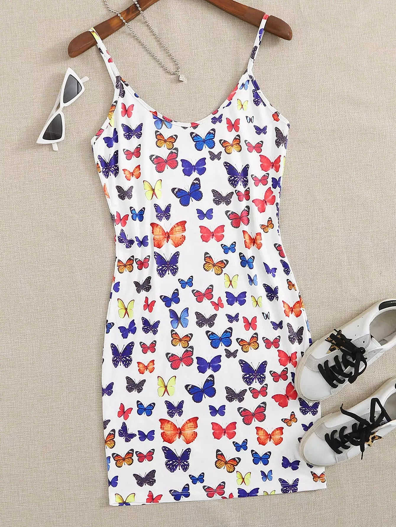 Plus Multicolored Butterfly Print Mini Dress