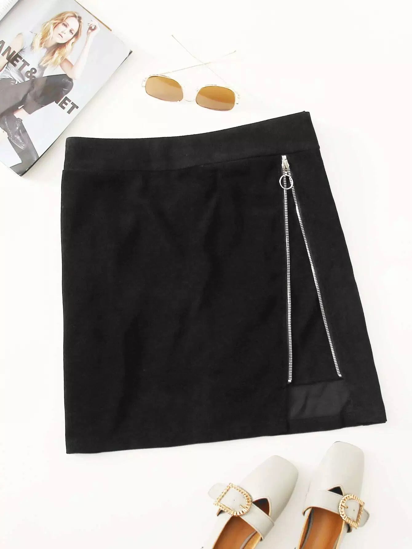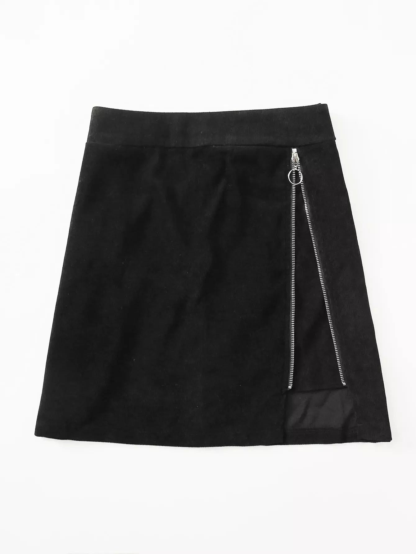 Plus O-ring Zipper Corduroy A-line Skirt